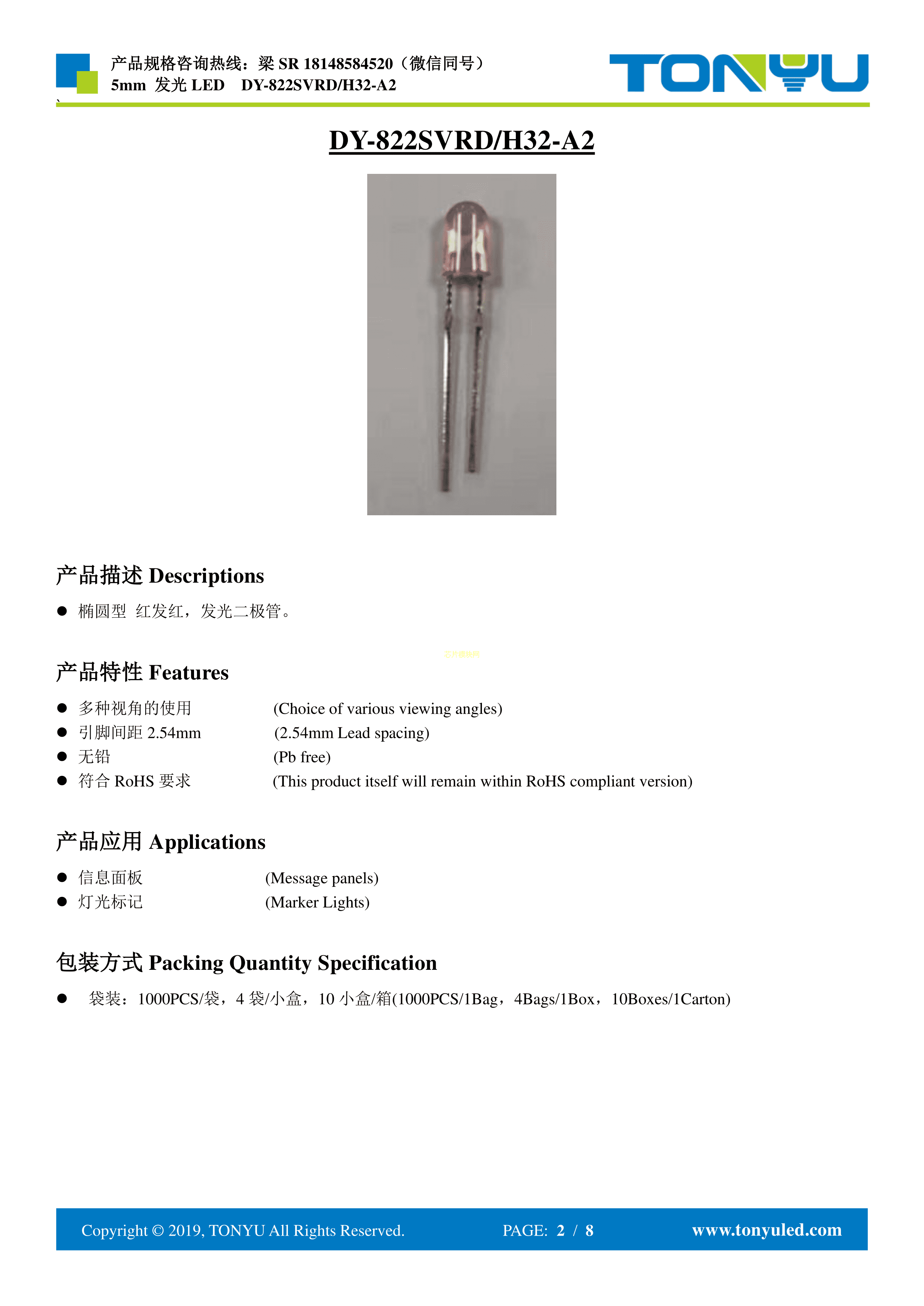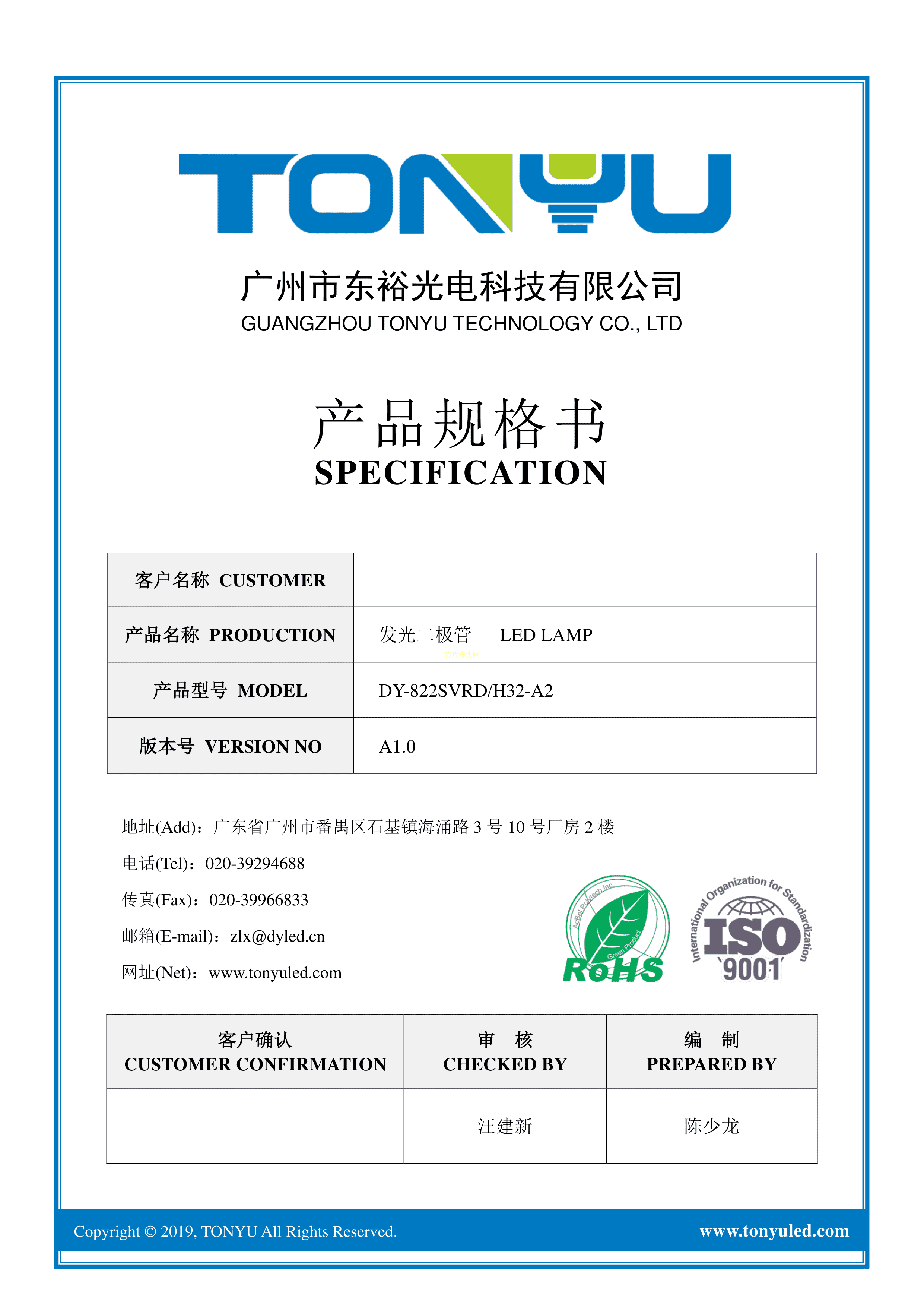 DY-822SVRD-H32-A2数据手册插件封装TONYU(东裕)PDF规格书,中英文下载