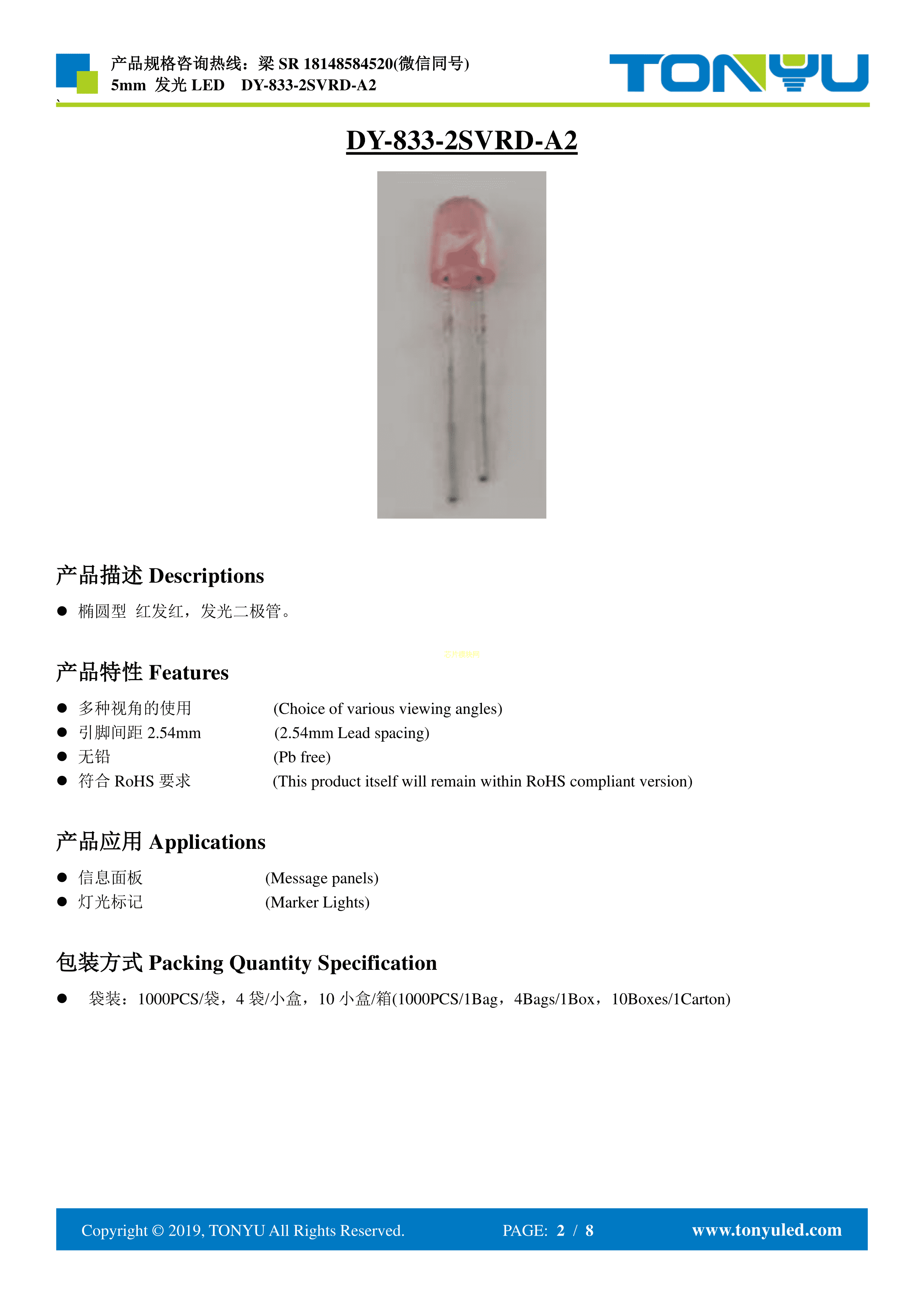 DY-833-2SVRD-A2数据手册插件封装TONYU(东裕)PDF规格书,中英文下载