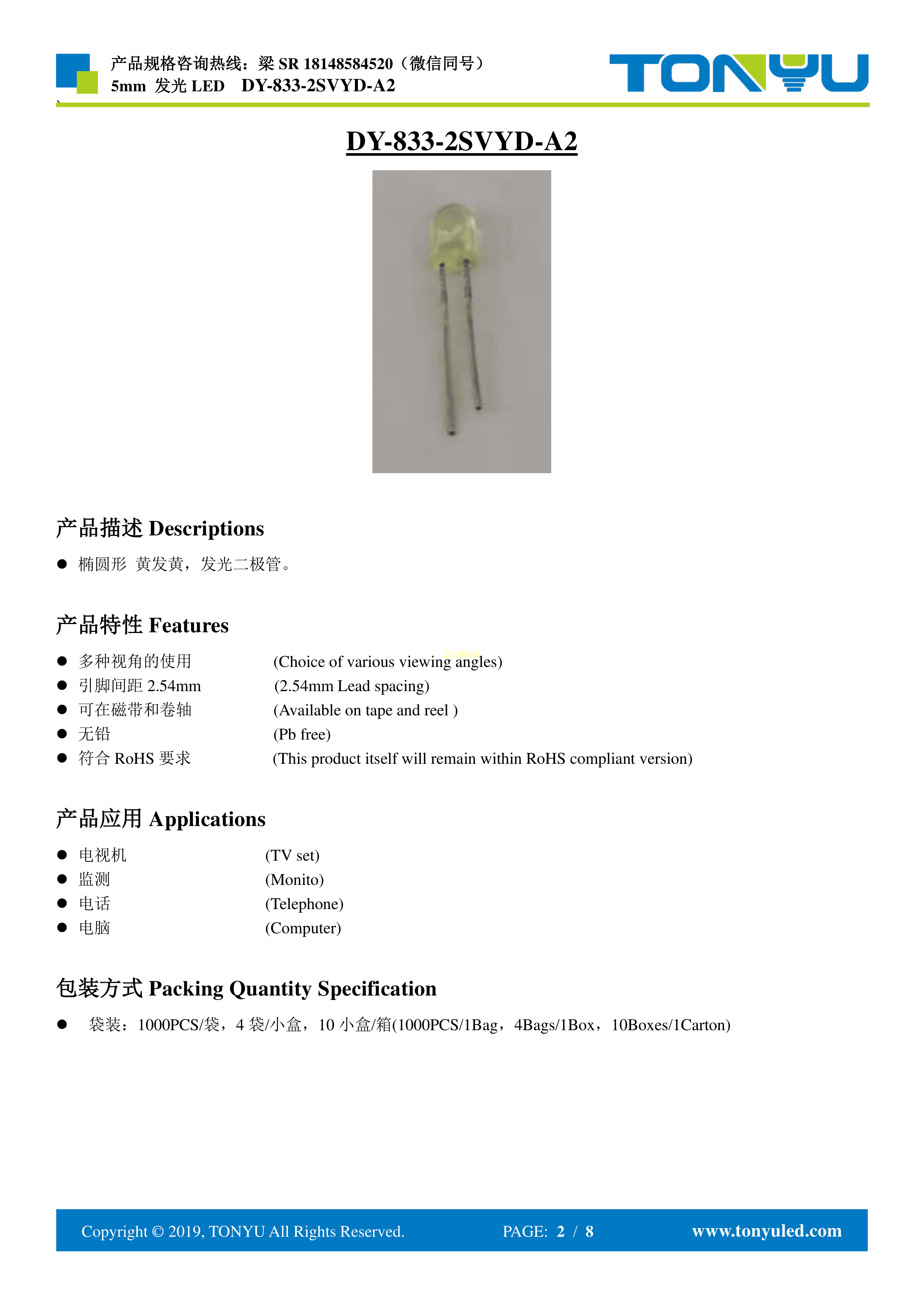 DY-833-2SVYD-A2数据手册插件封装TONYU(东裕)PDF规格书,中英文下载