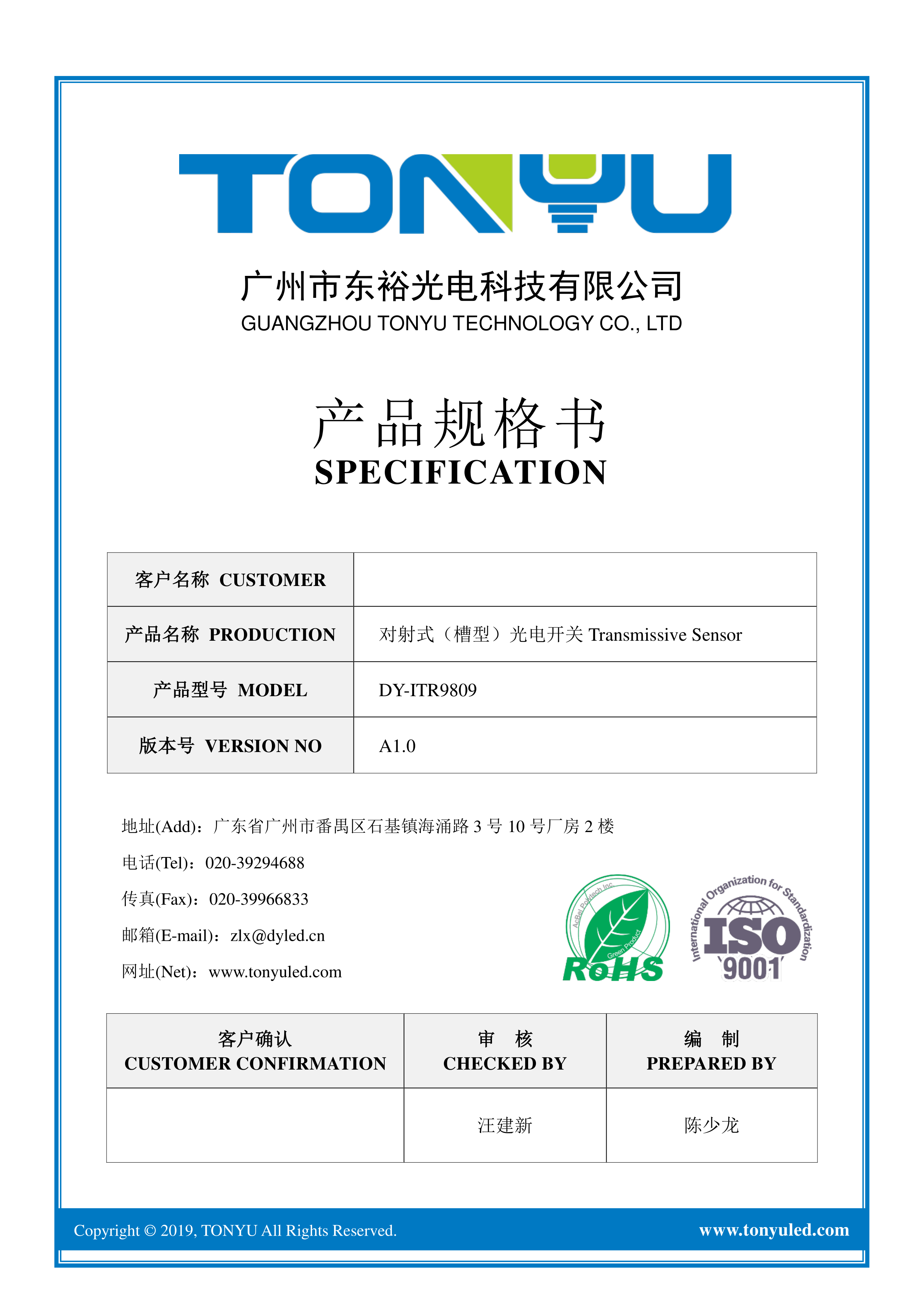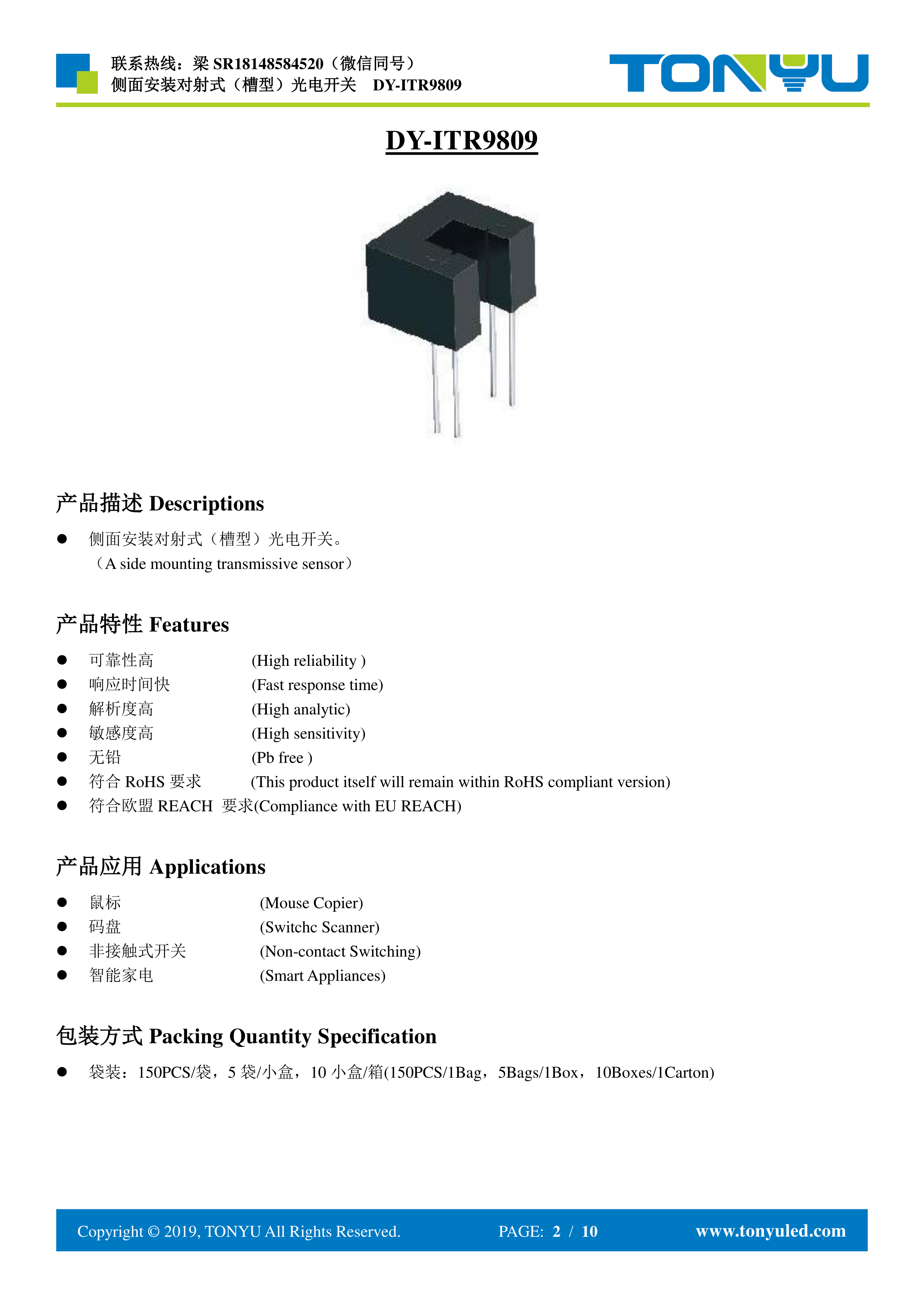 DY-ITR9809数据手册Through Hole封装TONYU(东裕)PDF规格书,中英文下载