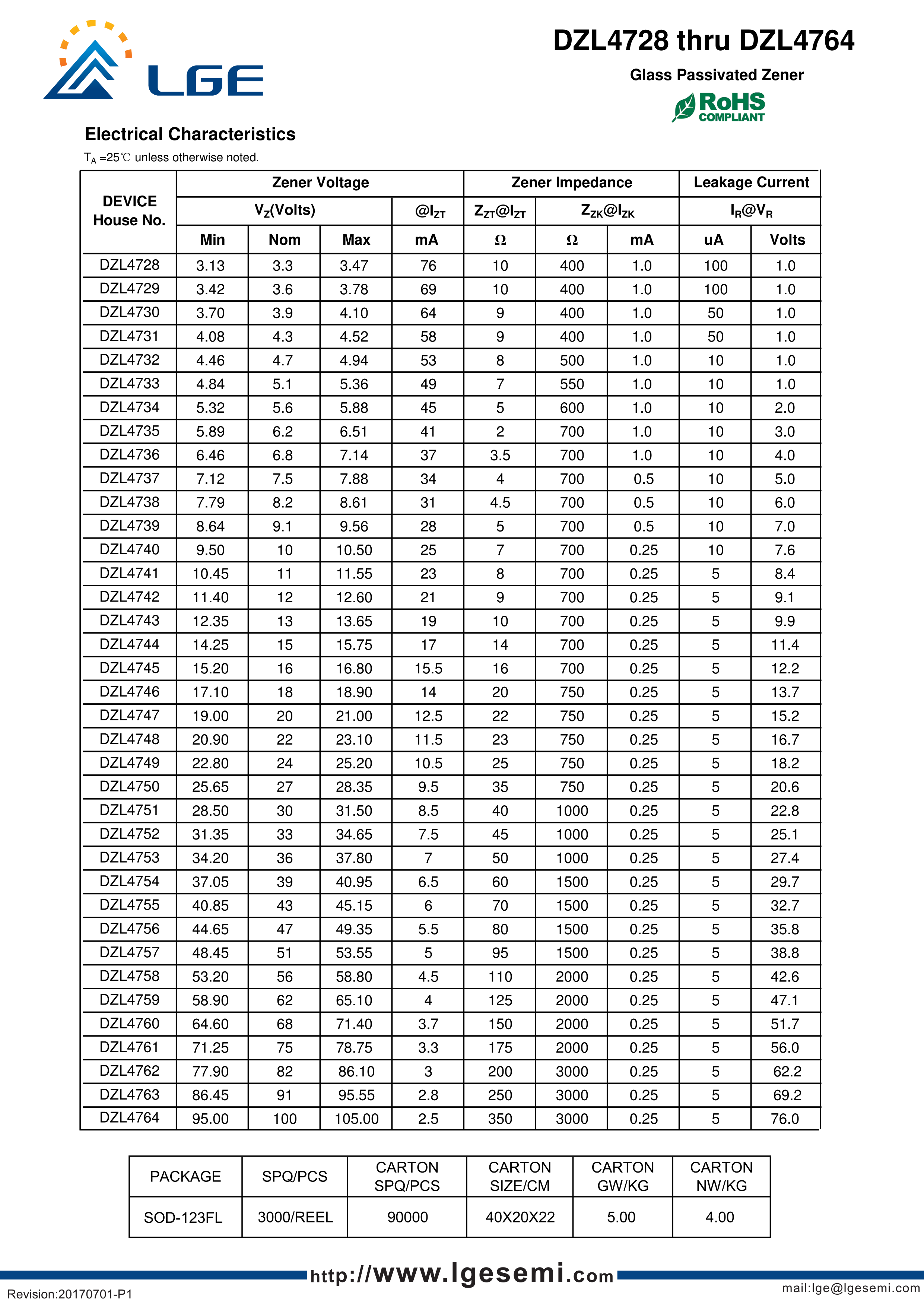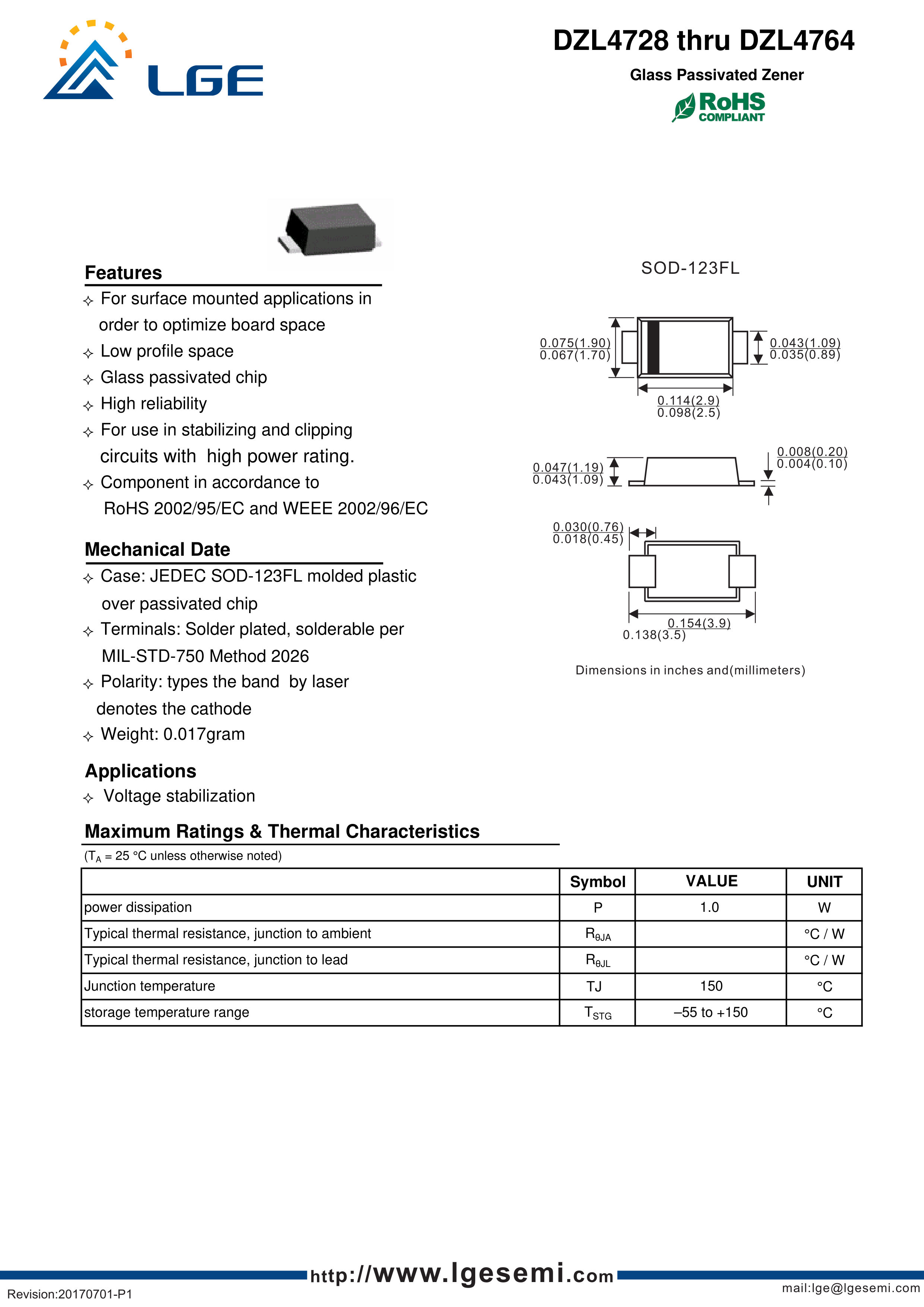 DZL4740数据手册SOD-123FL封装LGE(鲁光)PDF规格书,中英文下载