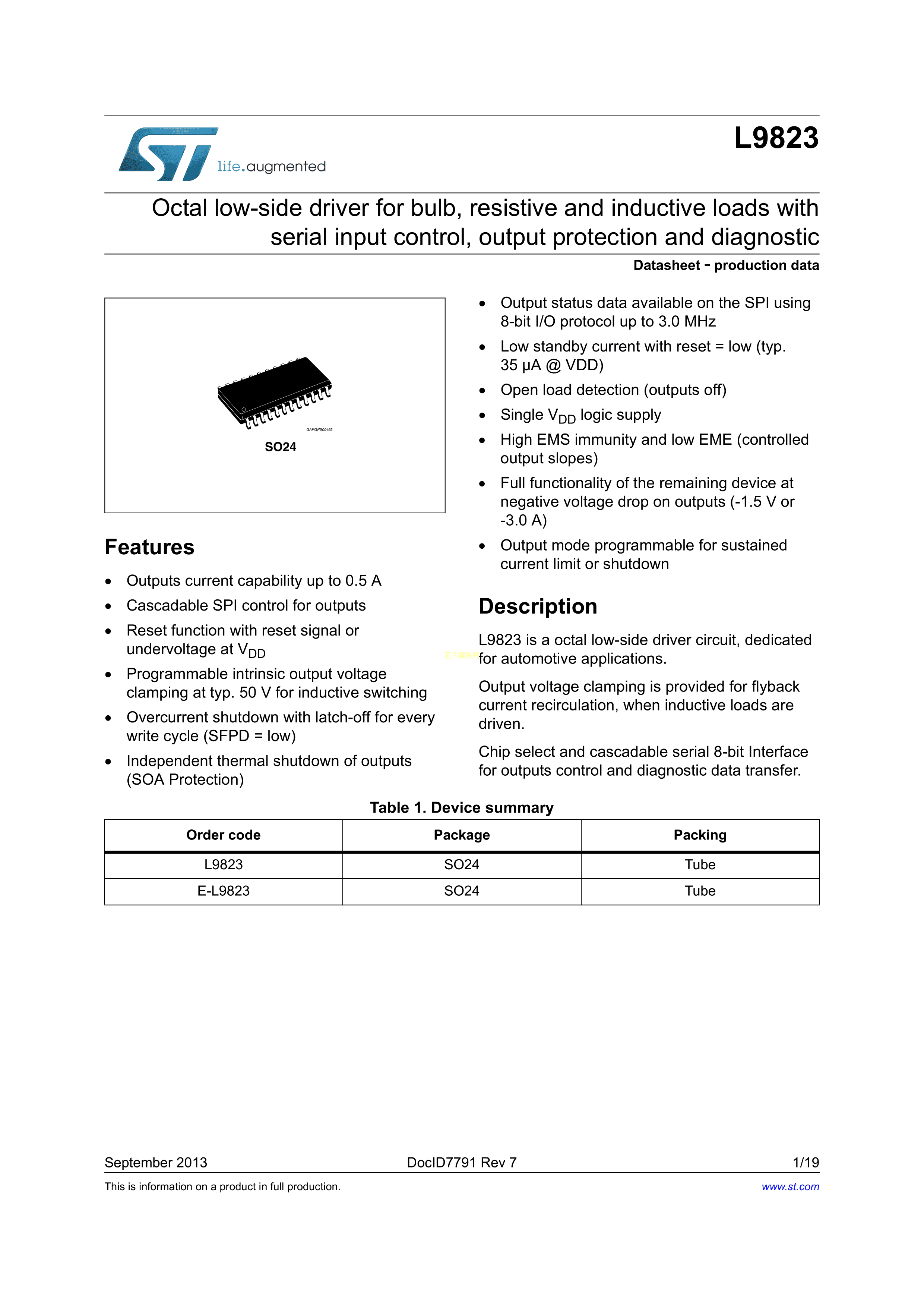 E-L9823013TR数据手册SO-24封装ST(意法半导体)PDF规格书,中英文下载