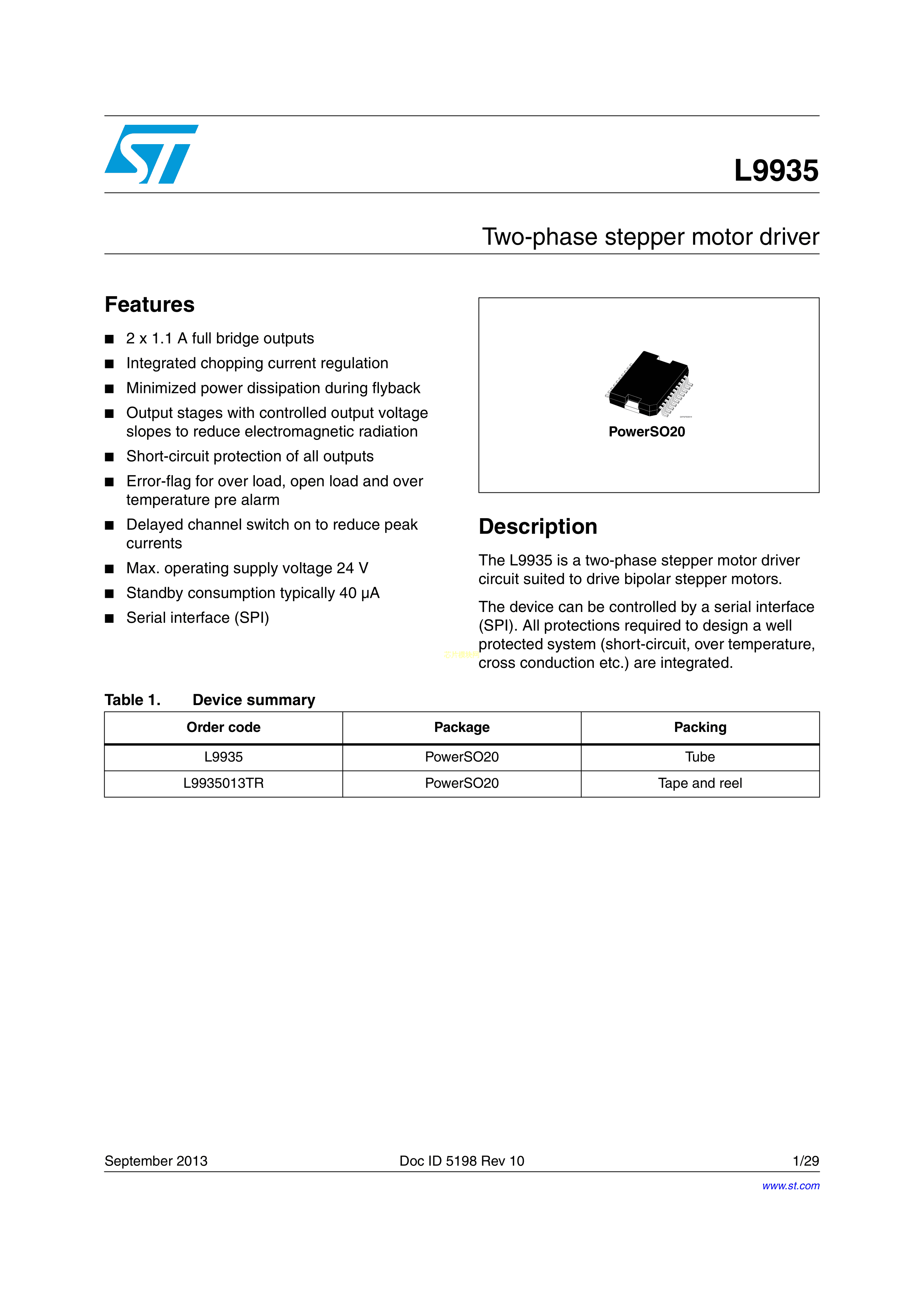 E-L9935013TR数据手册PowerSO-20封装ST(意法半导体)PDF规格书,中英文下载