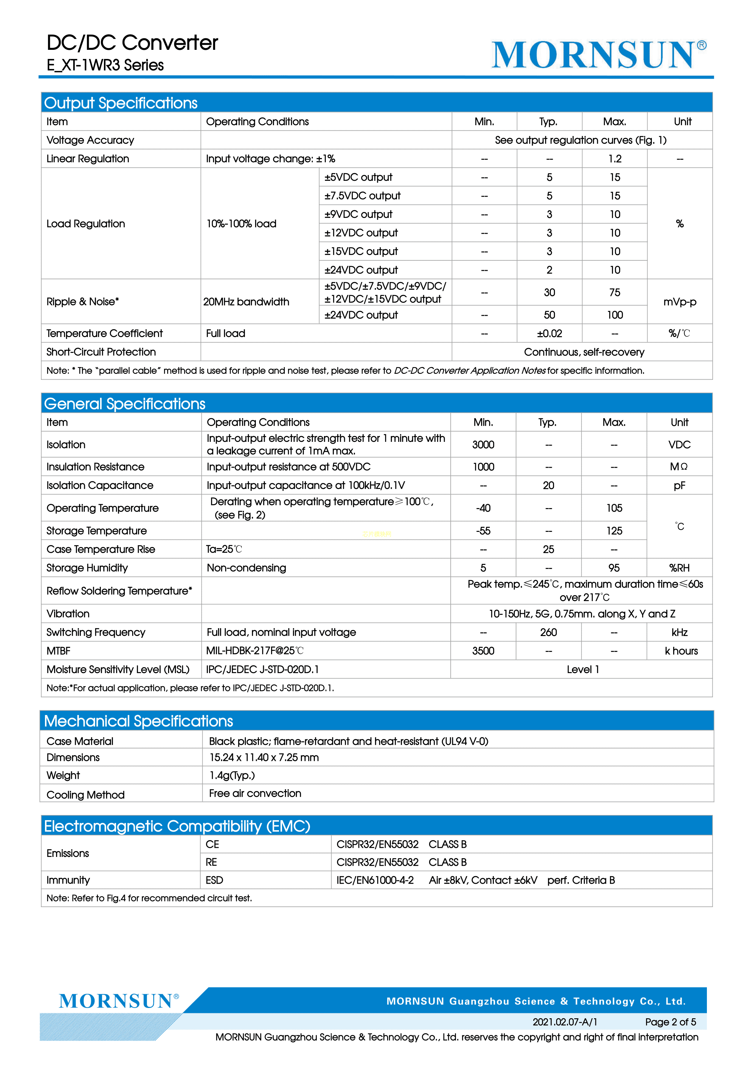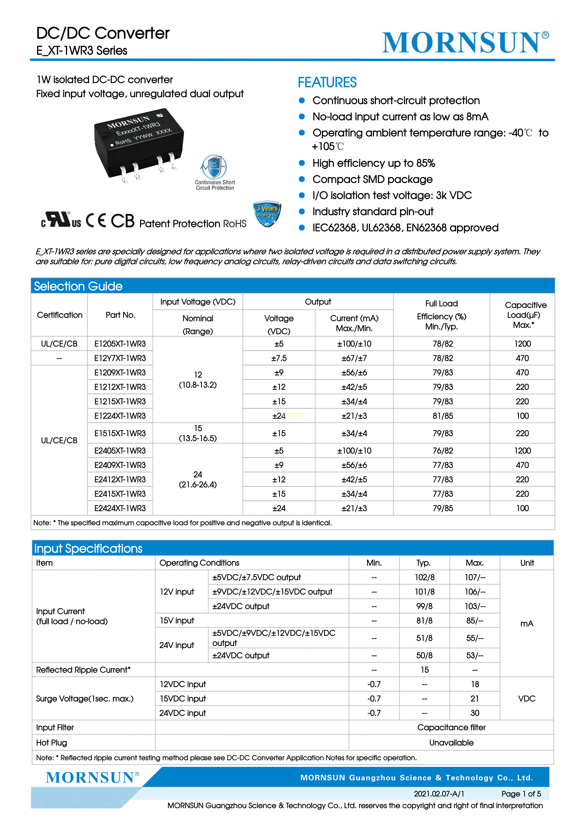 E1215XT-1WR3数据手册SMD封装MORNSUN(金升阳)PDF规格书,中英文下载