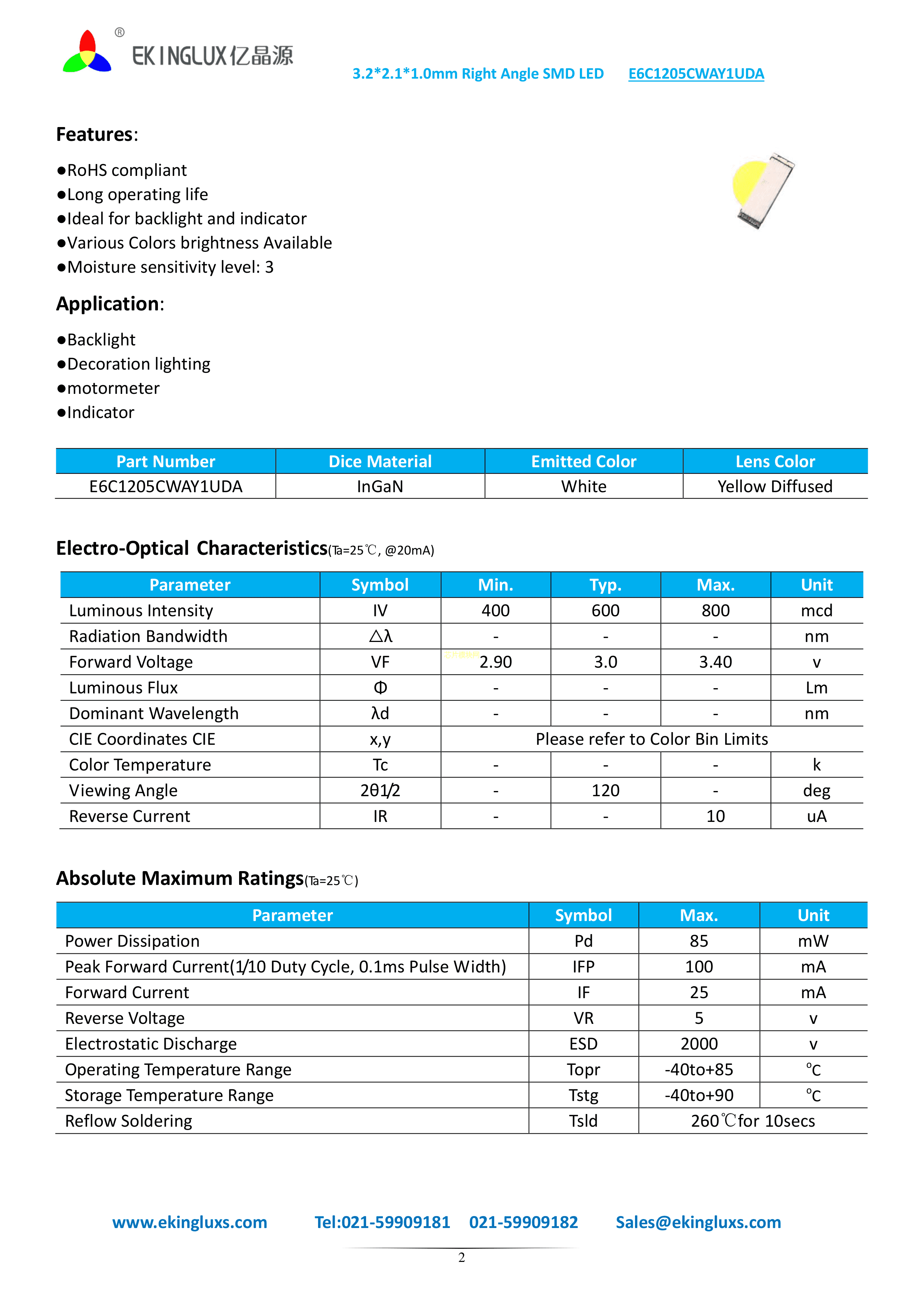 E6C1205CWAY1UDA数据手册SMD3.2x1x2.1mm封装ekinglux(亿晶源)PD