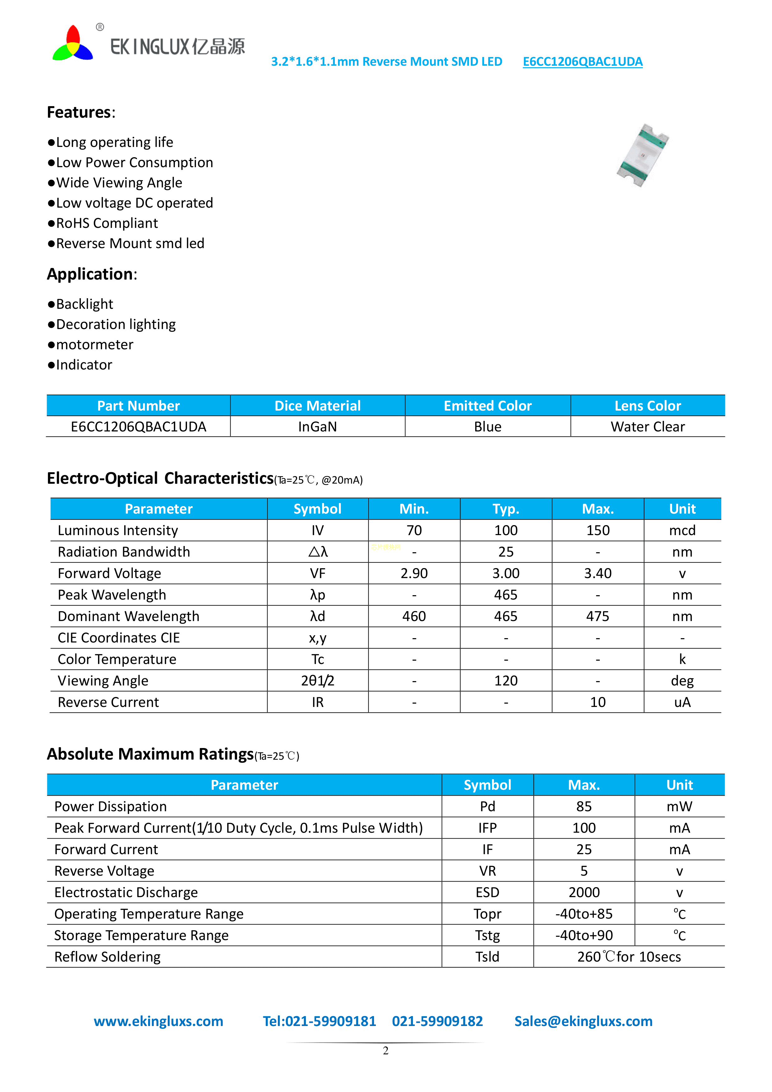 E6CC1206QBAC1UDA数据手册SMD3.2x1.6x1.1mm封装ekinglux(亿晶源