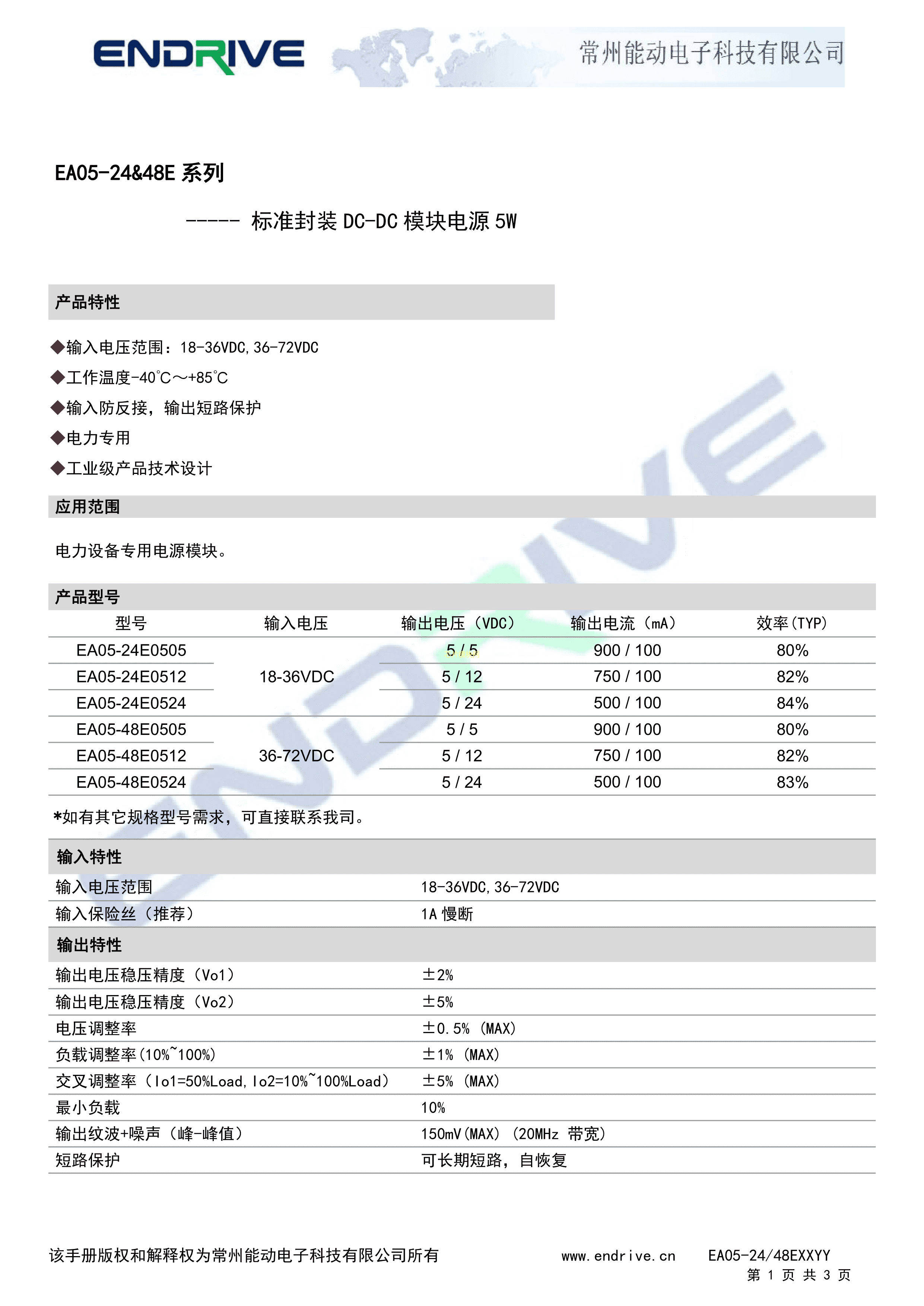 EA05-48E0524数据手册插件封装ENDRIVE(江苏能动)PDF规格书,中英文下载