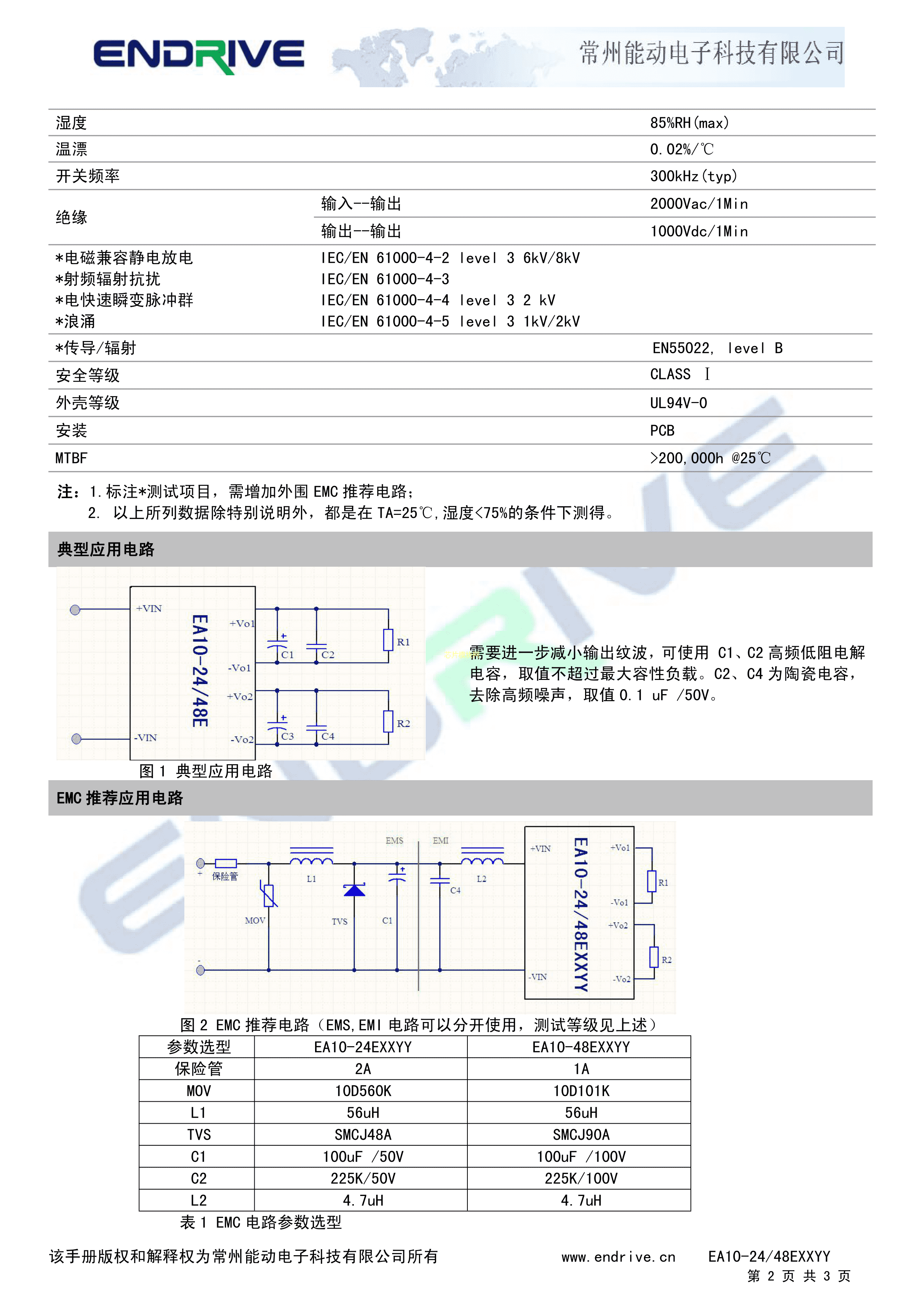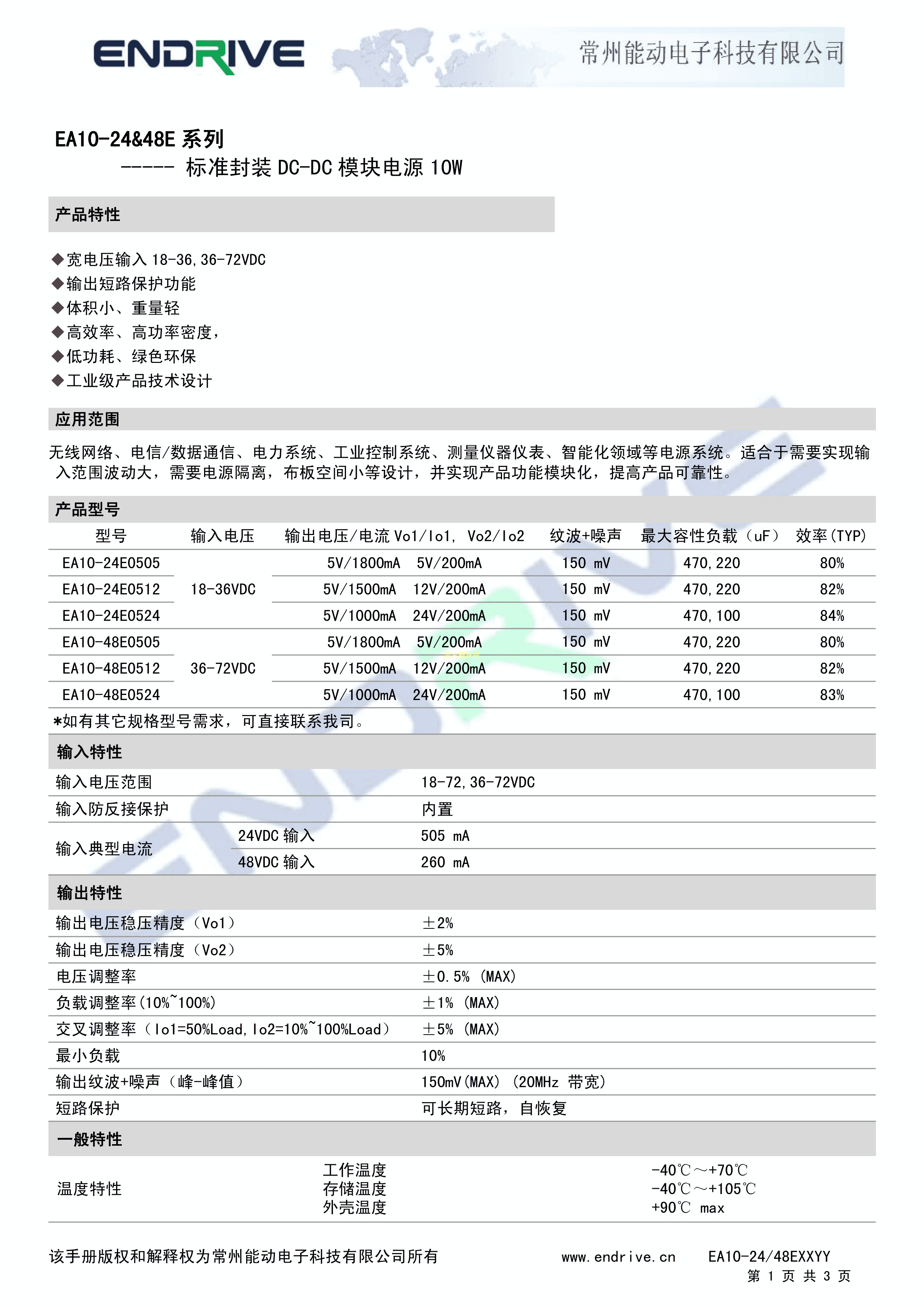 EA10-48E0505数据手册插件封装ENDRIVE(江苏能动)PDF规格书,中英文下载