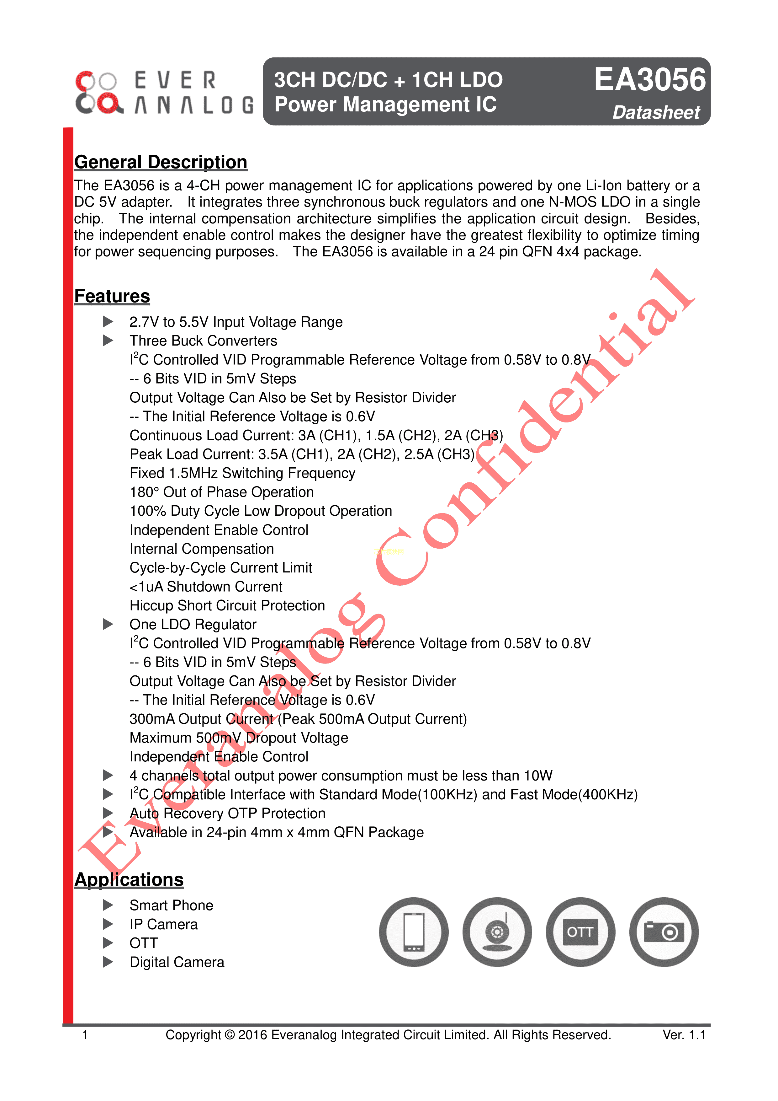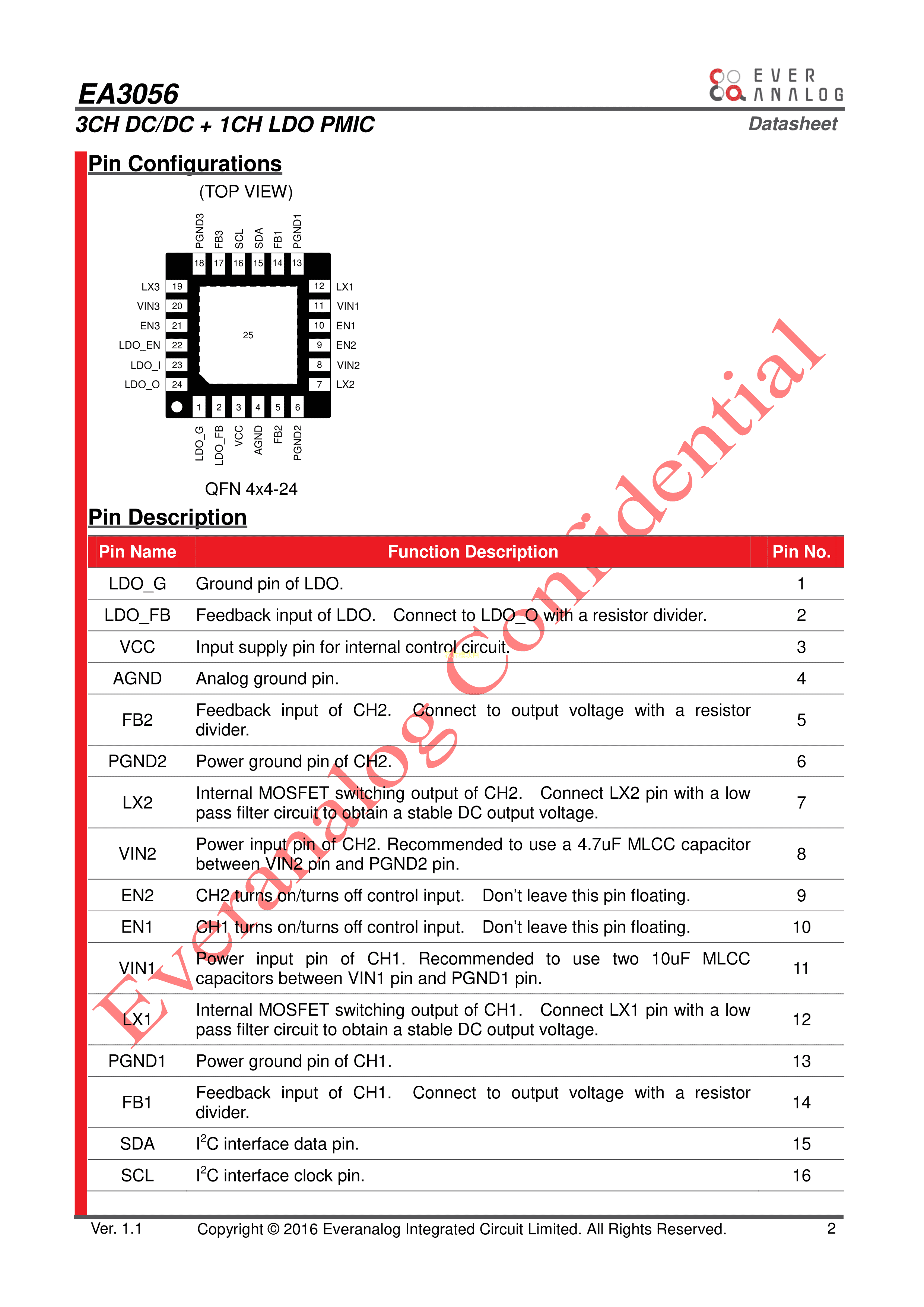 EA3056QDR数据手册QFN-24(4x4)封装everanalog(申风)PDF规格书,中英文