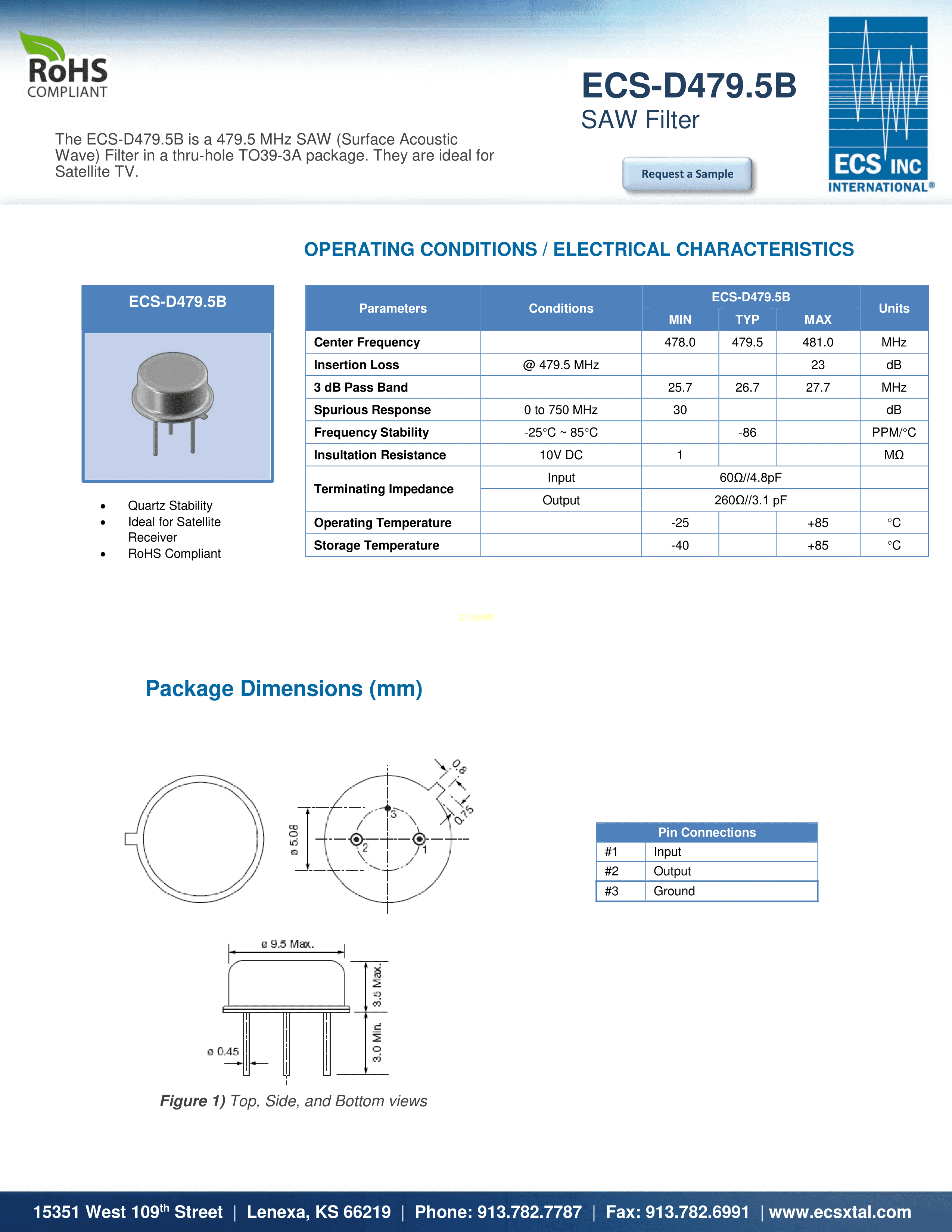 ECS-D479.5B数据手册TO-205AD封装ECSPDF规格书,中英文下载