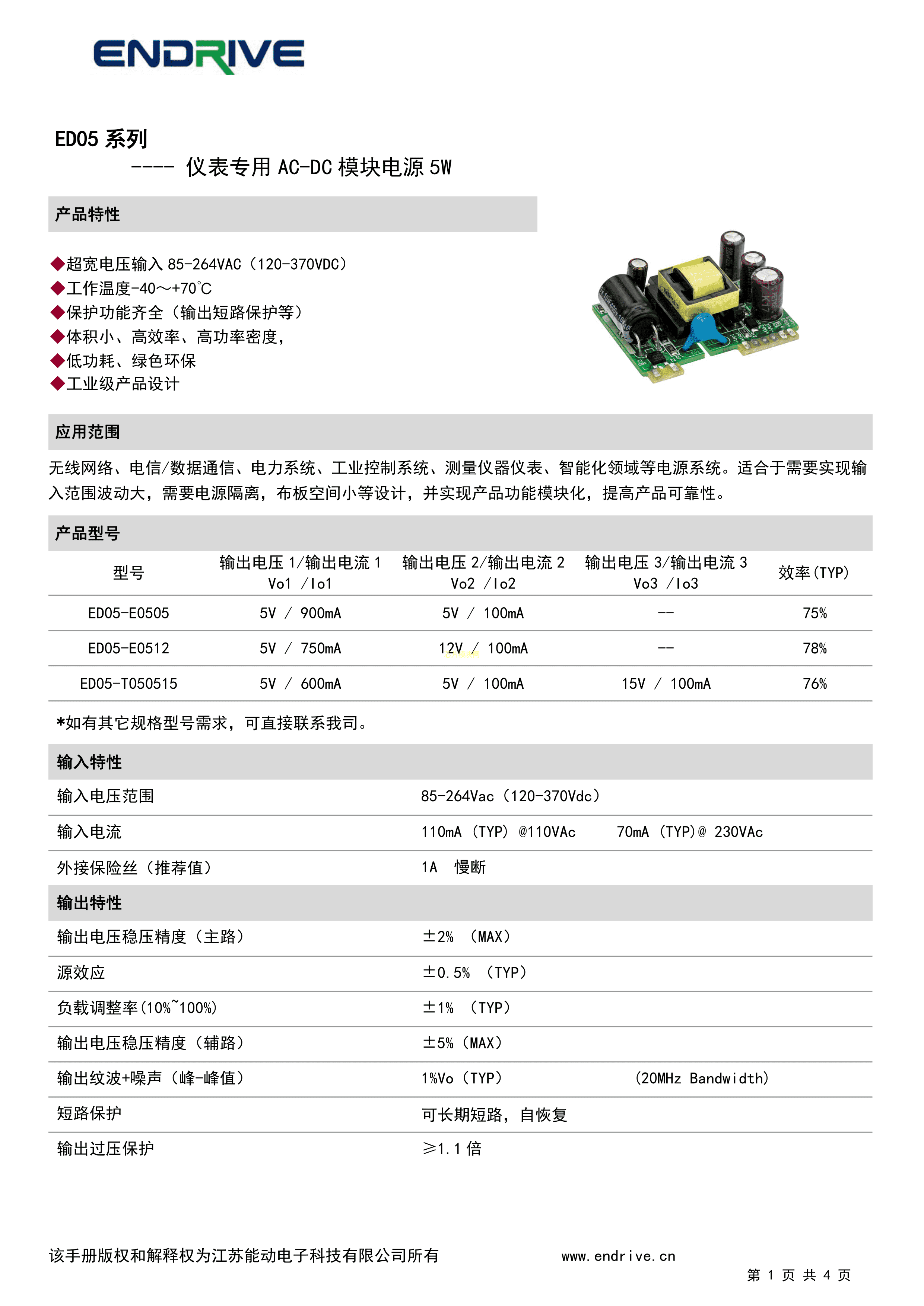 ED05-E0512数据手册-封装ENDRIVE(江苏能动)PDF规格书,中英文下载