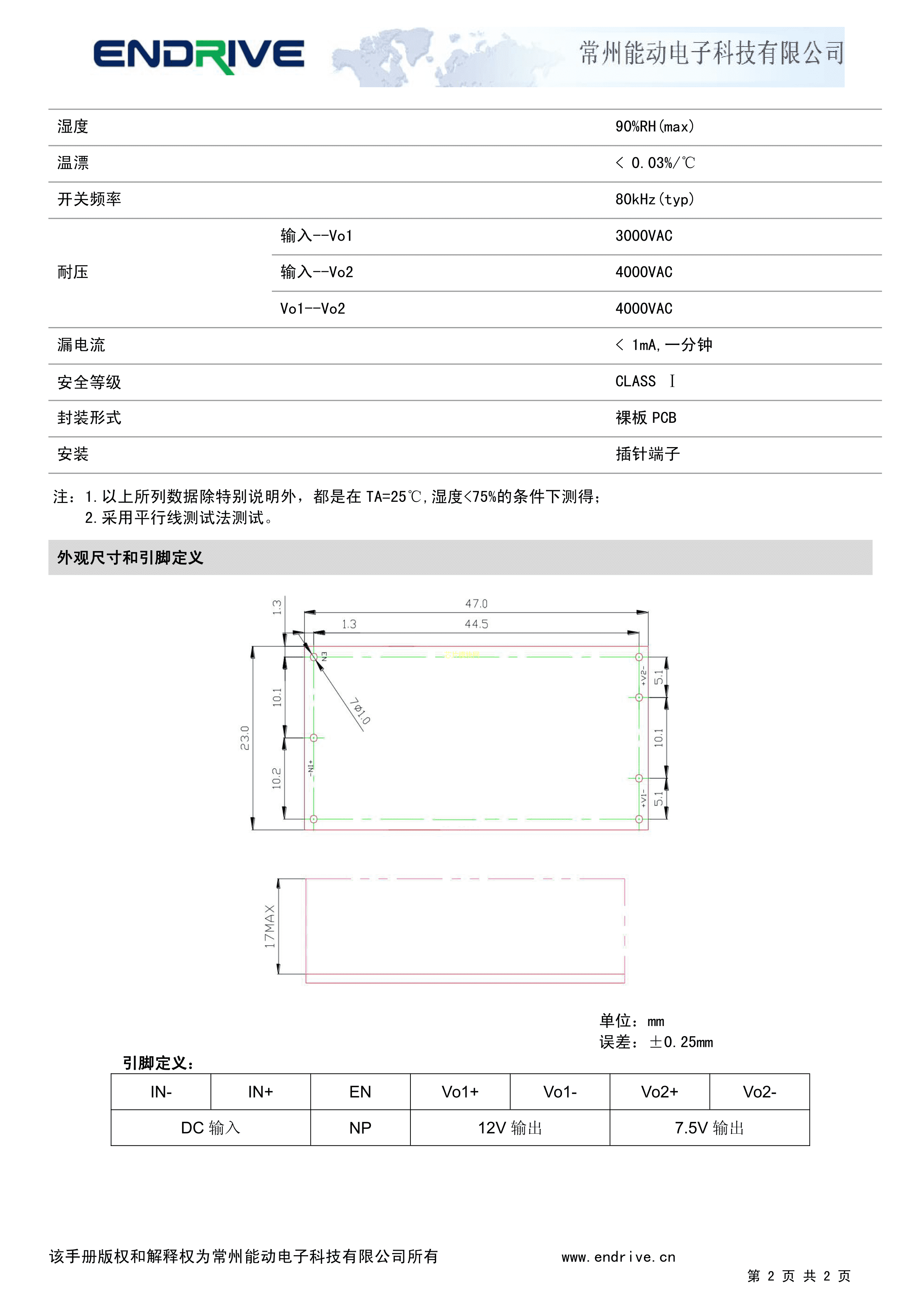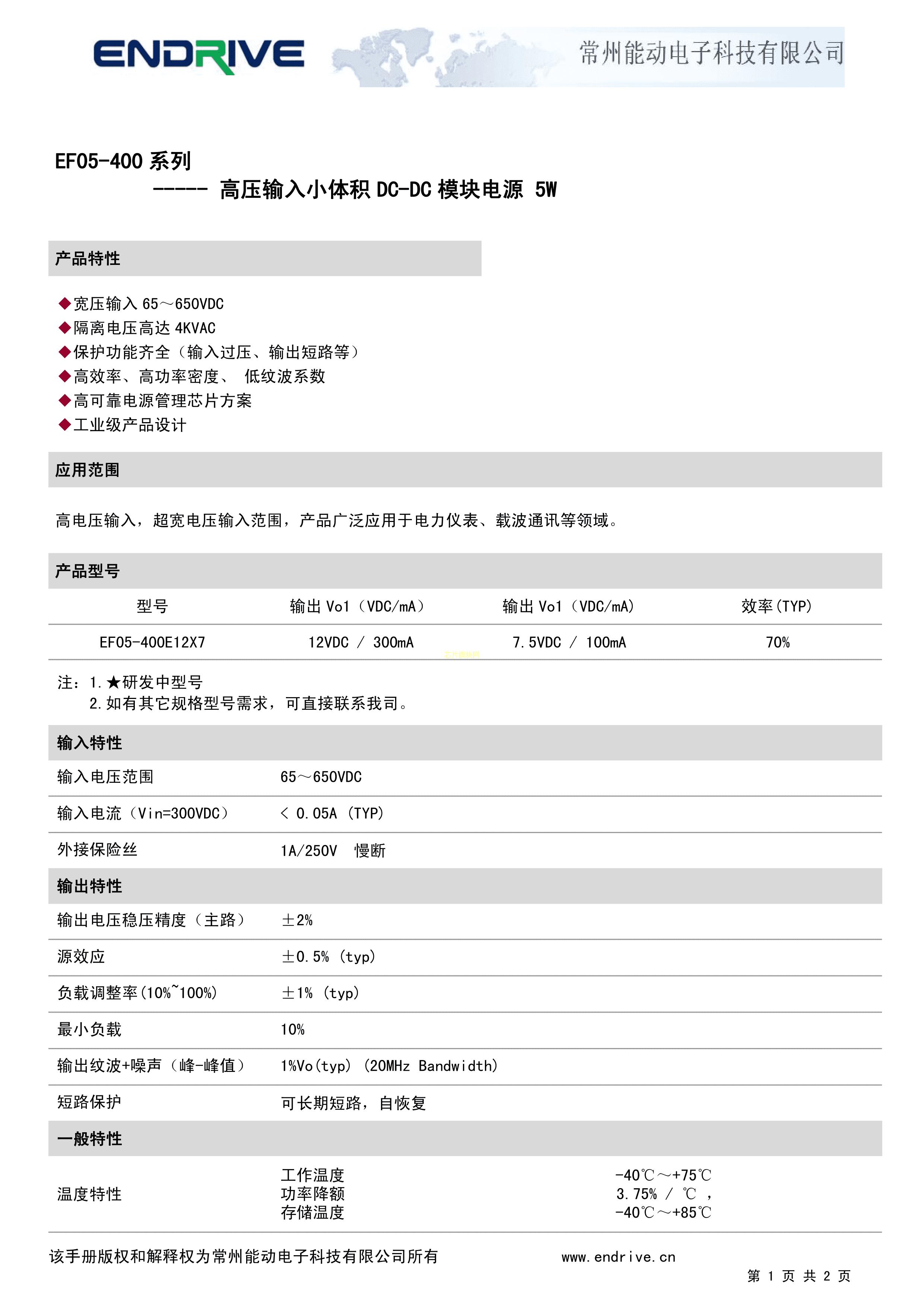 EF05-400E12X7数据手册插件封装ENDRIVE(江苏能动)PDF规格书,中英文下载