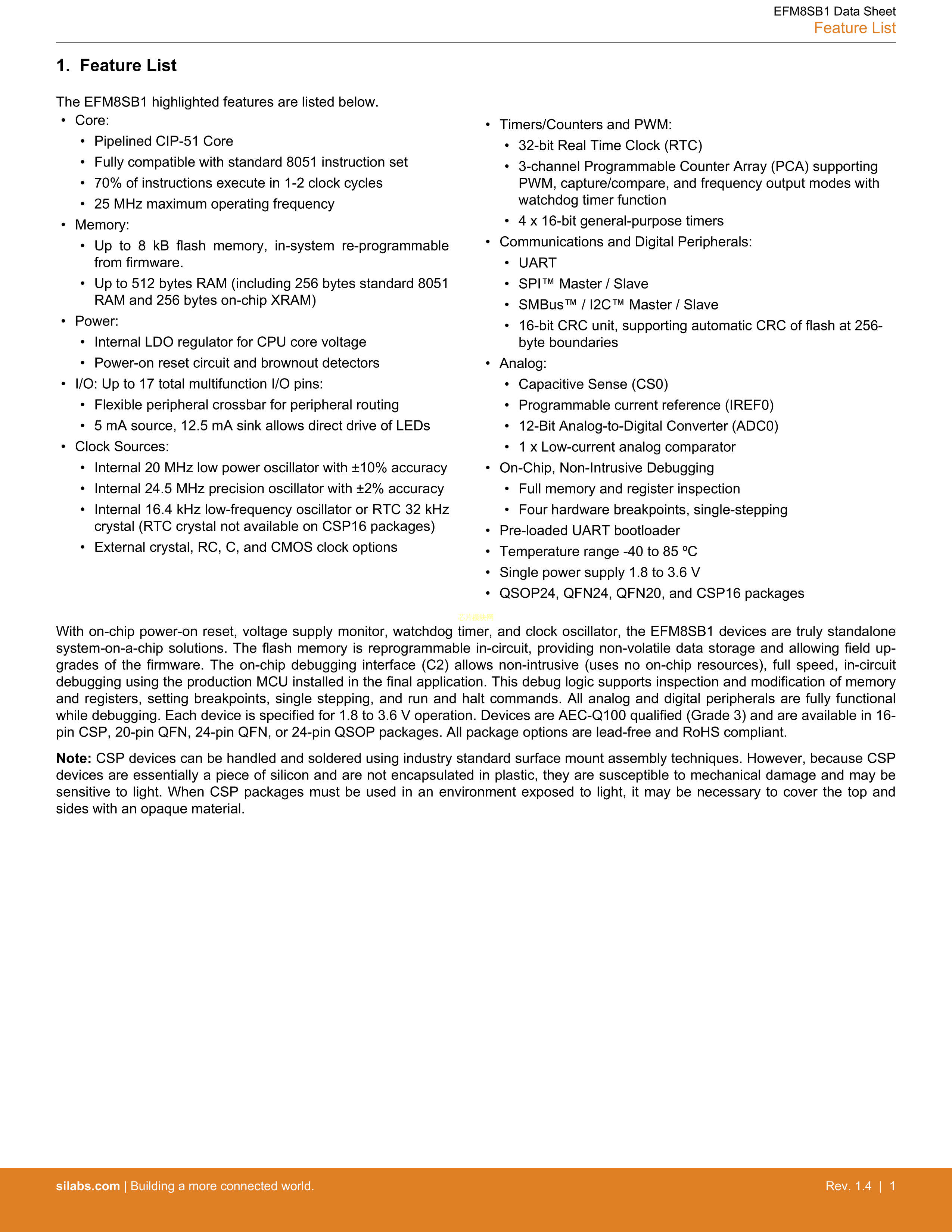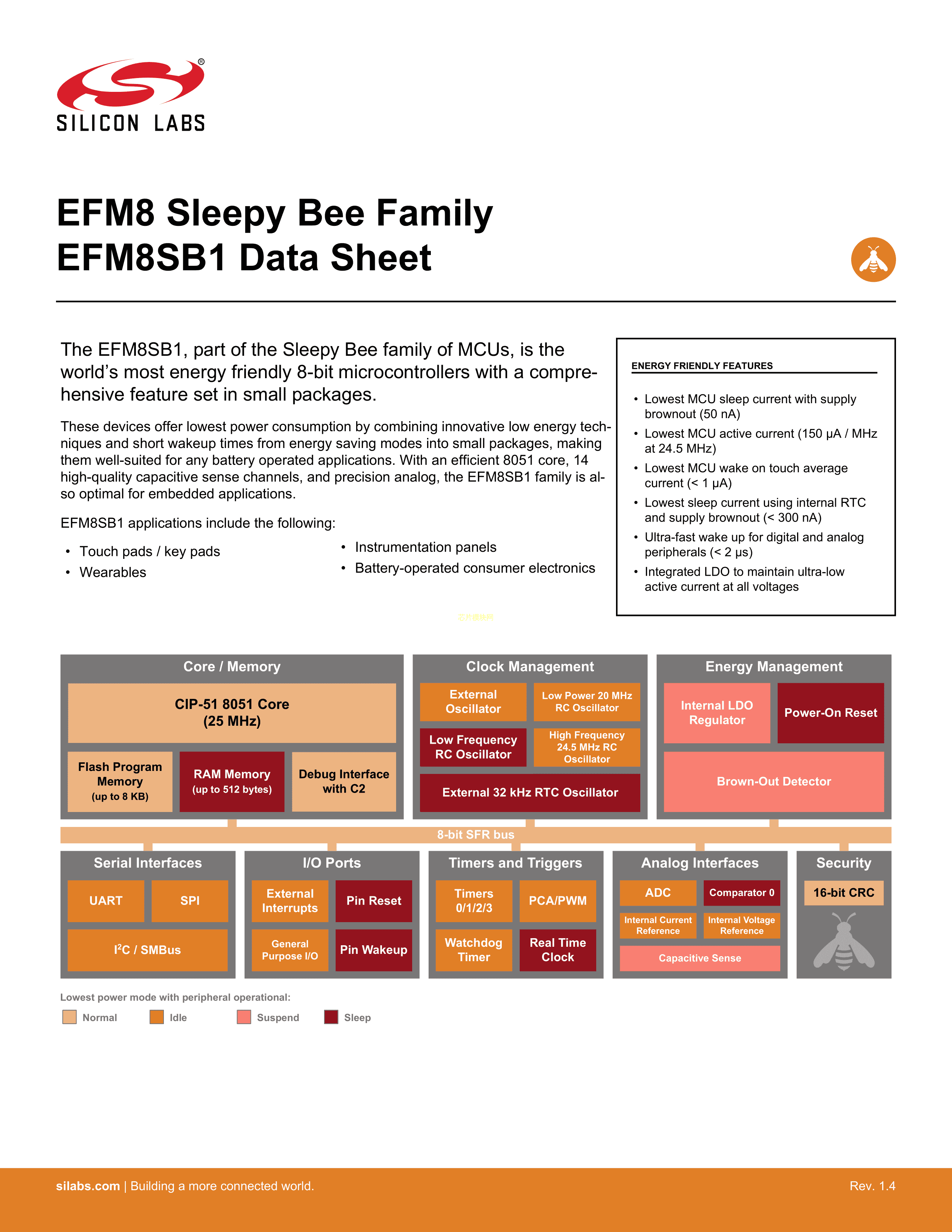 EFM8SB10F4G-A-QFN20R数据手册QFN-20(3x3)封装SILICONLABS(芯