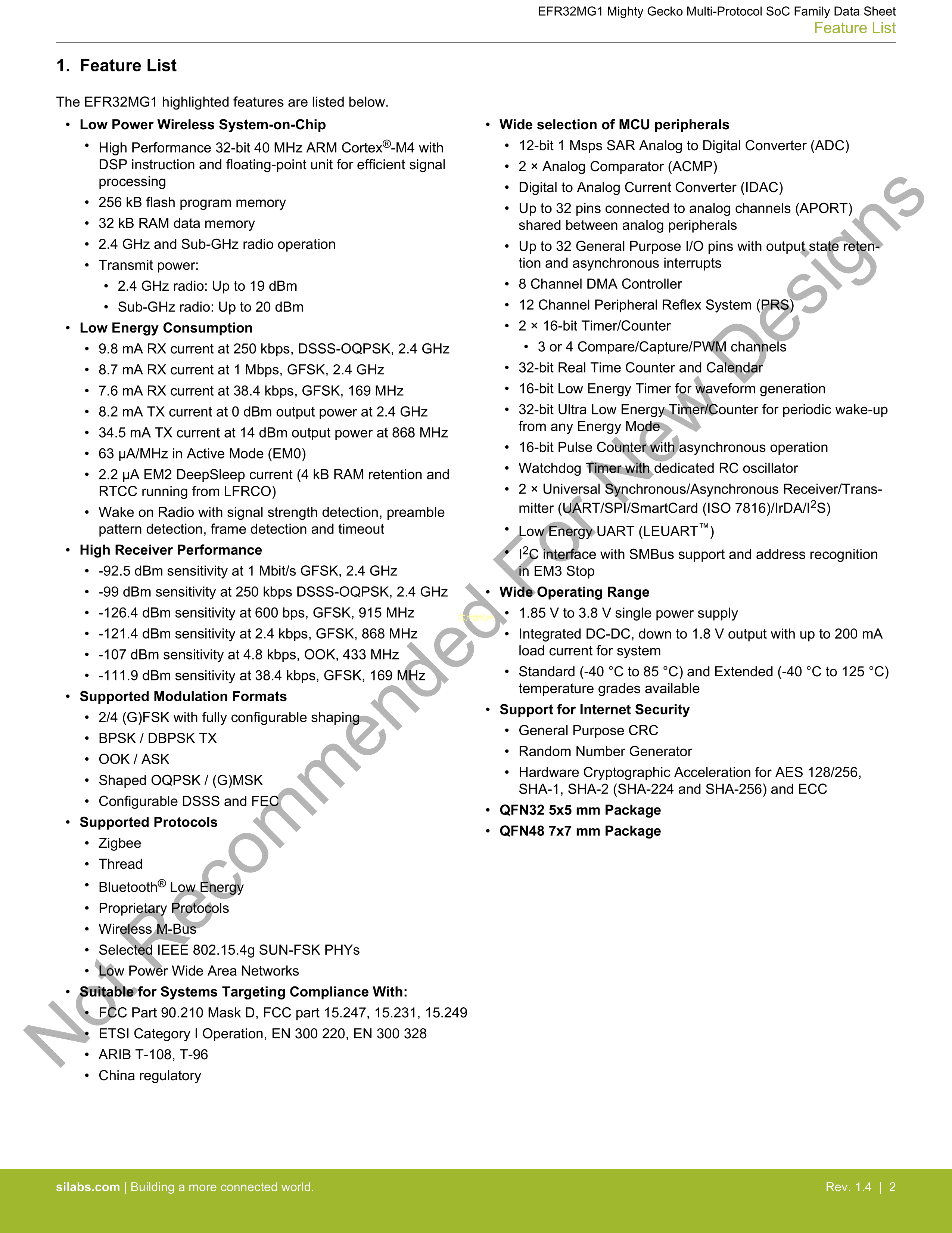 EFR32MG1P232F256IM48-C0R数据手册QFN-48(7x7)封装SILICON-LABS(芯科)PDF规格书,中英文下载
