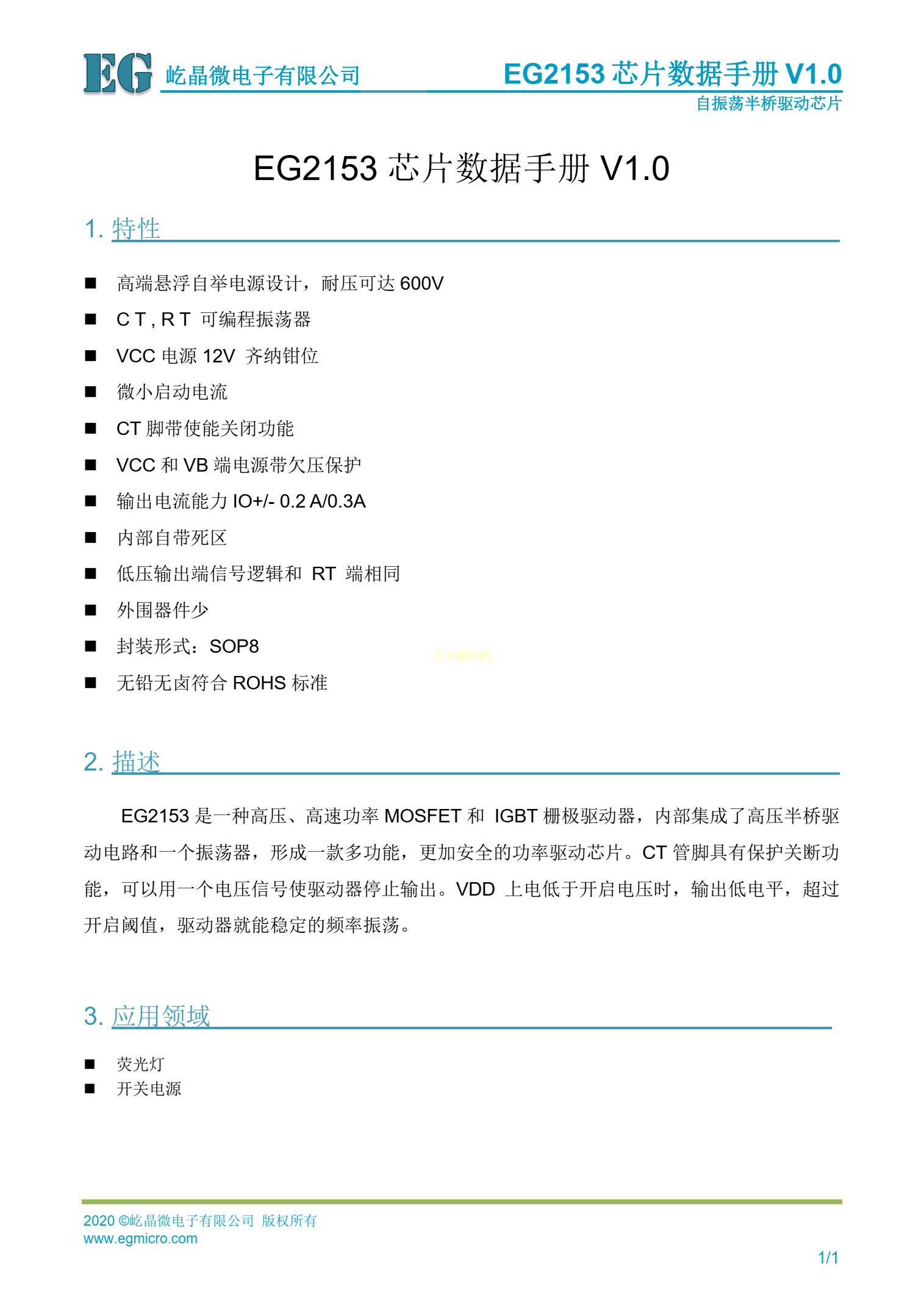 EG2153高压600V自振荡半桥驱动芯片数据手册V1.0.pdf