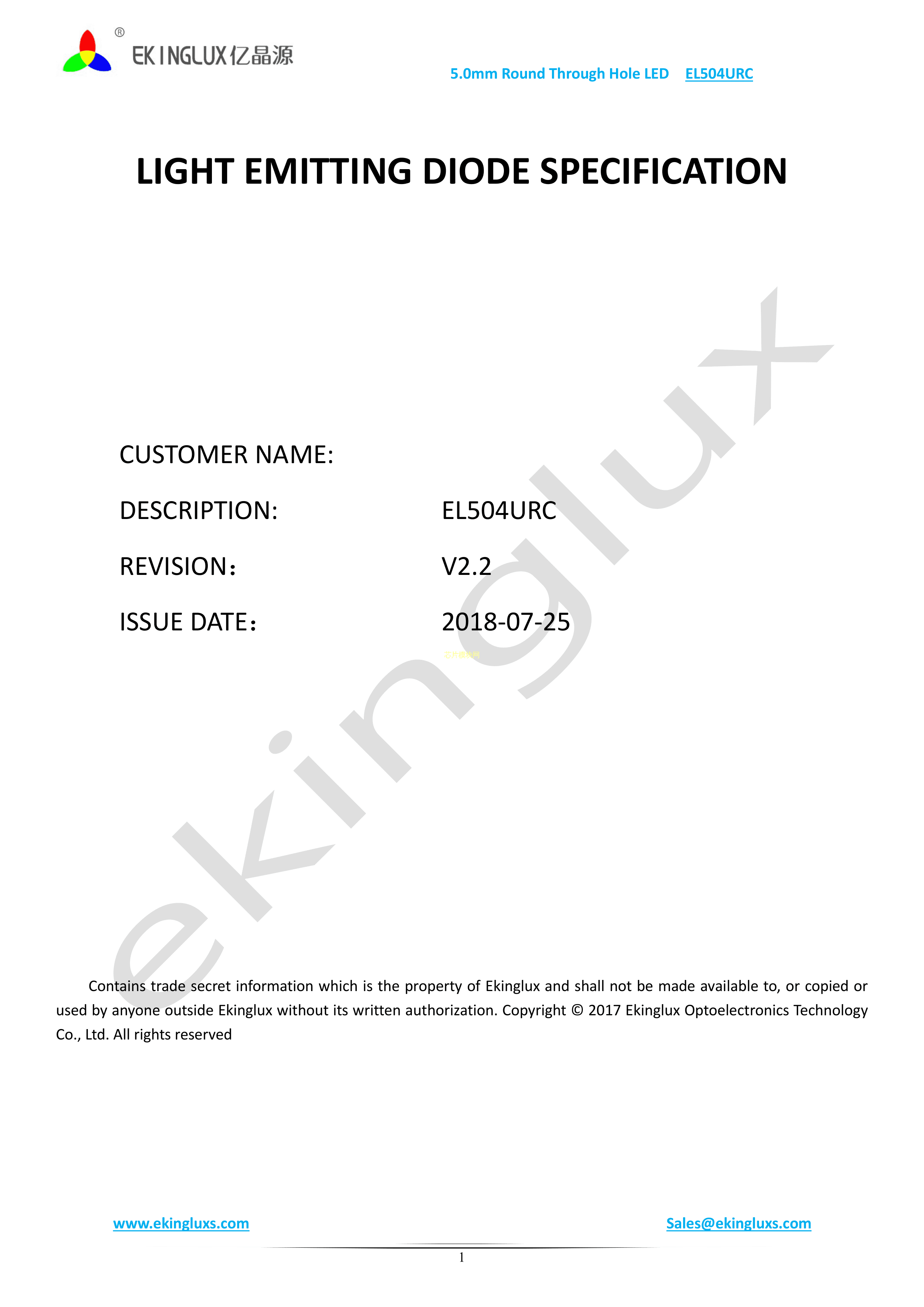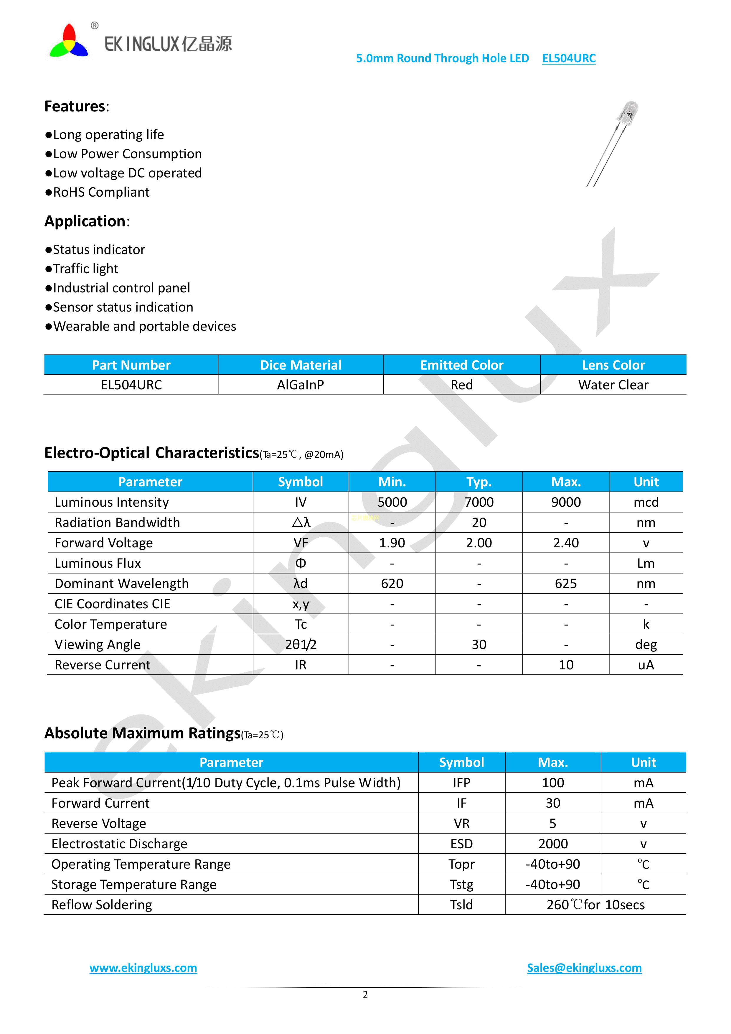EL504URC数据手册插件φ5mm封装ekinglux(亿晶源)PDF规格书,中英文下载