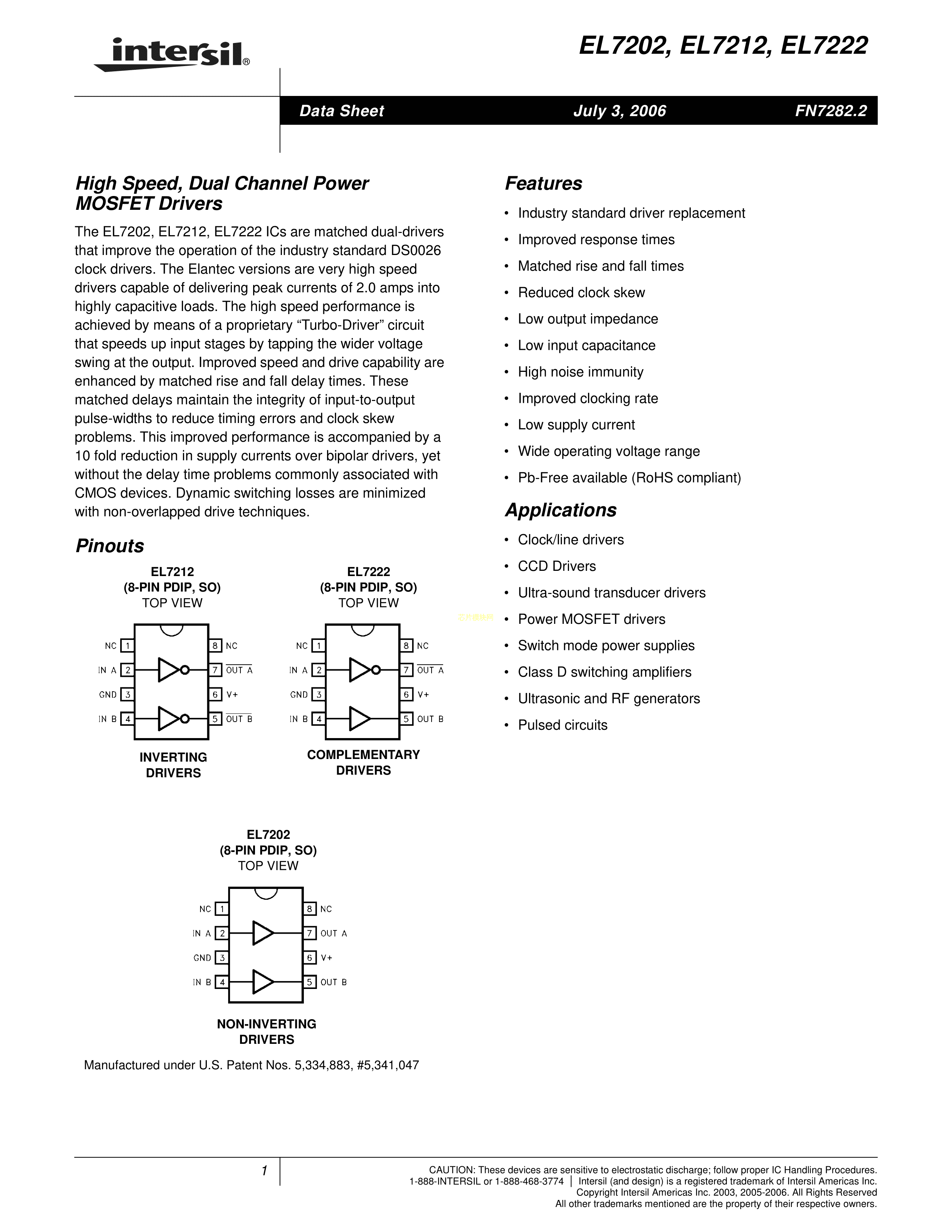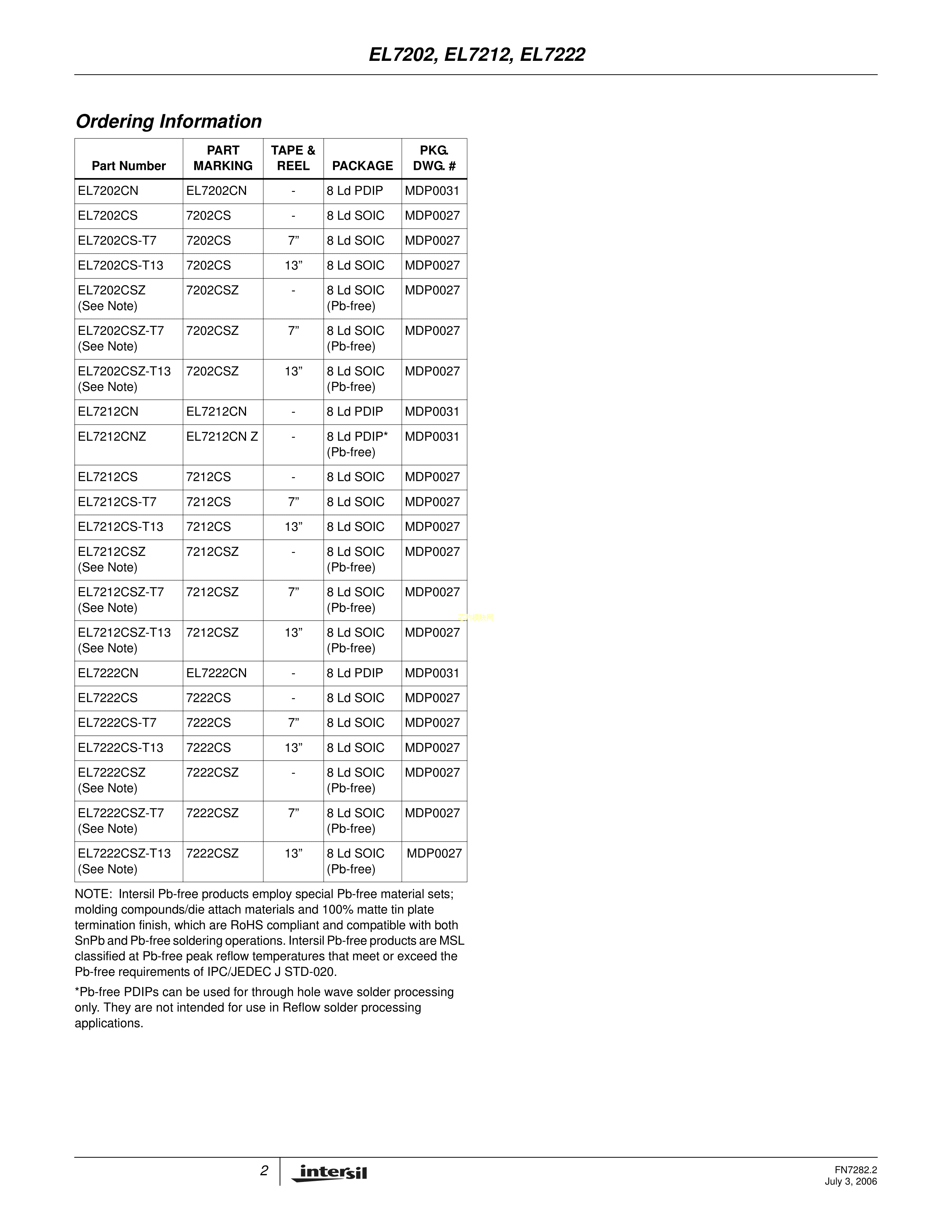EL7212CSZ-T7数据手册SOIC-8_150mil封装RENESAS(瑞萨)-IDTPDF规