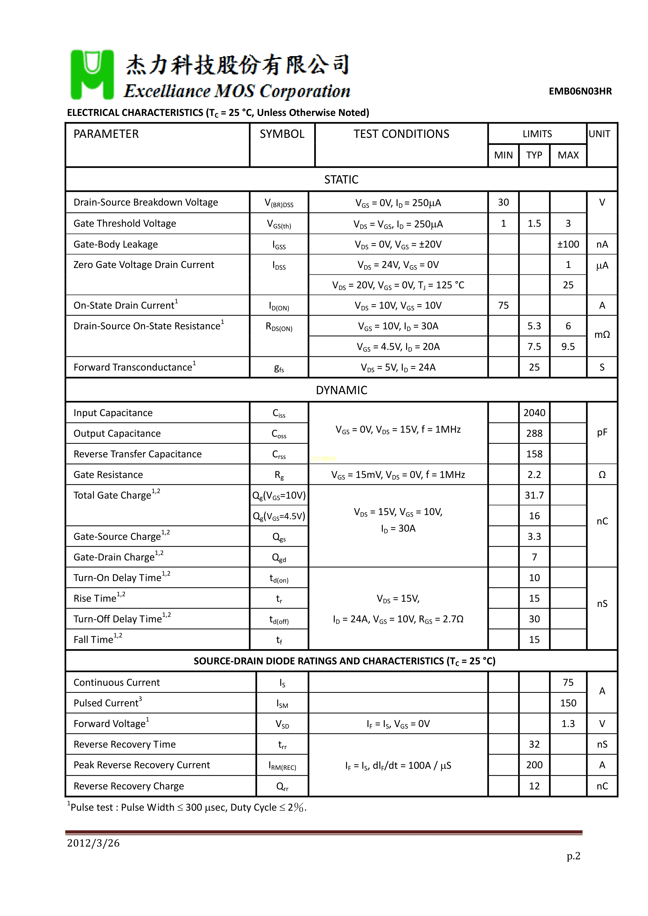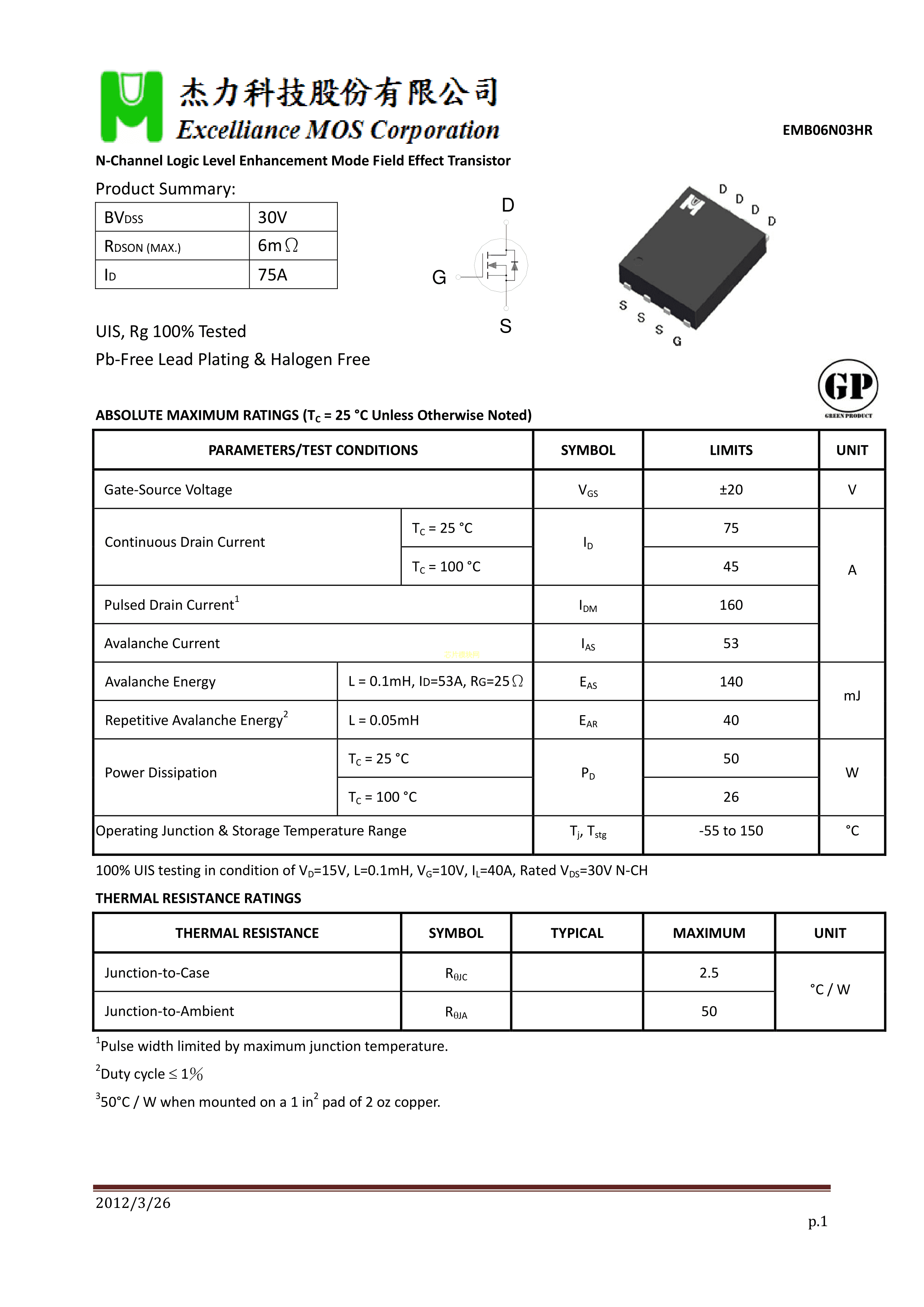 EMB06N03HR数据手册EDFN5x6封装EMC(杰力)PDF规格书,中英文下载