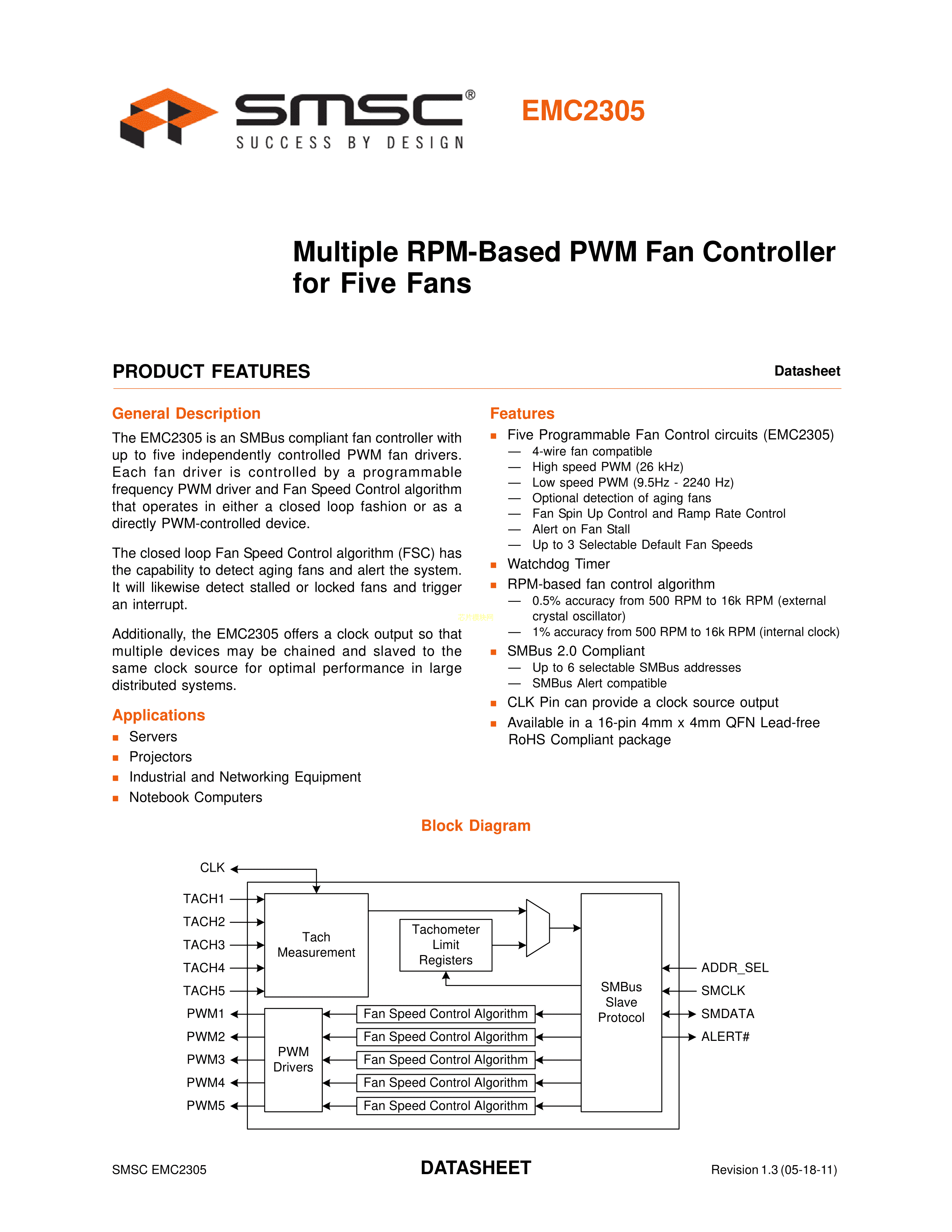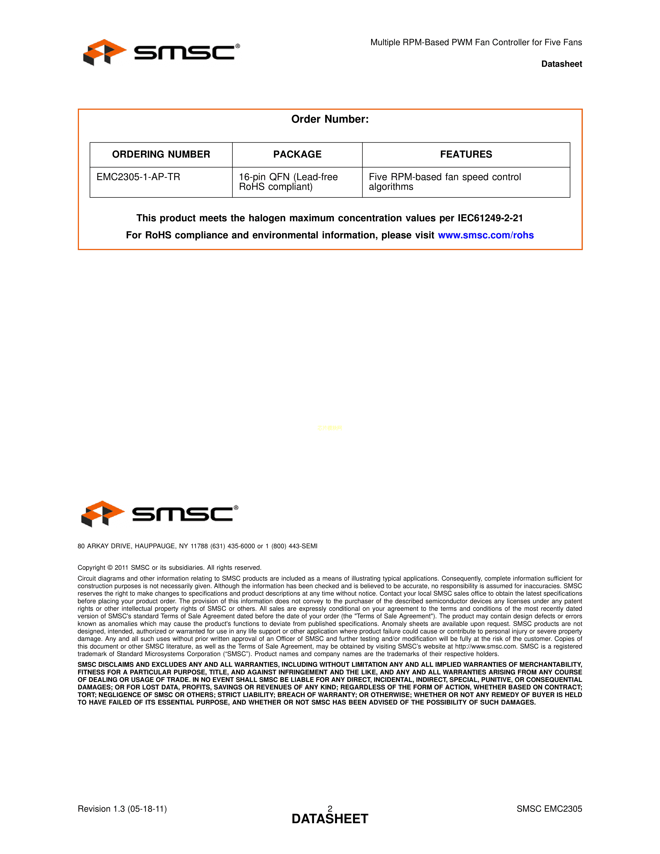 EMC2305-1-AP-TR数据手册QFN-16封装MICROCHIP(美国微芯)PDF规格书,中