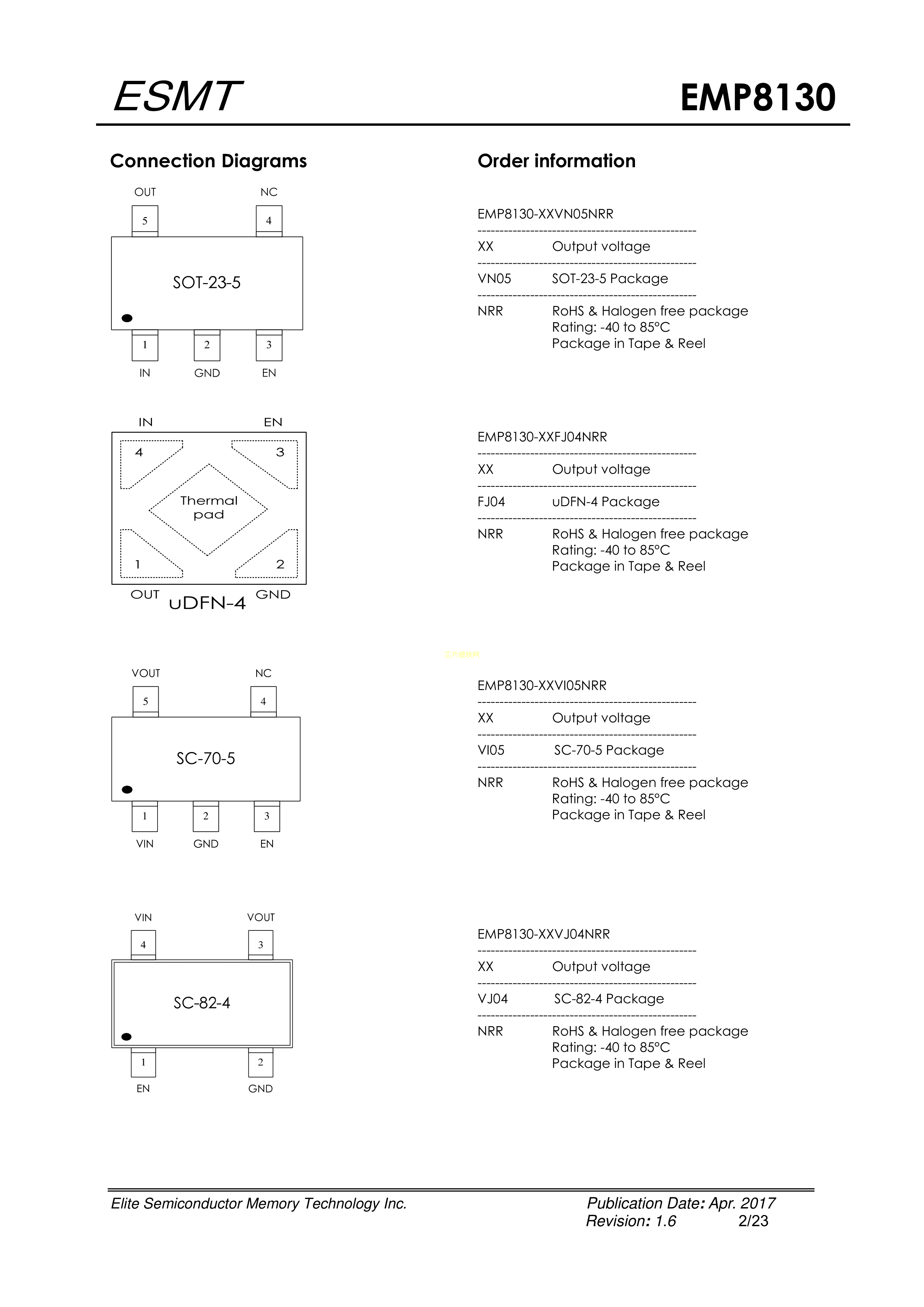 EMP8130-25VN05NRR数据手册SOT-23-5封装ESMT(台湾晶豪)PDF规格书,中英