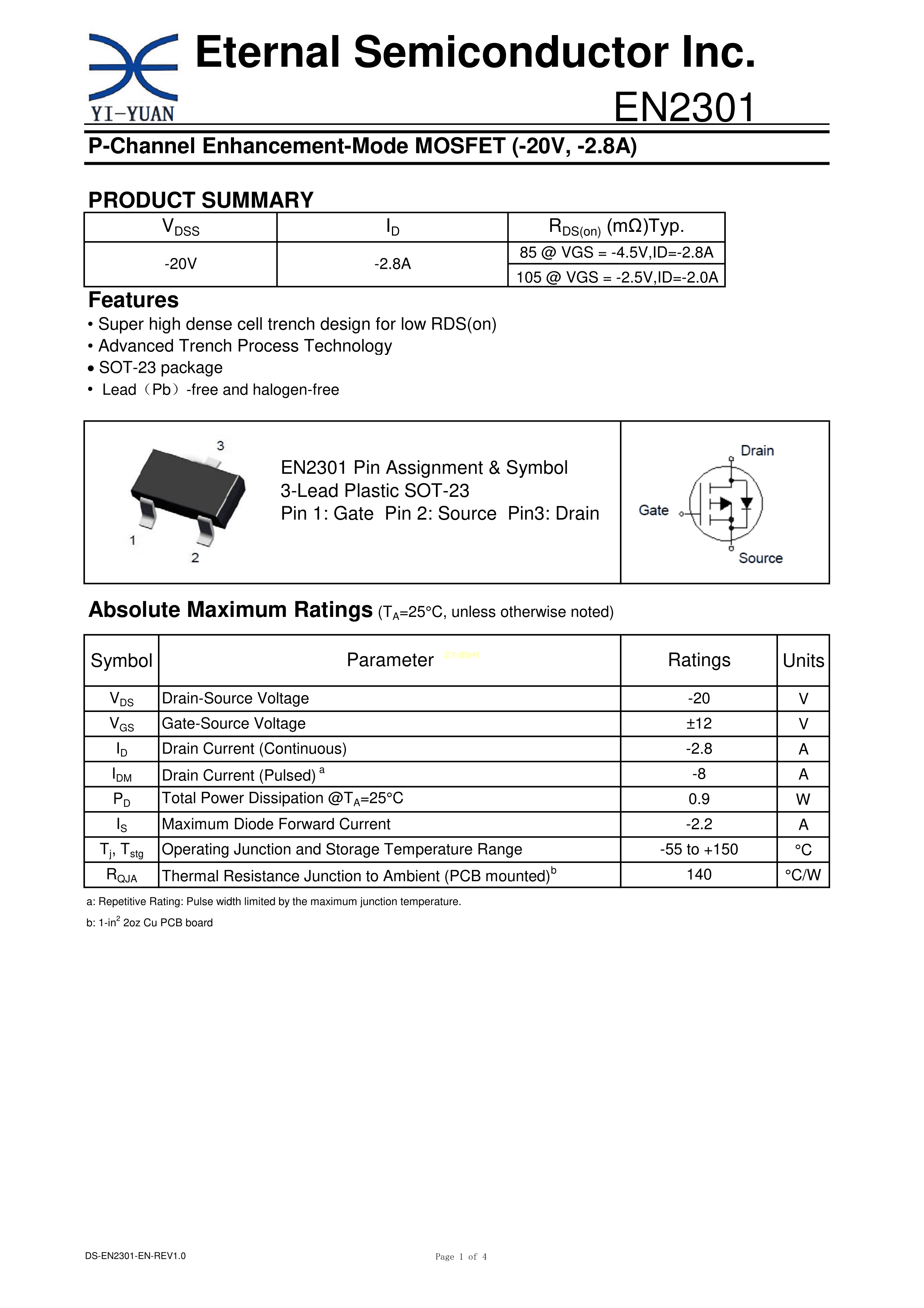 EN2301数据手册SOT-23封装宜源科技(ETERNAL)PDF规格书,中英文下载
