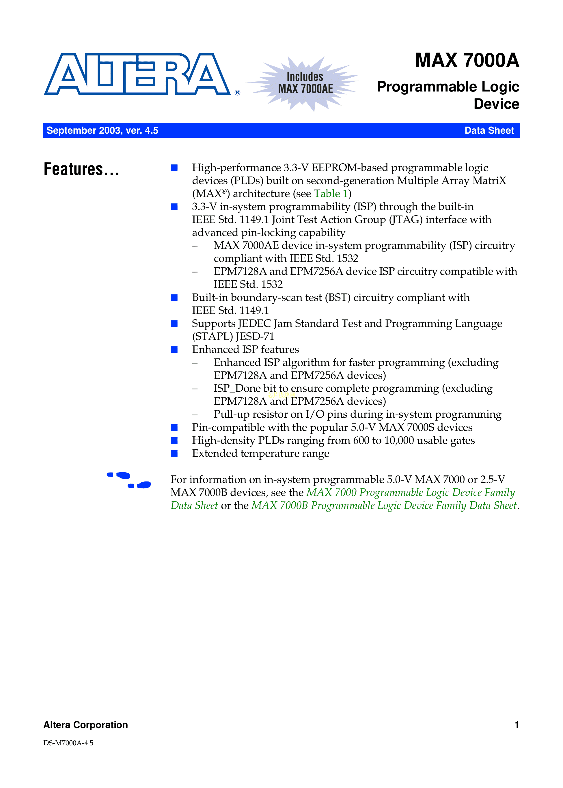 EPM7128AETC100-10N数据手册TQFP-100(14x14)封装Intel-Alter