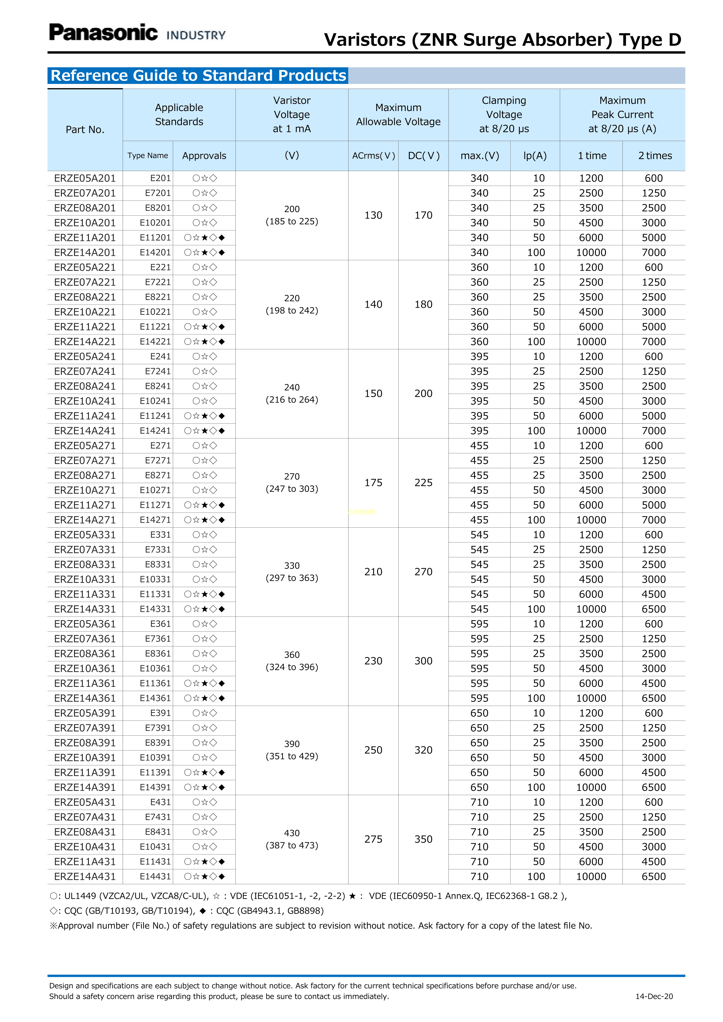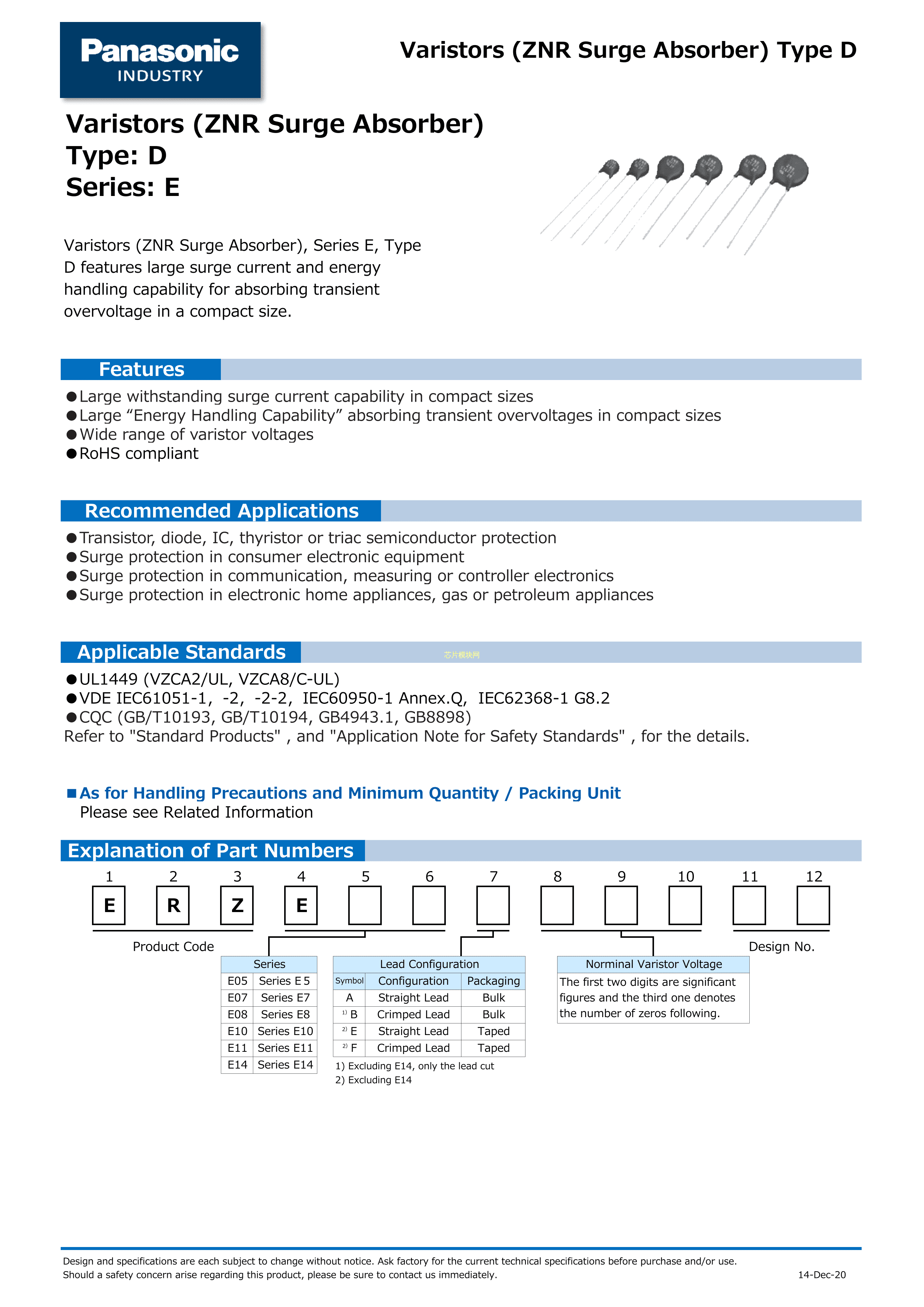 ERZ-E11F561数据手册径向引线封装PANASONIC(松下)PDF规格书,中英文下载