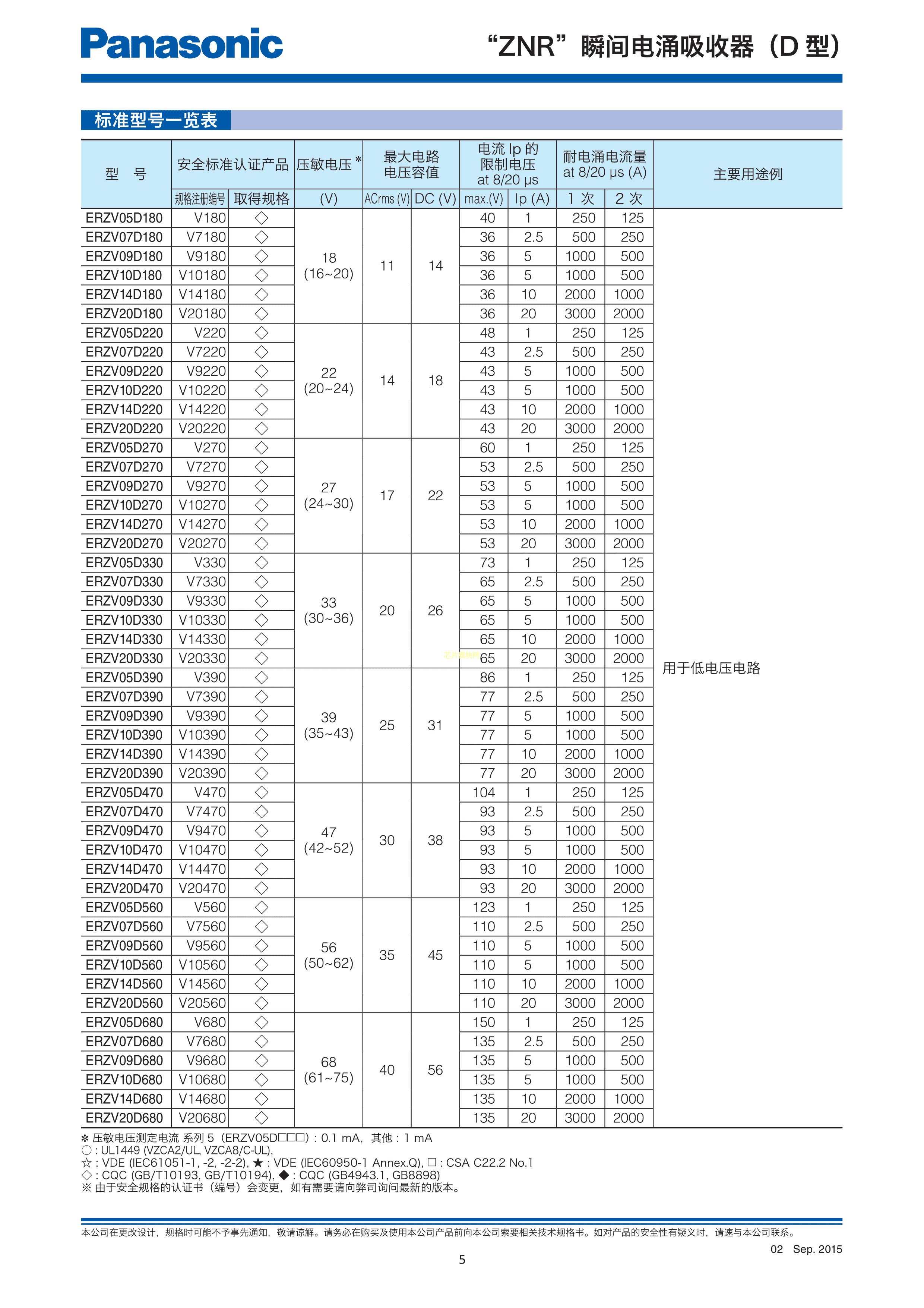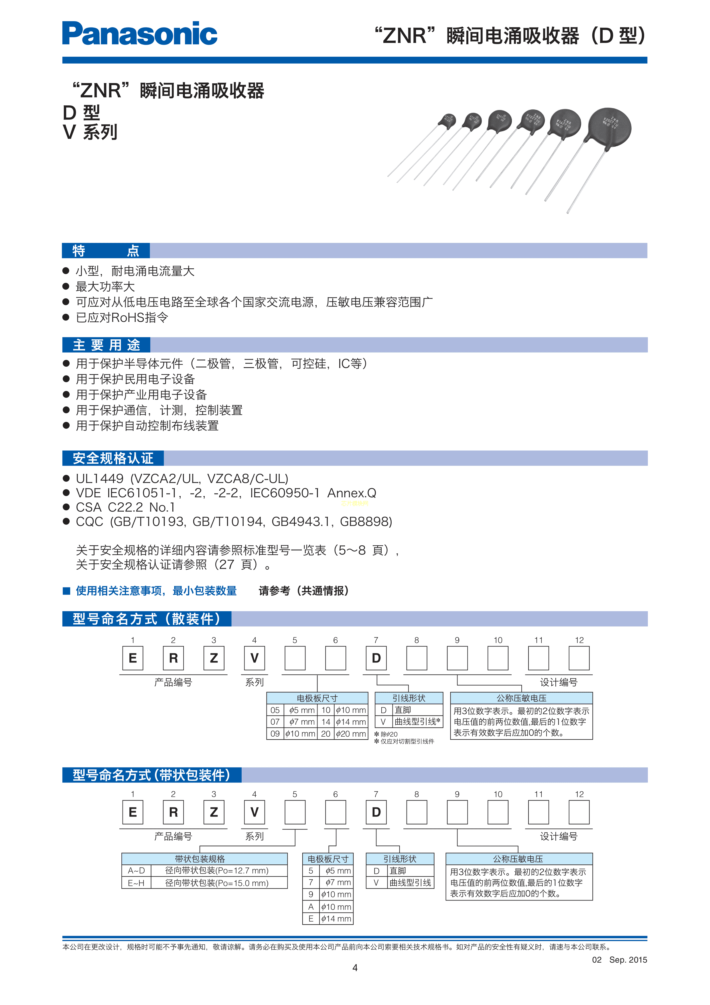 ERZV07D471数据手册径向引线封装PANASONIC(松下)PDF规格书,中英文下载