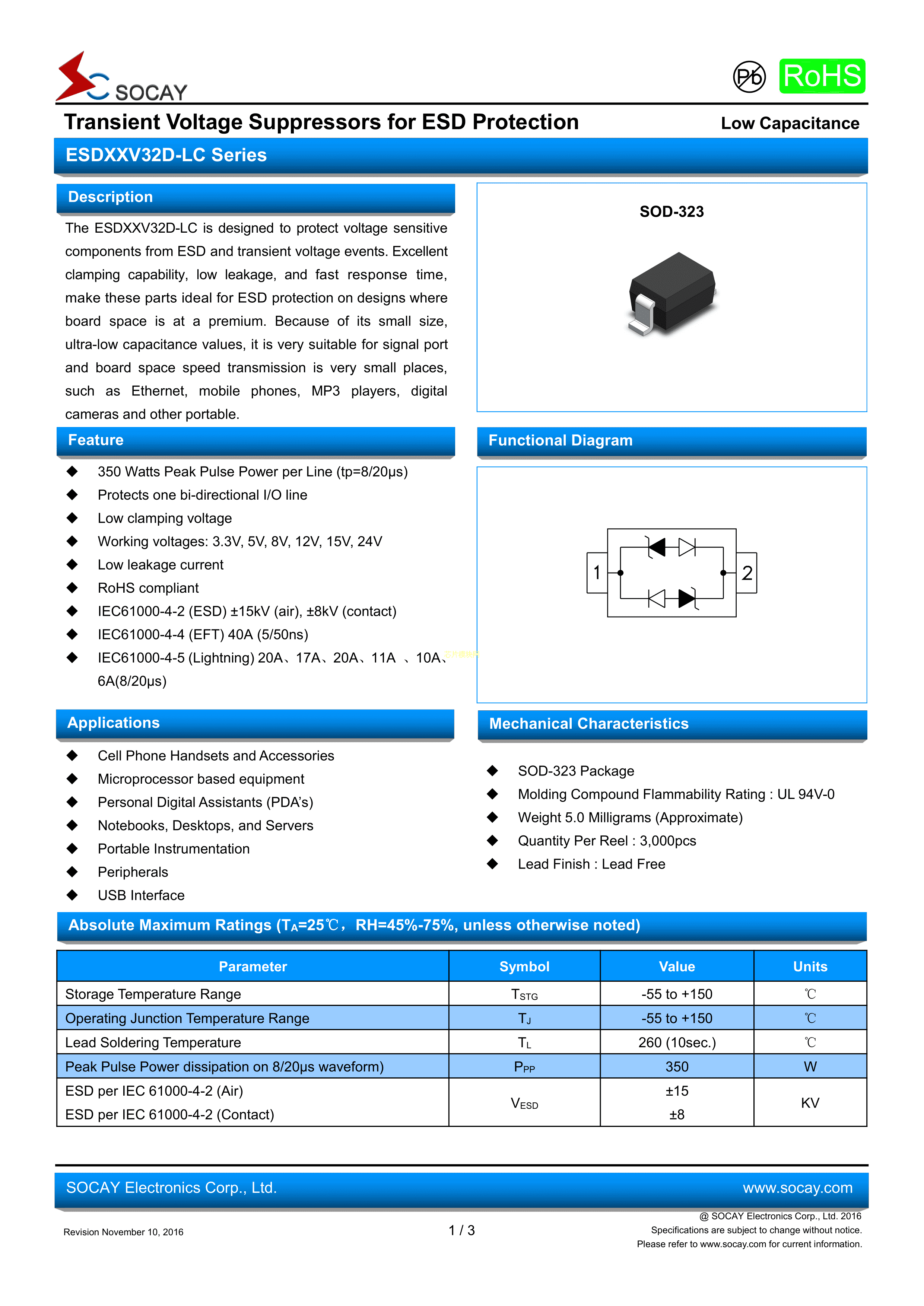 ESD05V32D-LC数据手册SOD-323封装SOCAY(硕凯)PDF规格书,中英文下载