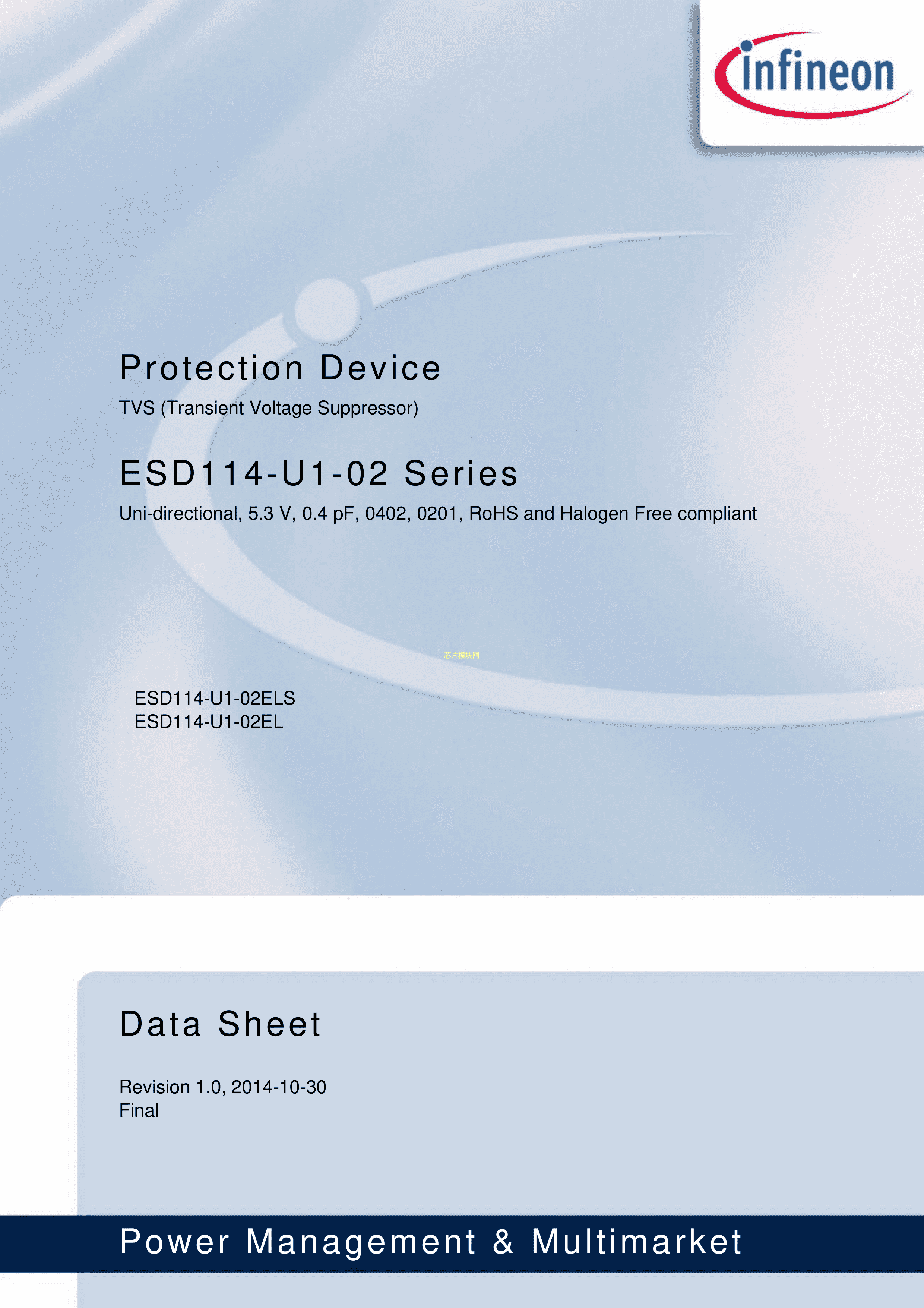 ESD114-U1-02ELSE6327数据手册TSSLP-2-3封装Infineon(英飞凌)PD