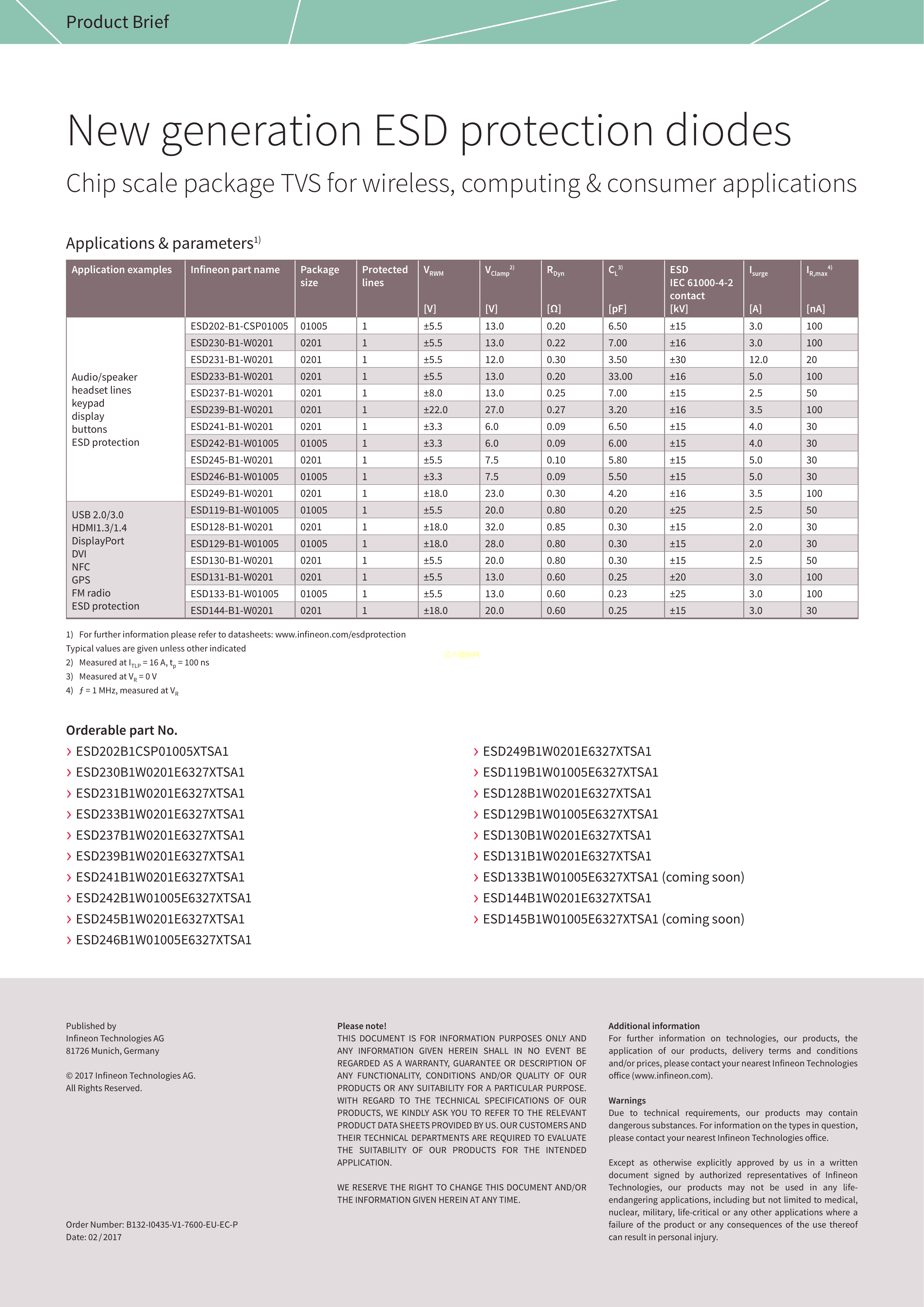 ESD145B1W01005E6327XTSA1数据手册PG-WLL-2-2封装Infineon(英