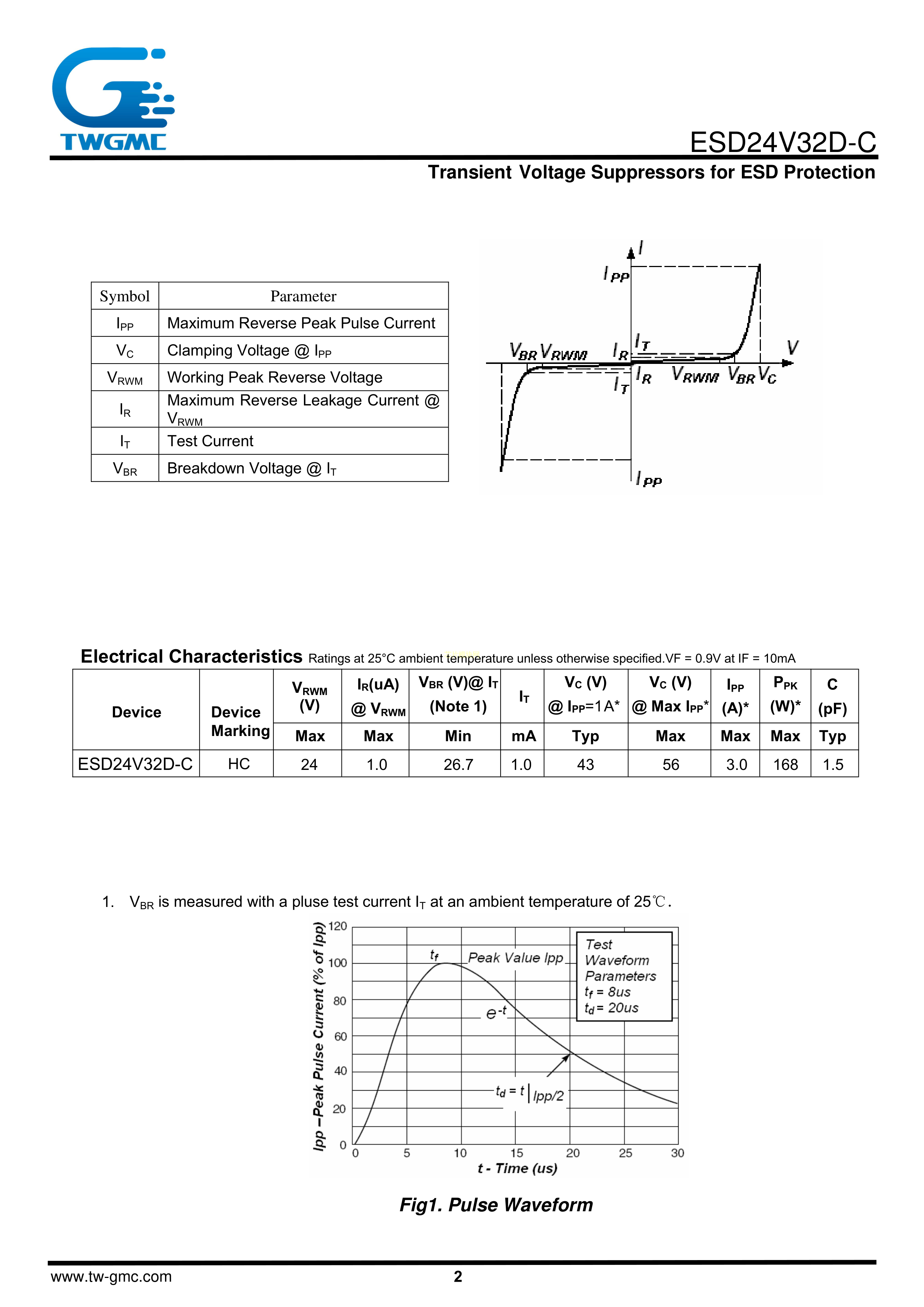 ESD24V32D-C数据手册SOD-323封装TWGMC(台湾迪嘉)PDF规格书,中英文下载