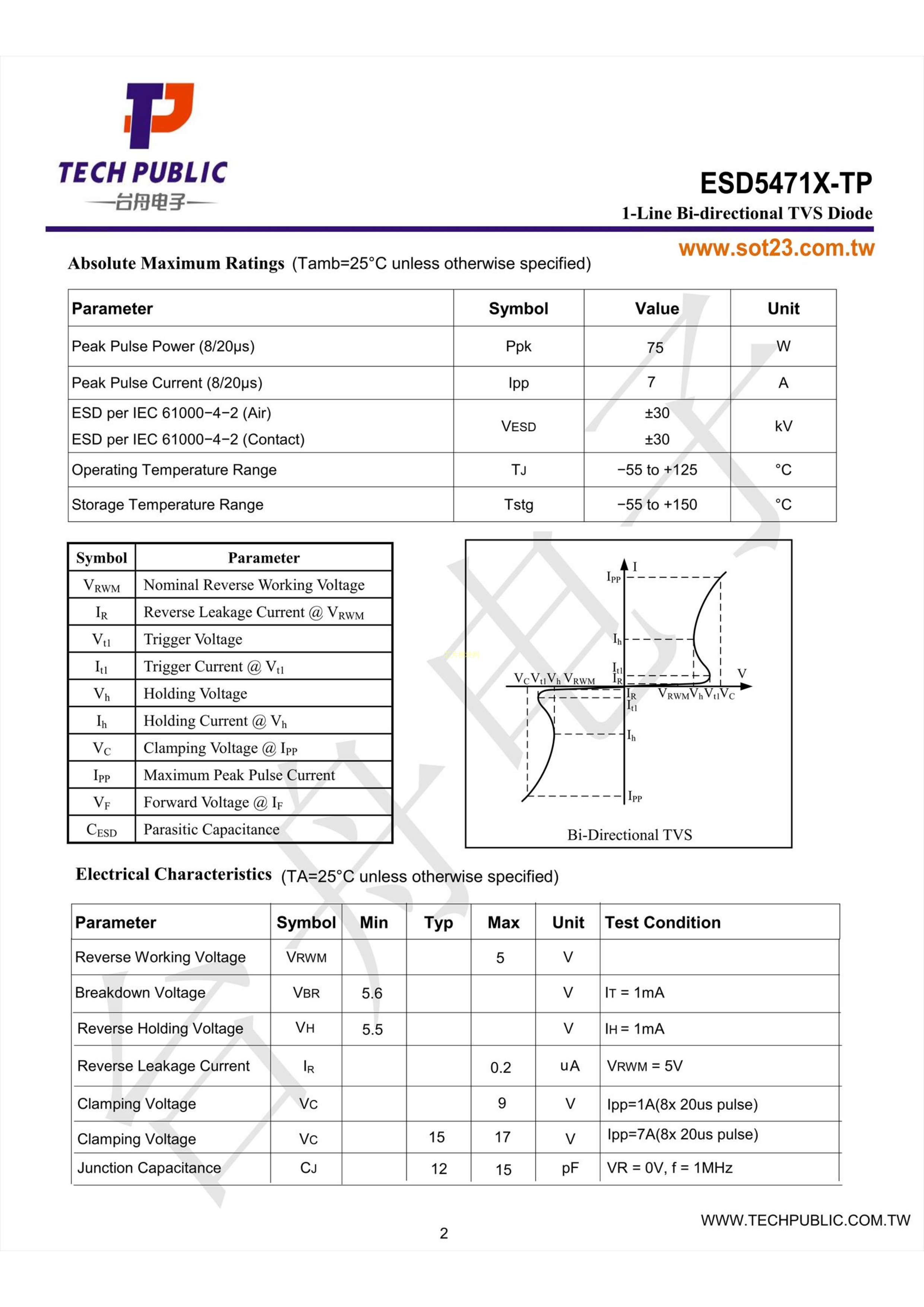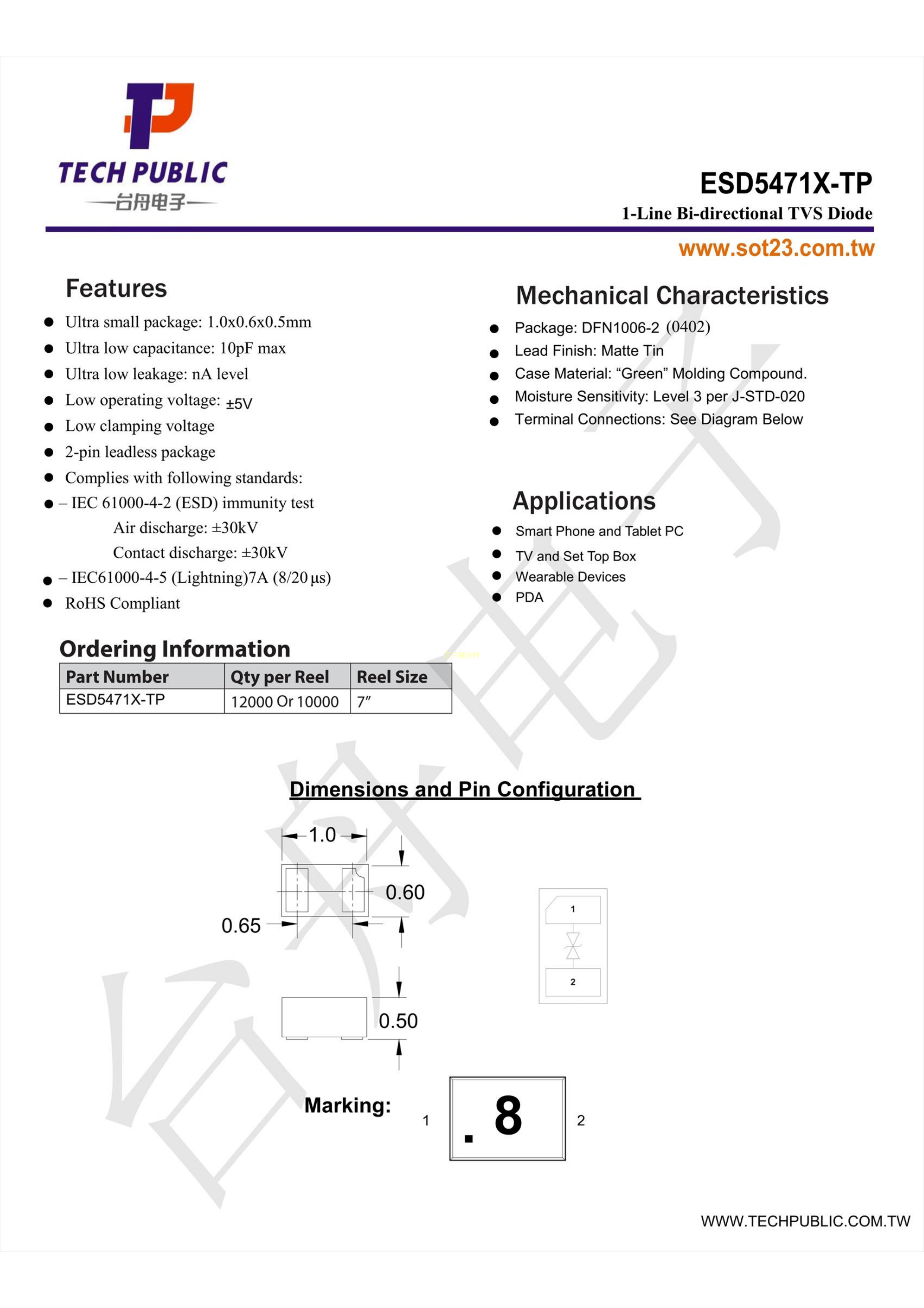 ESD5471X-TP数据手册DFN1006-2封装TECH PUBLIC(台舟)PDF规格书,中英