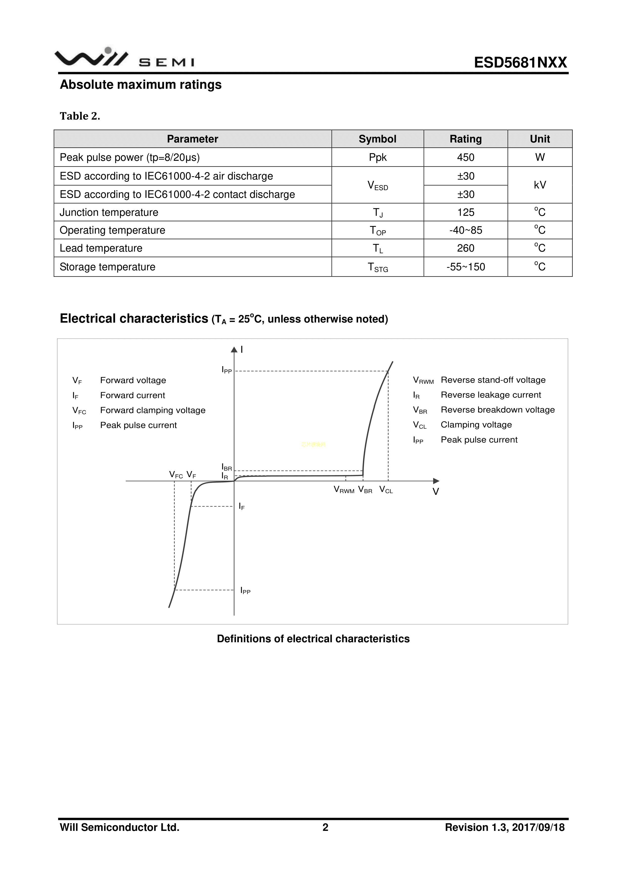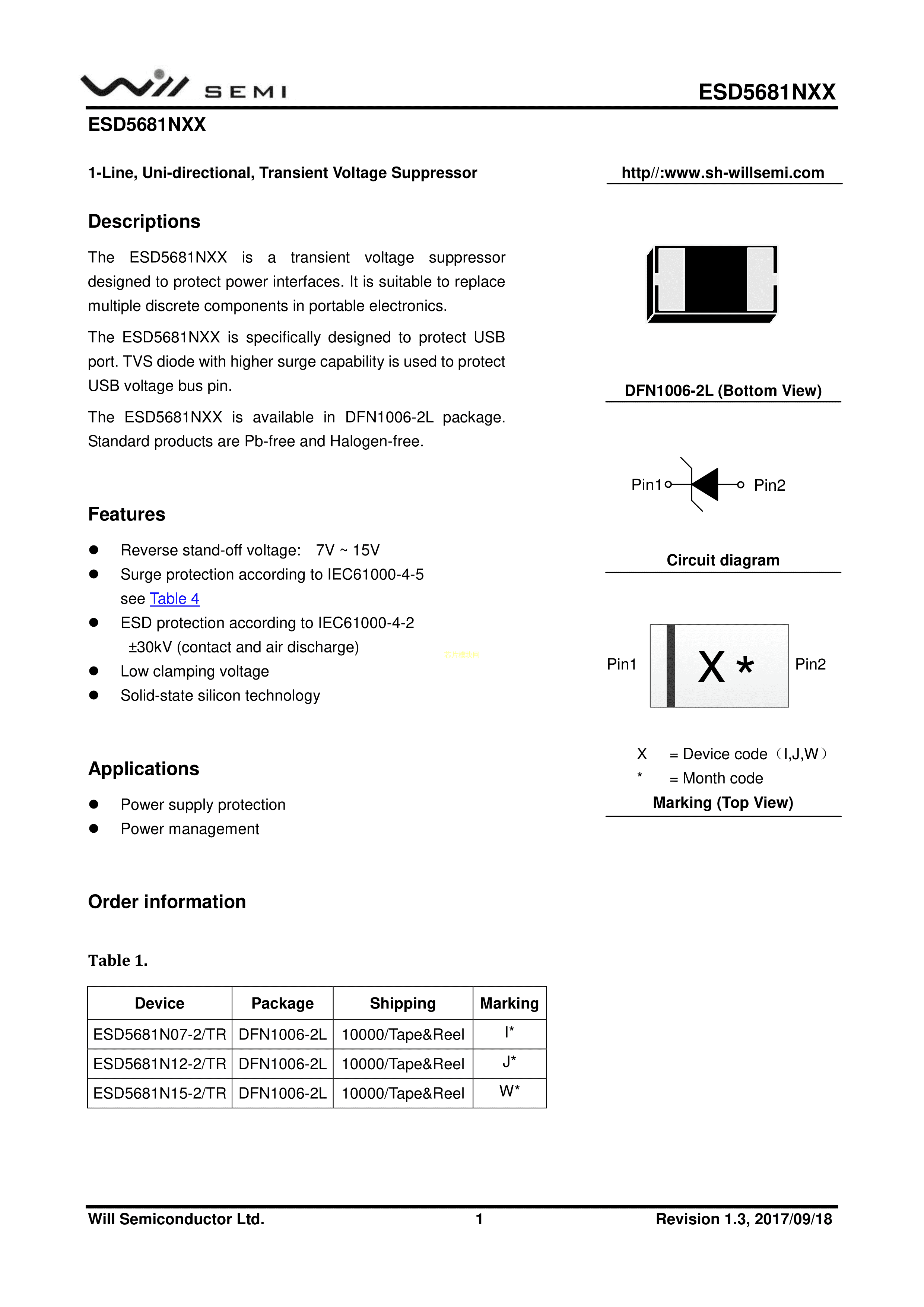 ESD5681N07-2-TR数据手册DFN1006-2L封装WILLSEMI(韦尔)PDF规格书,