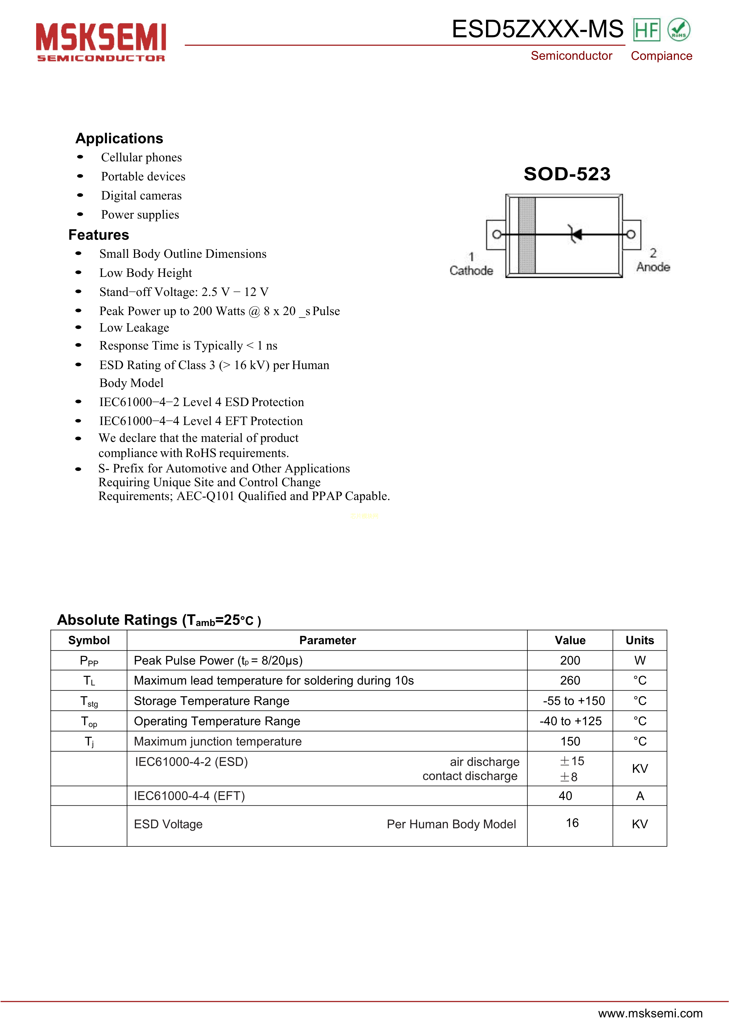 ESD5Z2V5-MS数据手册SOD-523封装MSKSEMI(美森科)PDF规格书,中英文下载