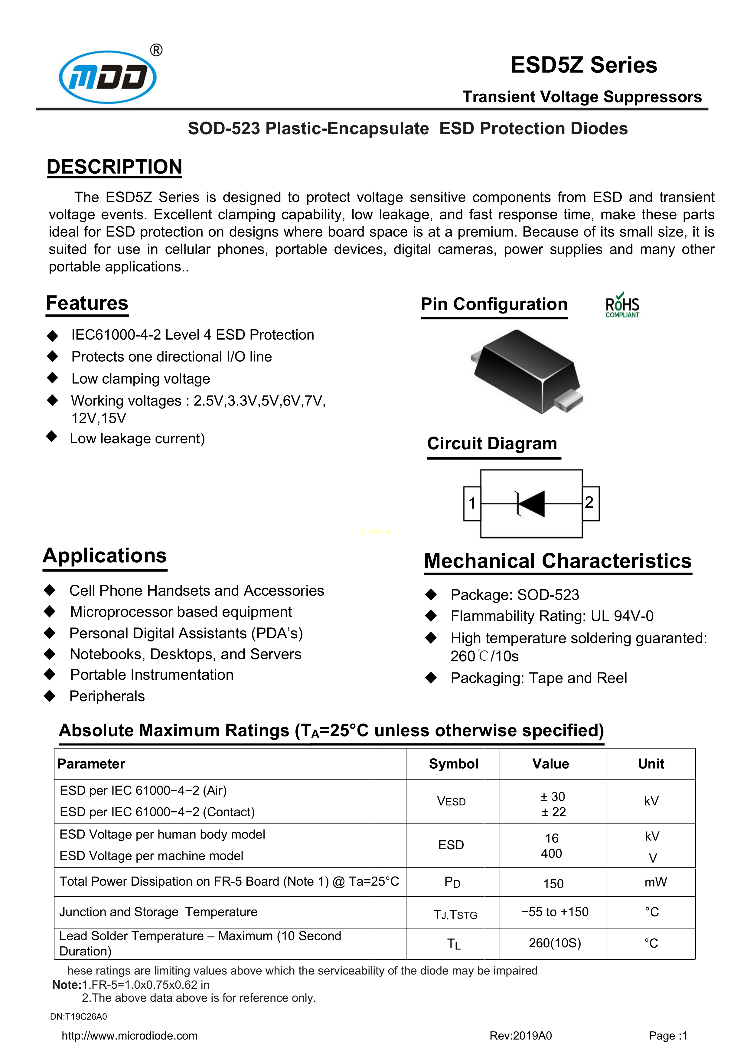 ESD5Z5V0数据手册SOD-523封装MDDPDF规格书,中英文下载