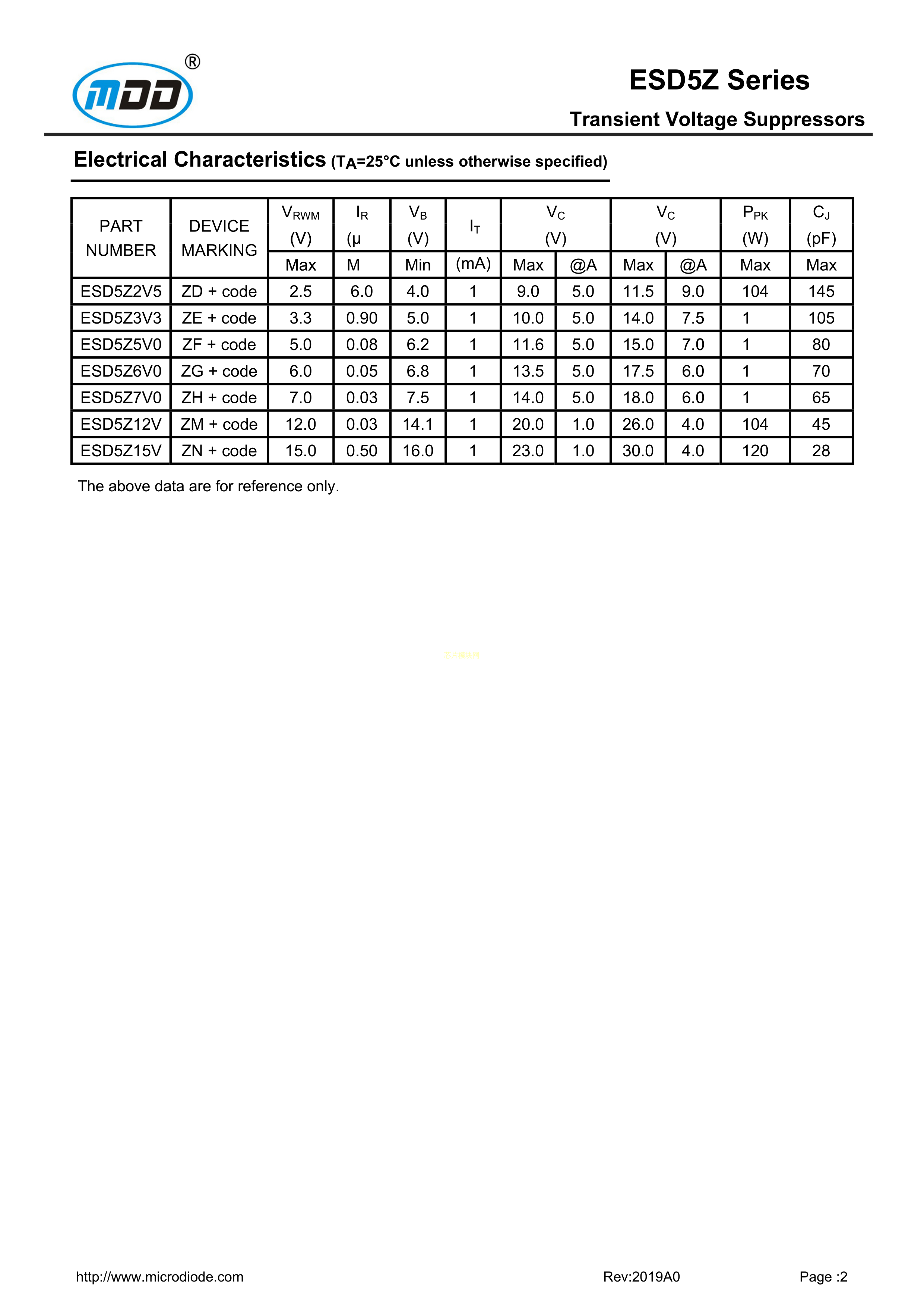 ESD5Z7V0数据手册SOD-523封装MDDPDF规格书,中英文下载