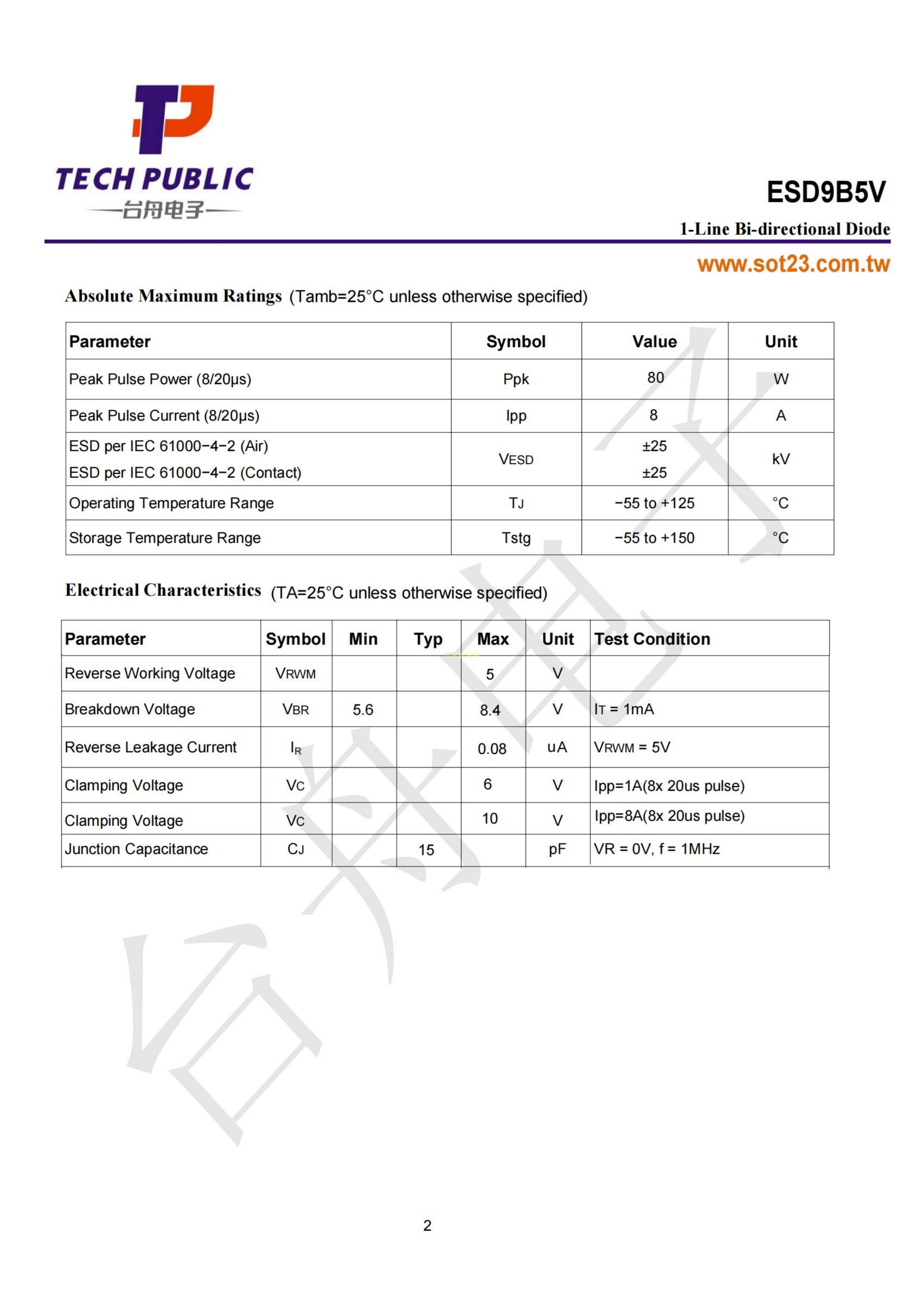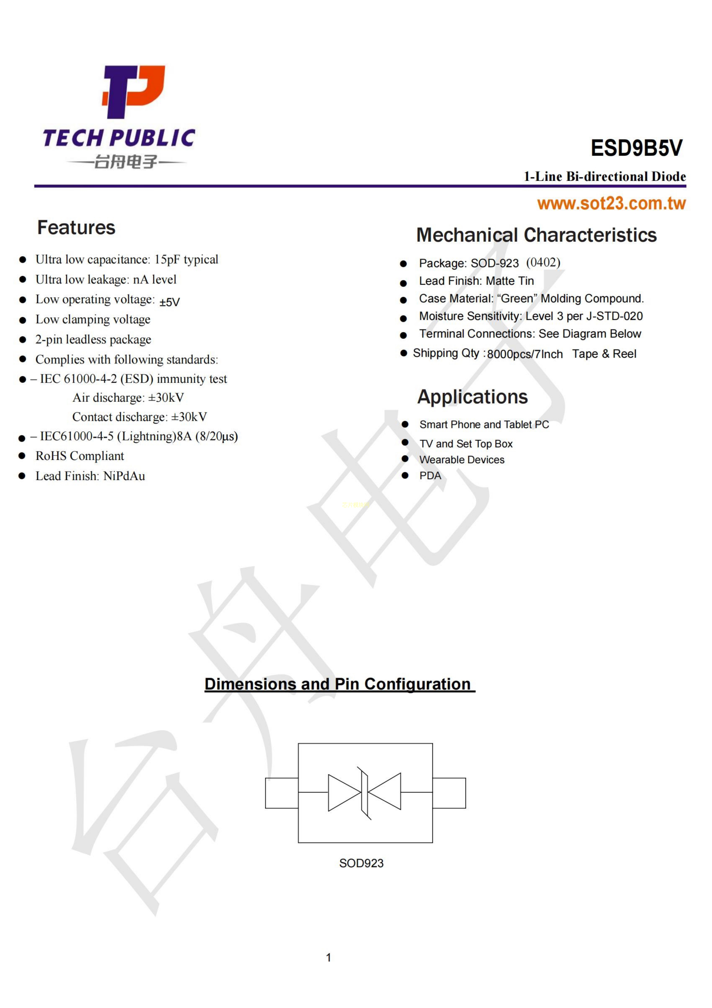 ESD9B5V数据手册SOD-923封装TECH PUBLIC(台舟)PDF规格书,中英文下载