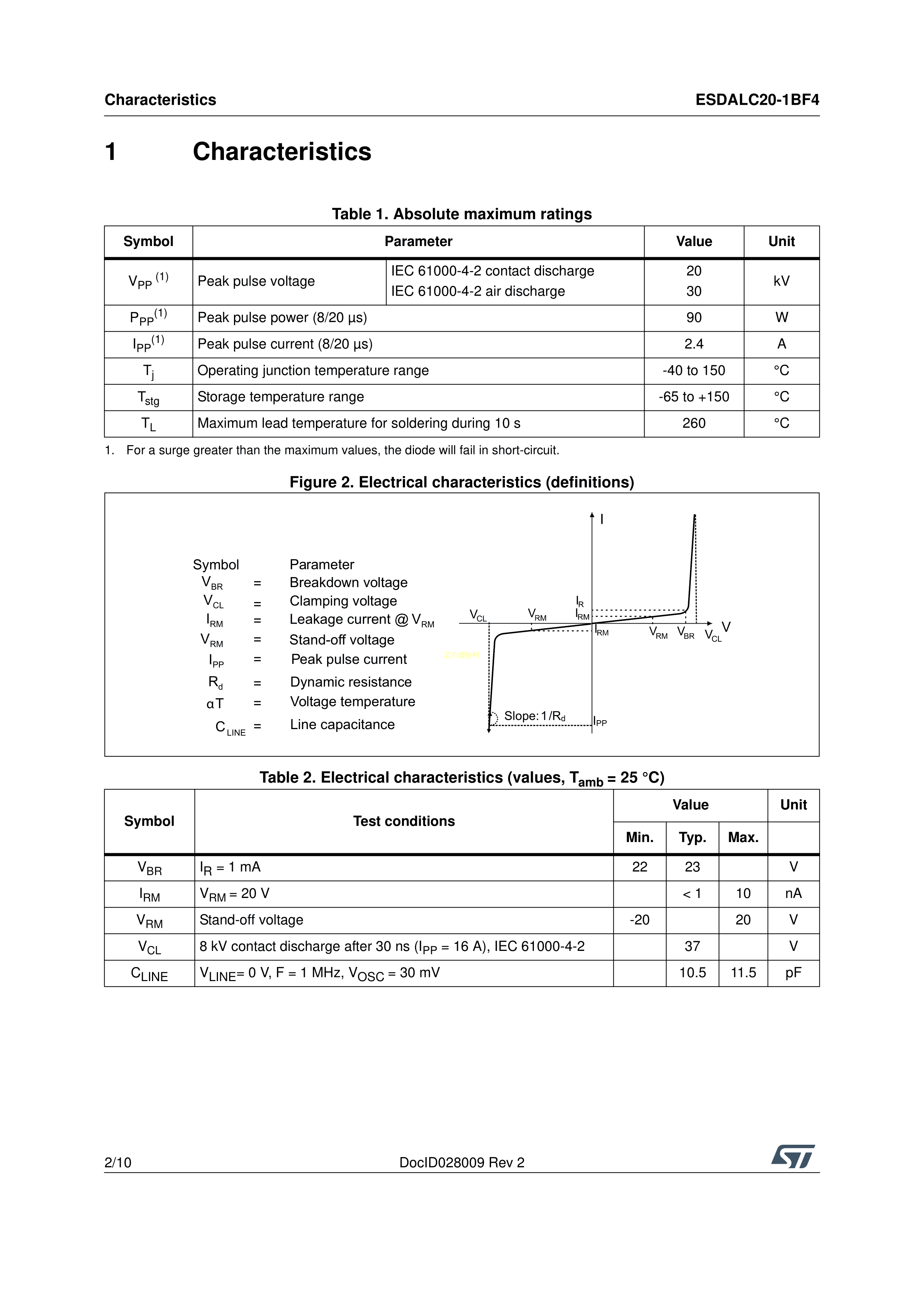 ESDALC20-1BF4数据手册0201封装ST(意法半导体)PDF规格书,中英文下载