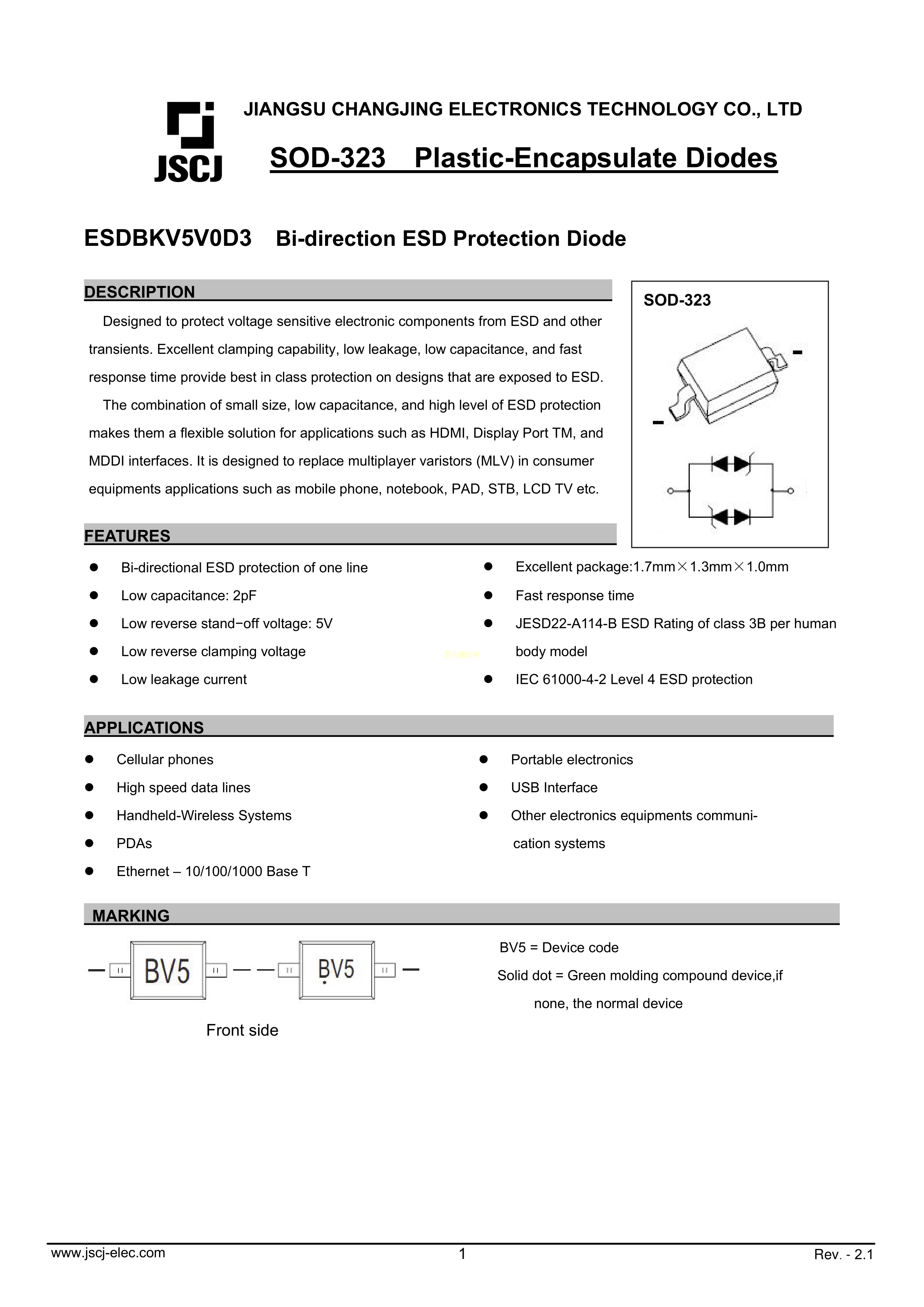 ESDBKV5V0D3数据手册SOD-323封装CJ(江苏长电-长晶)PDF规格书,中英文下载