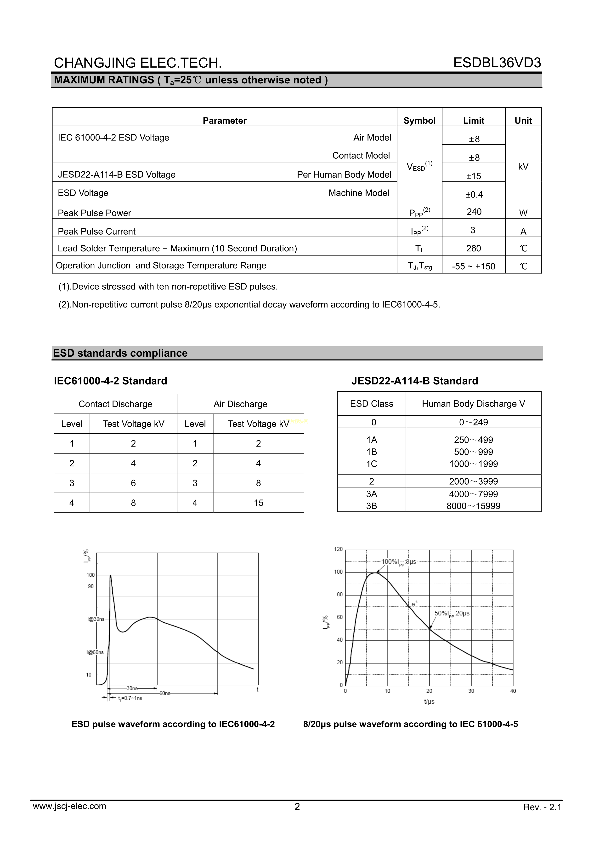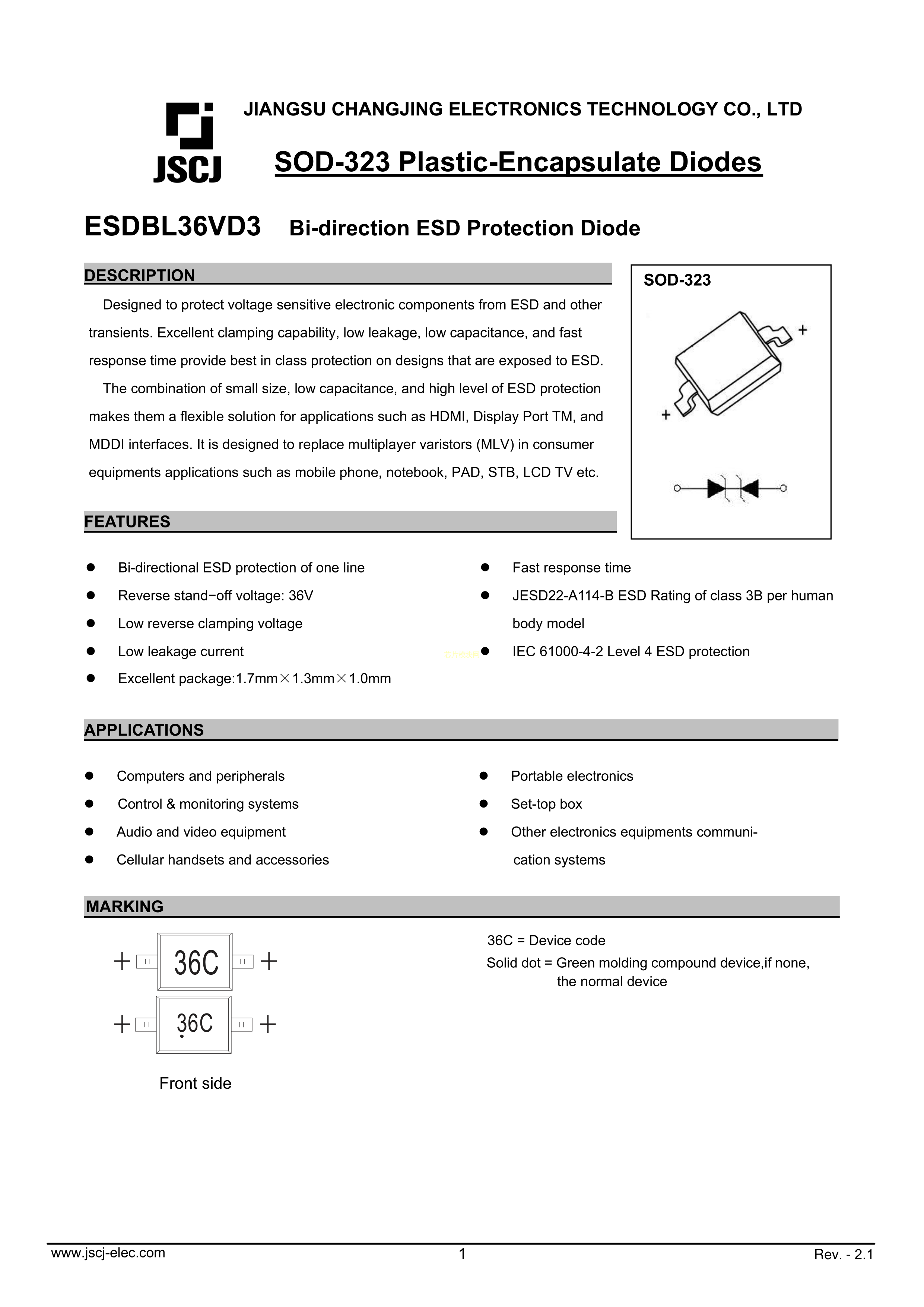 ESDBL36VD3数据手册SOD-323封装CJ(江苏长电-长晶)PDF规格书,中英文下载