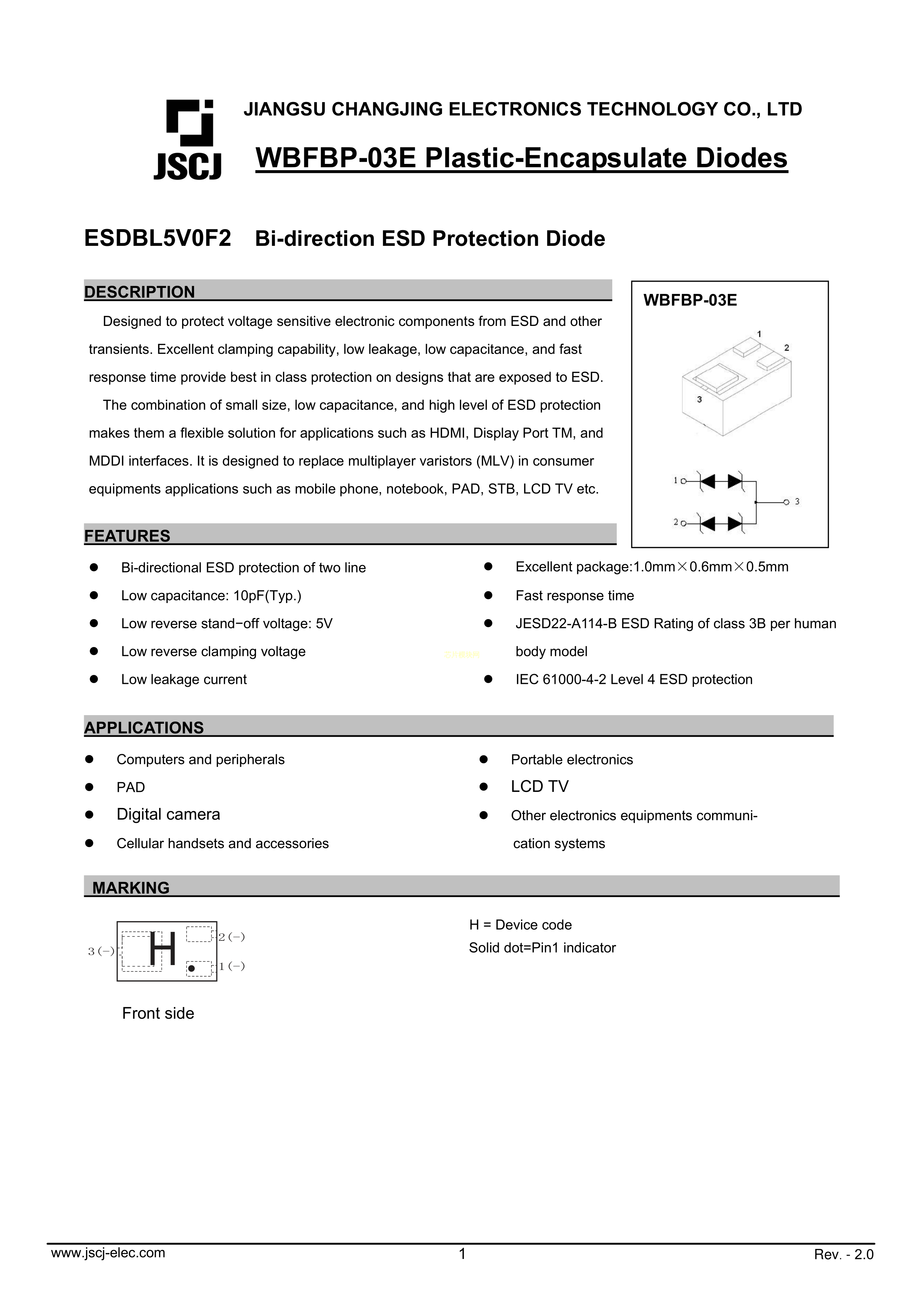 ESDBL5V0F2数据手册WBFBP-03E封装CJ(江苏长电-长晶)PDF规格书,中英文下载