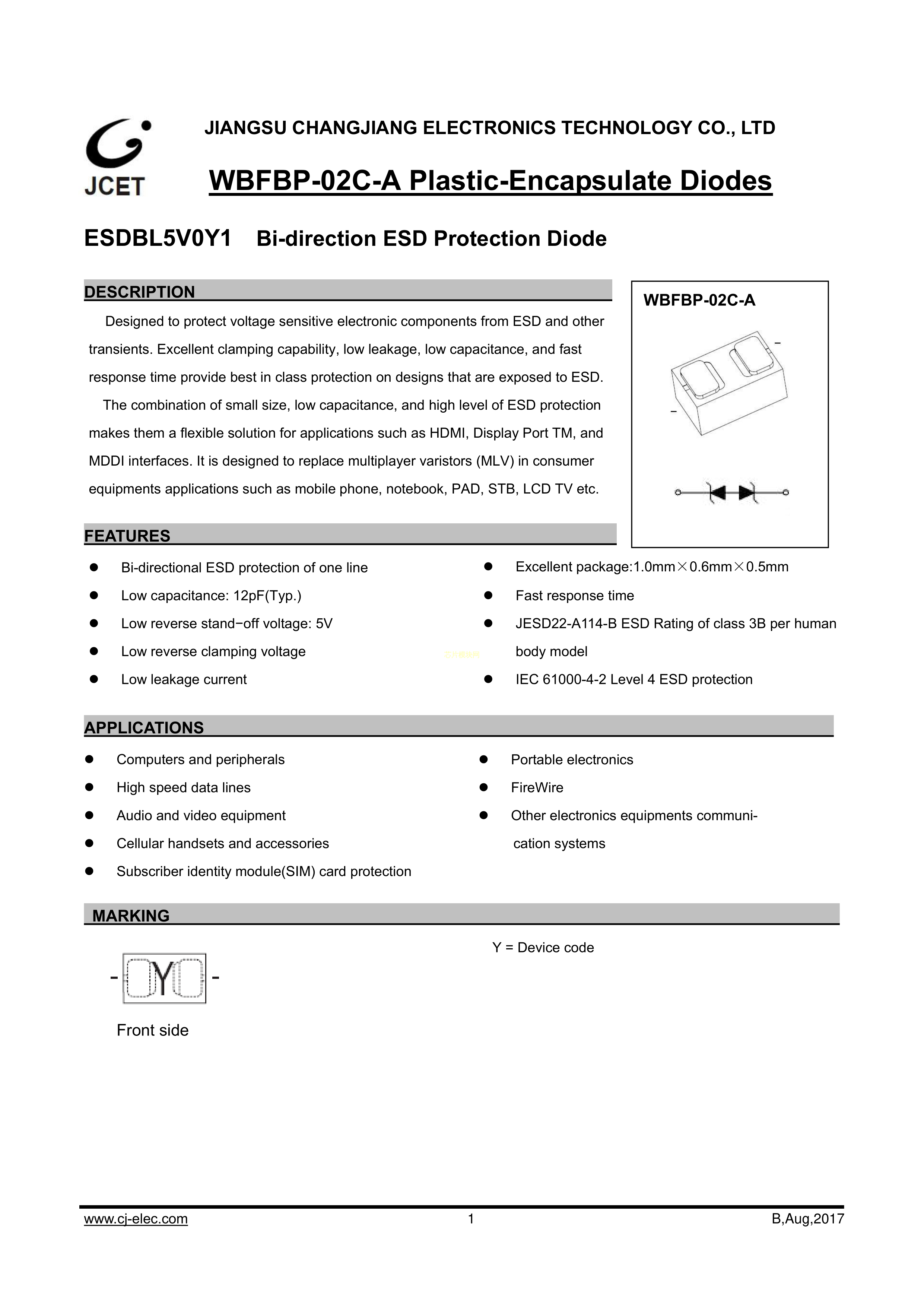 ESDBL5V0Y1数据手册WBFBP-02C-A封装CJ(江苏长电-长晶)PDF规格书,中英文下载