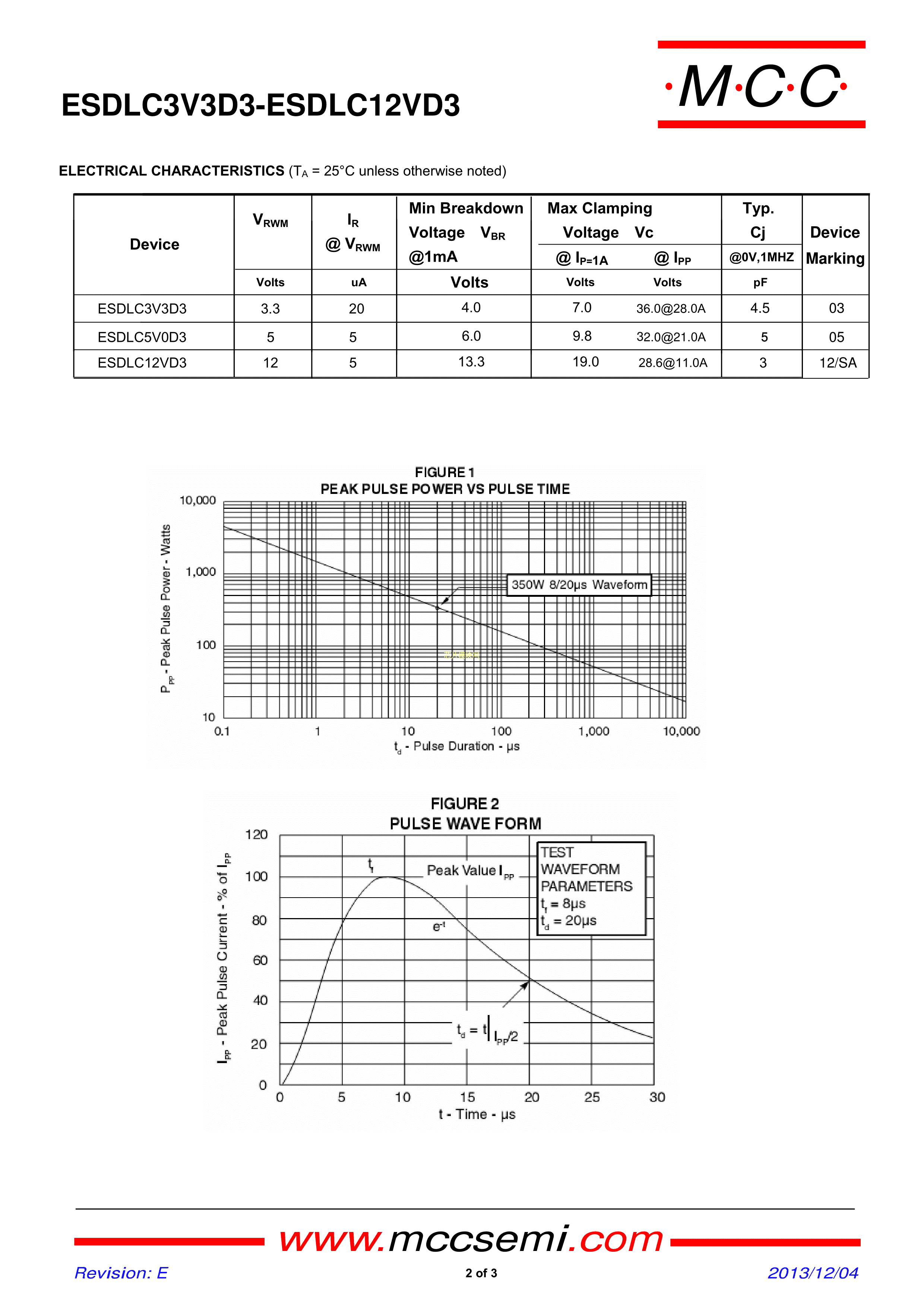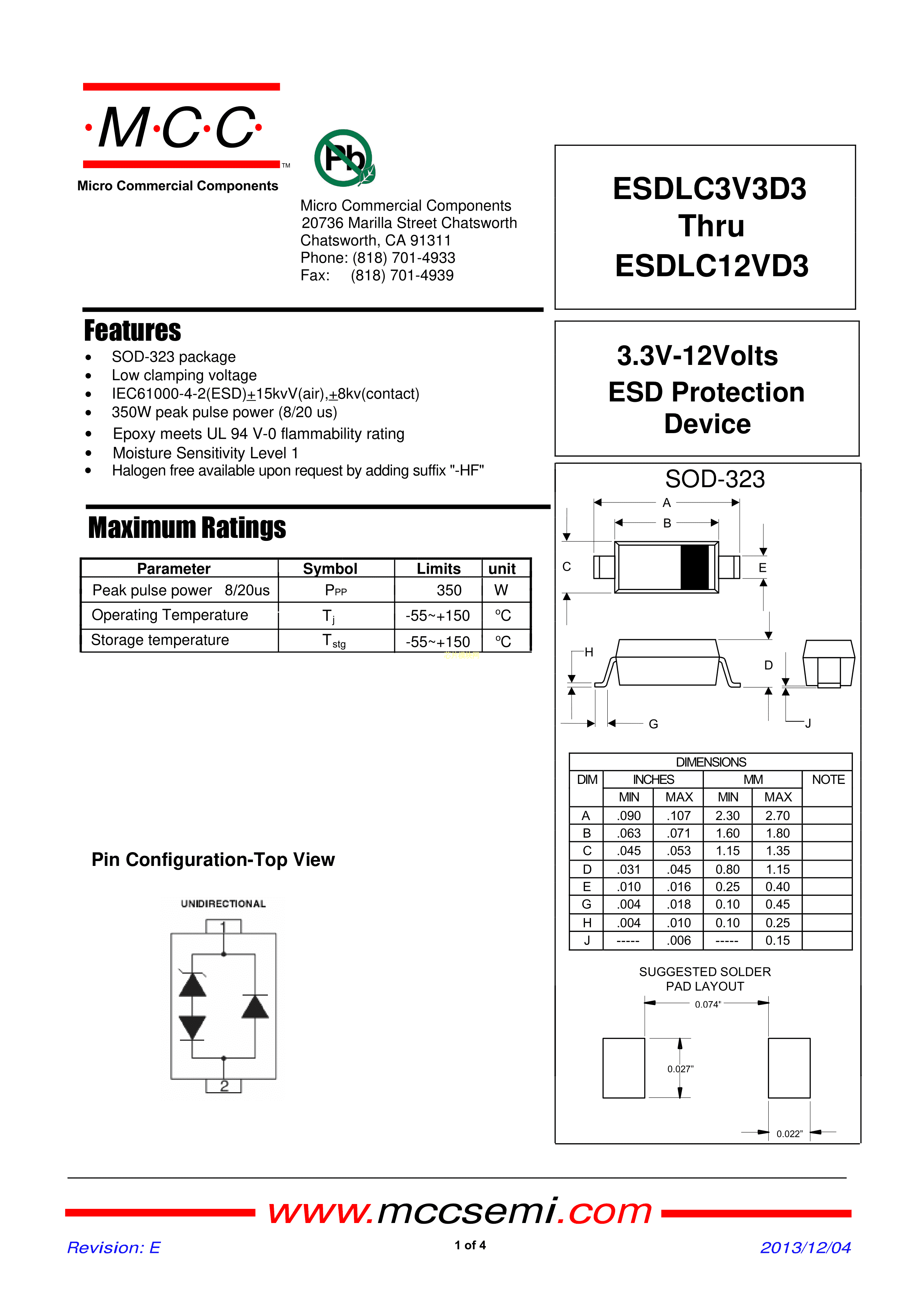 ESDLC12VD3-TP数据手册SOD-323封装MCC(美微科)PDF规格书,中英文下载