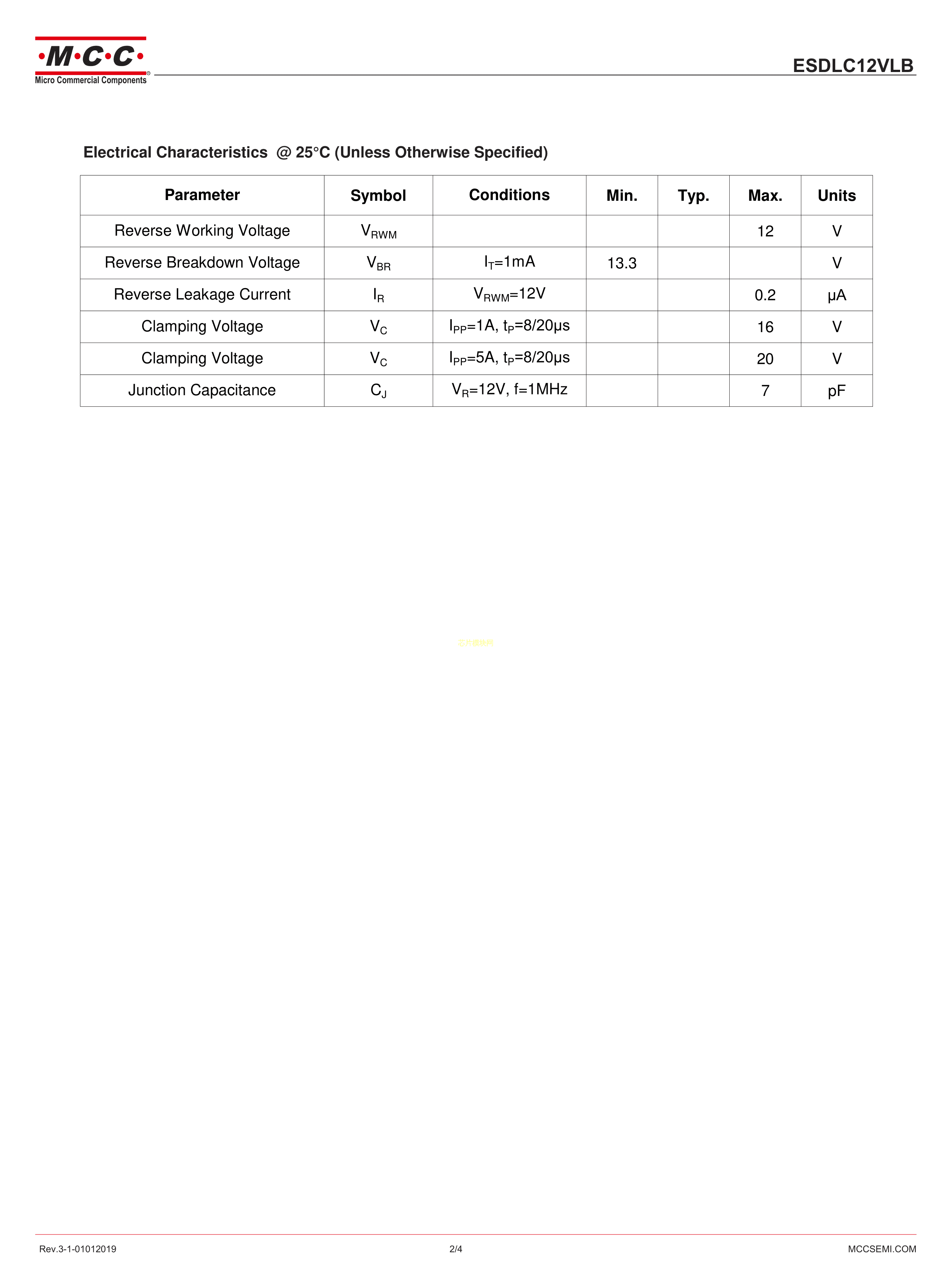 ESDLC12VLB-TP数据手册DFN1006封装MCC(美微科)PDF规格书,中英文下载