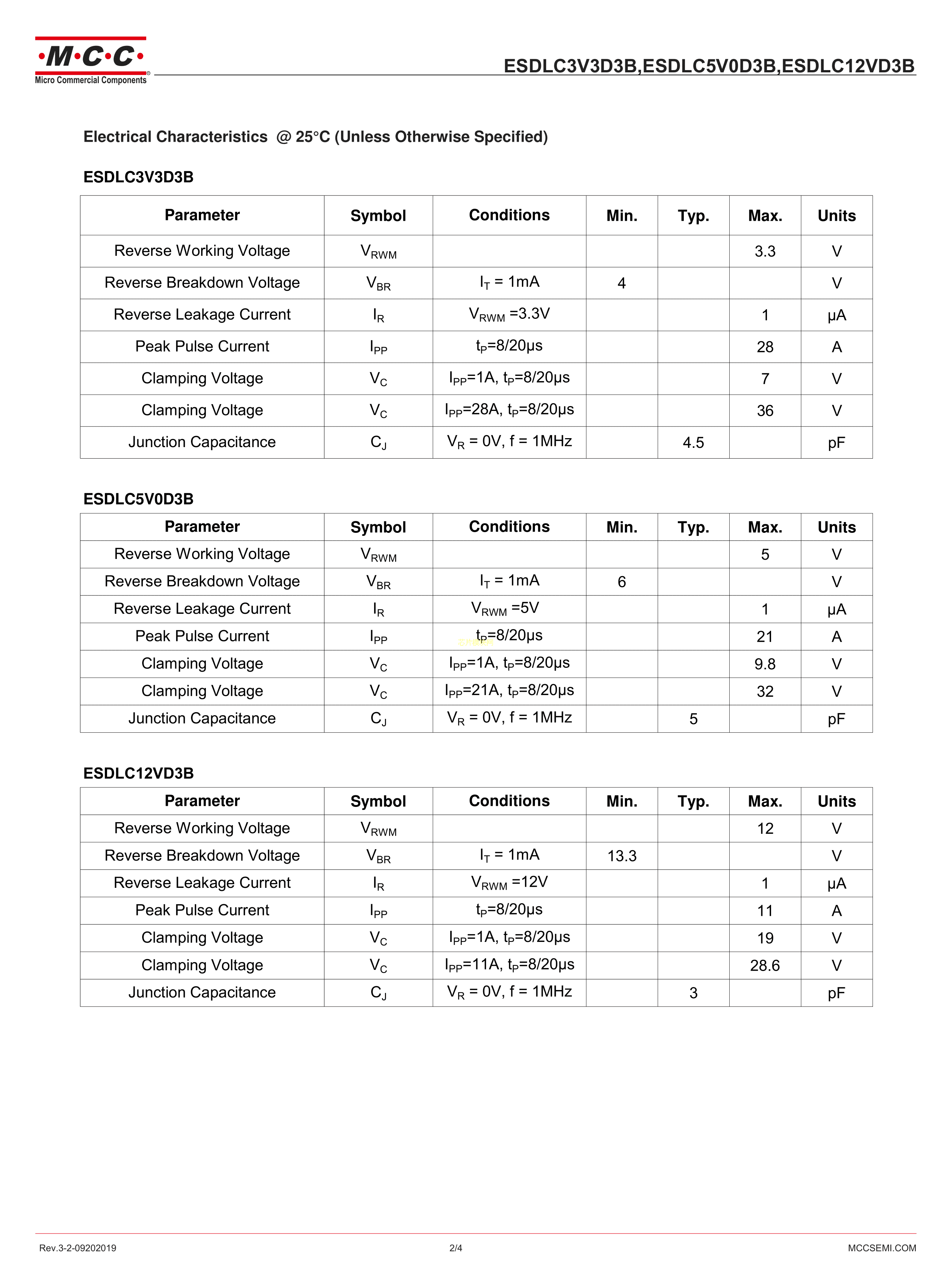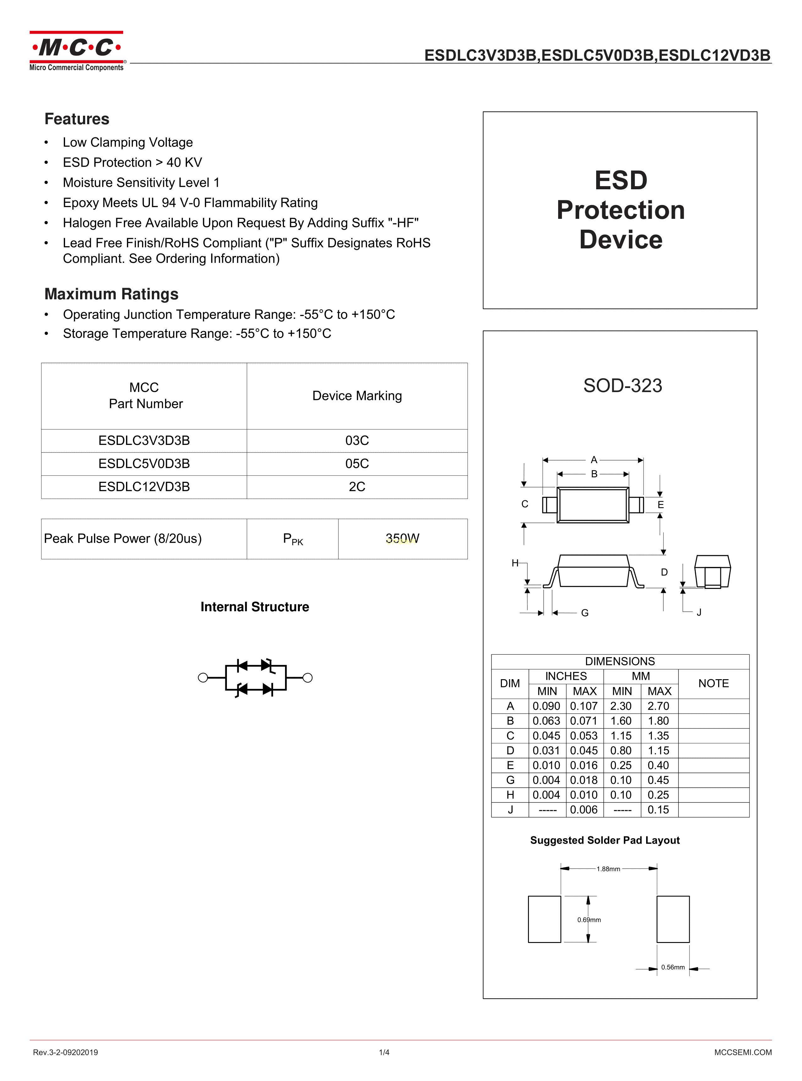 ESDLC5V0D3B-TP数据手册SOD-323封装MCC(美微科)PDF规格书,中英文下载
