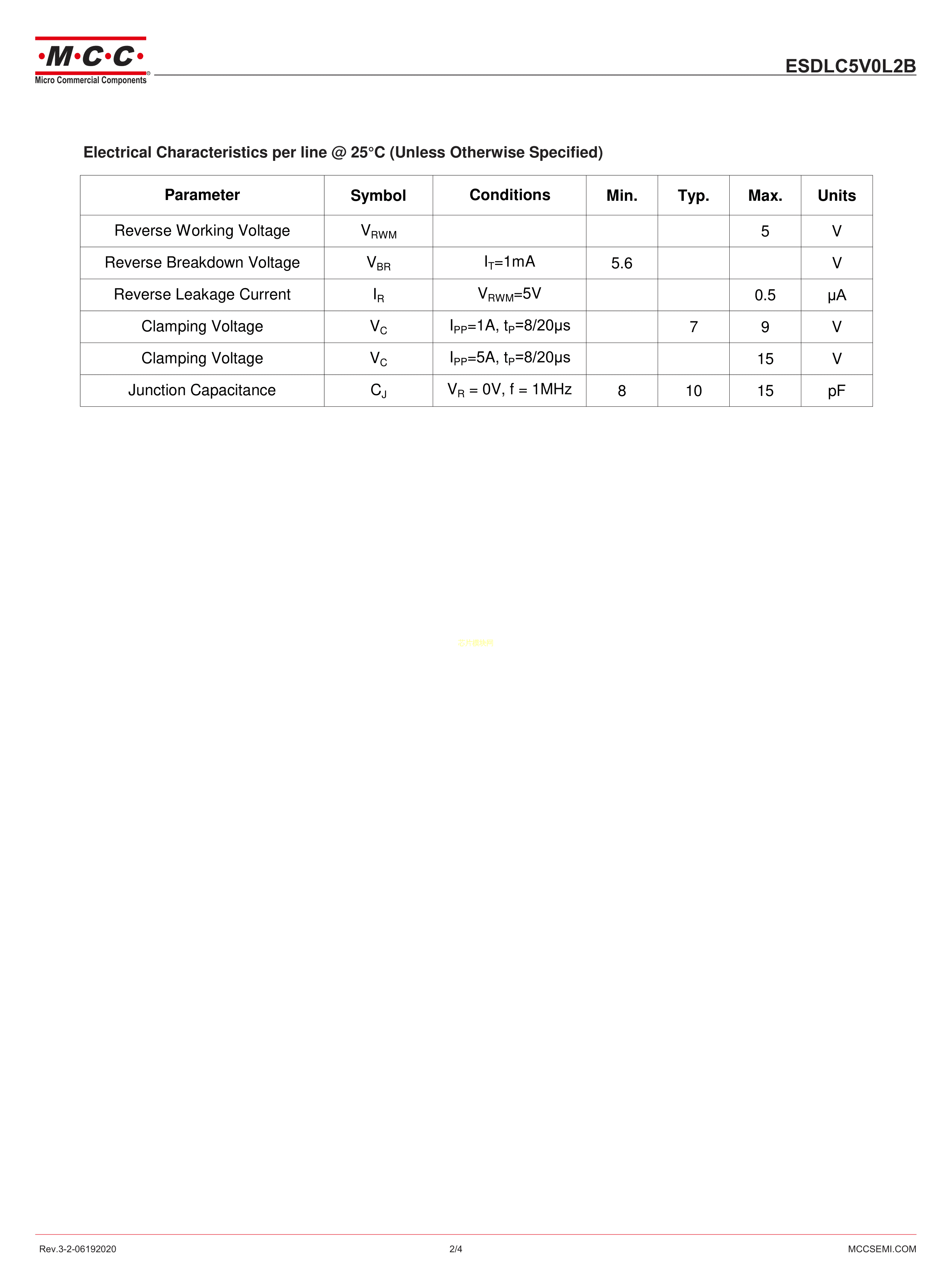 ESDLC5V0L2B-TP数据手册DFN1006封装MCC(美微科)PDF规格书,中英文下载