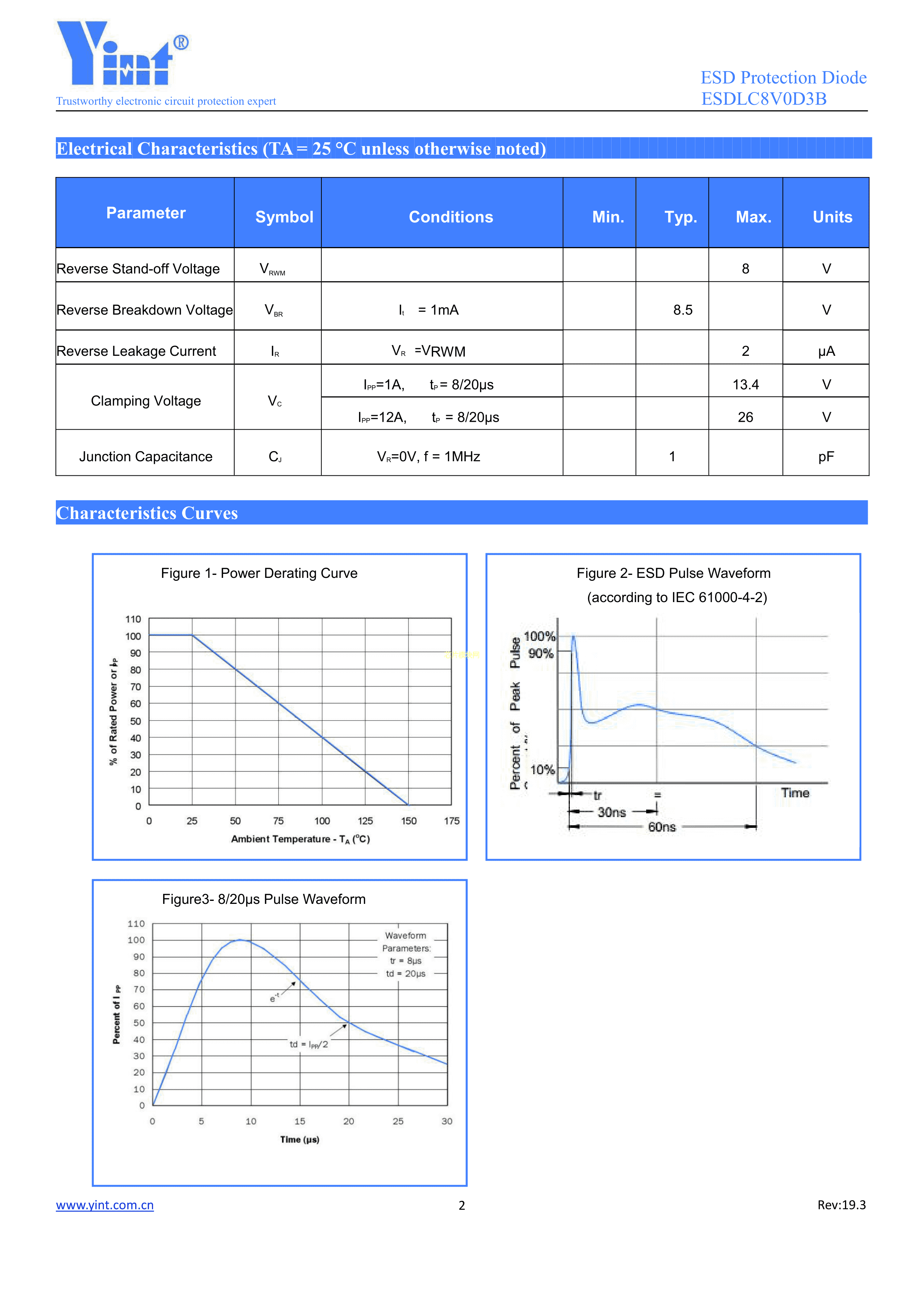 ESDLC8V0D3B数据手册SOD-323封装Yint(音特电子)PDF规格书,中英文下载