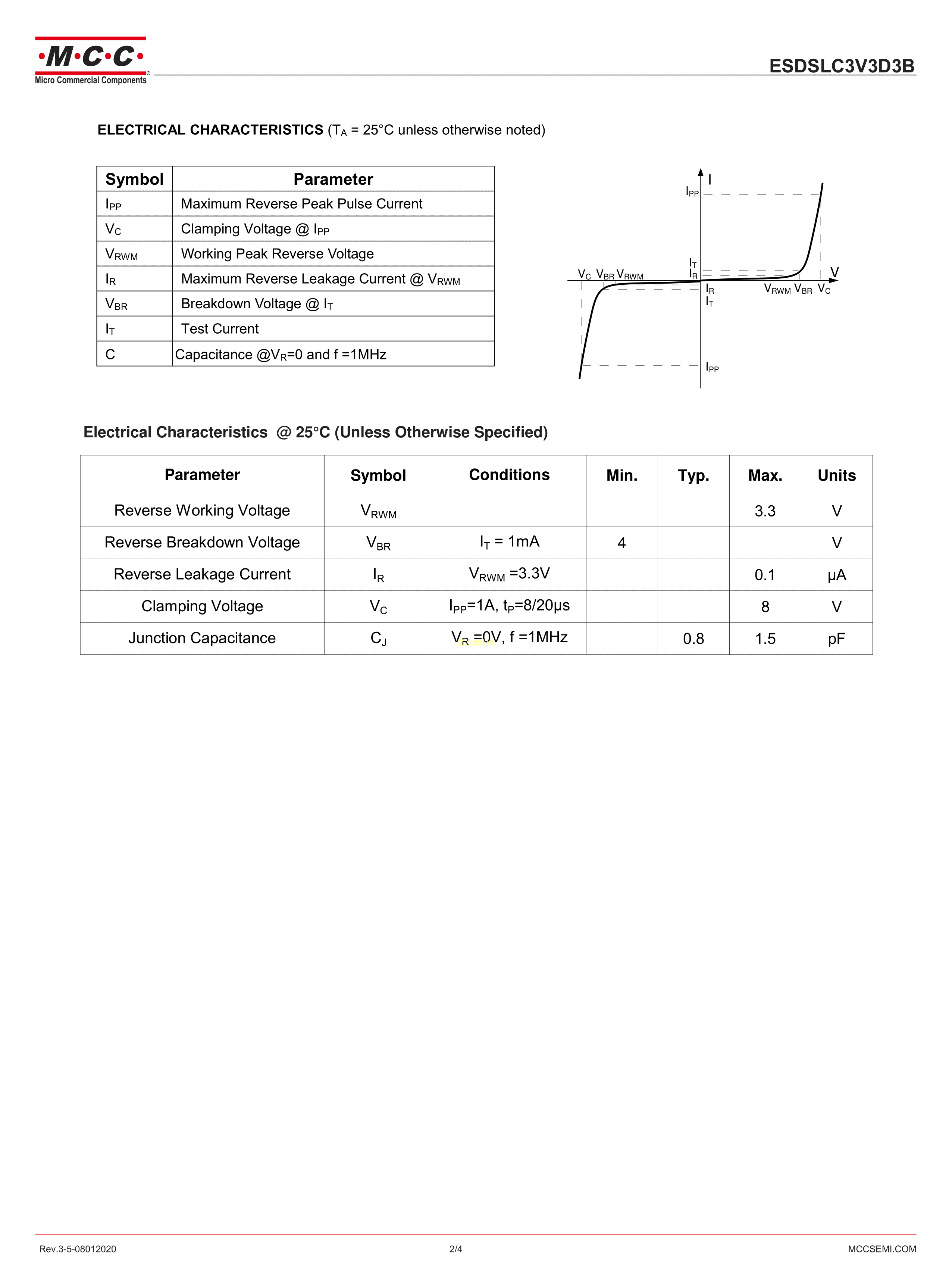 ESDSLC3V3D3B-TP数据手册SOD-323封装MCC(美微科)PDF规格书,中英文下载