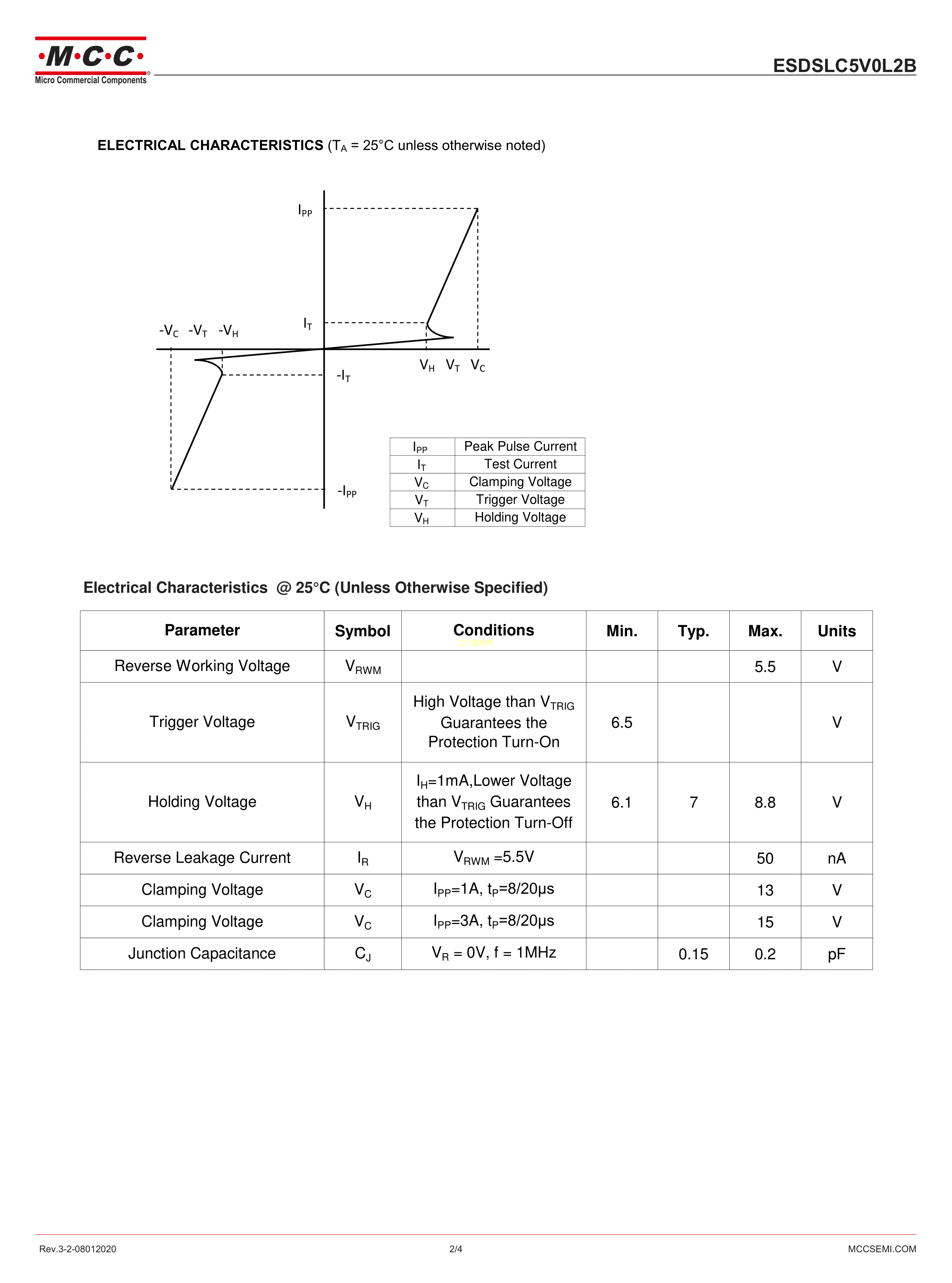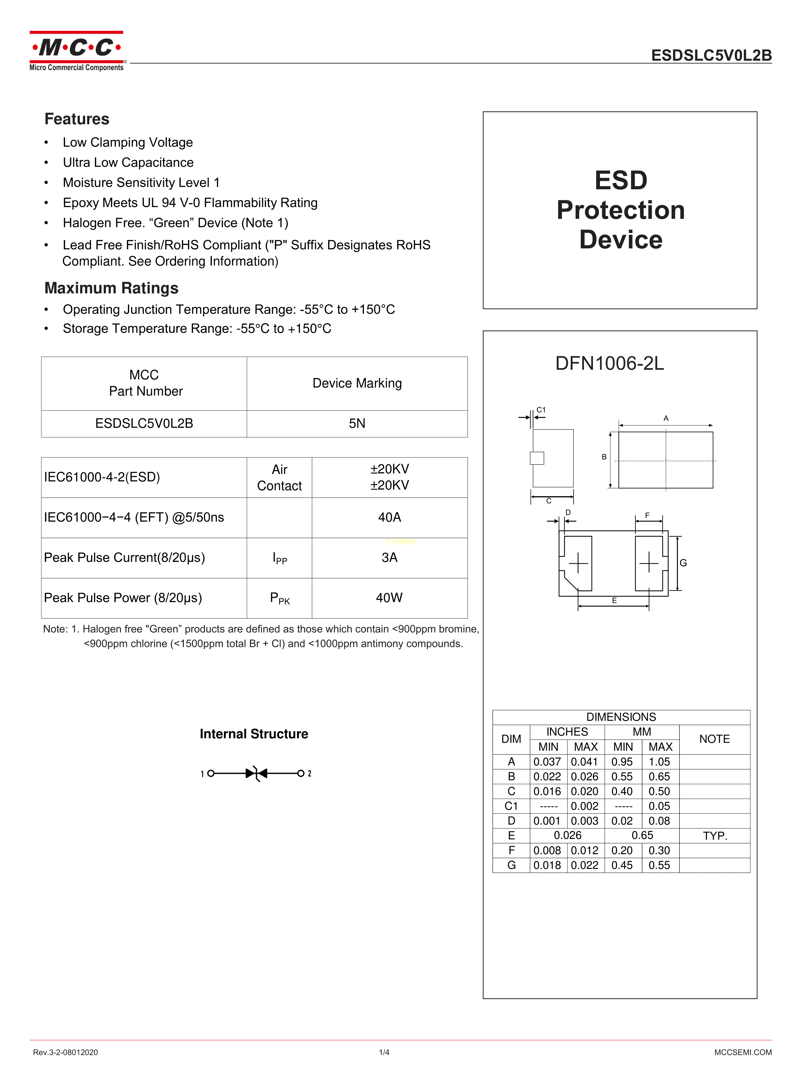 ESDSLC5V0L2B-TP数据手册DFN1006封装MCC(美微科)PDF规格书,中英文下载